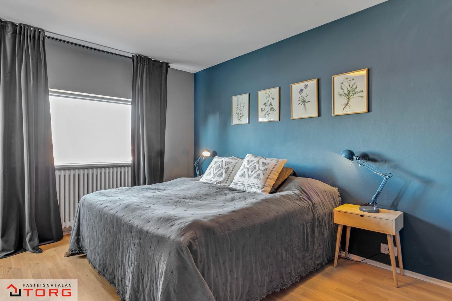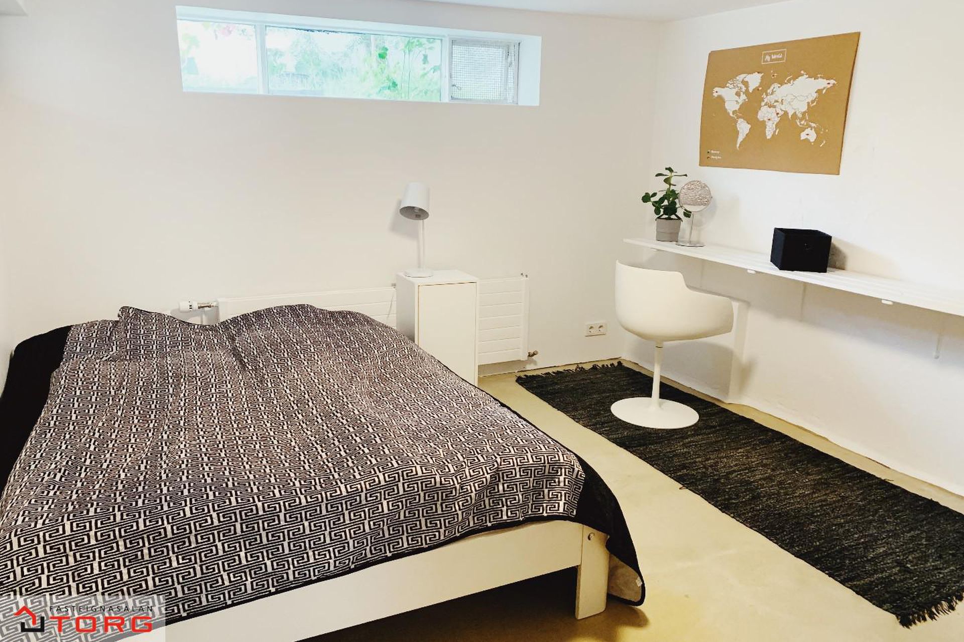 Svefnherbergi - Mjög stórt og rúmgott herbergi með máluðu gólfi.