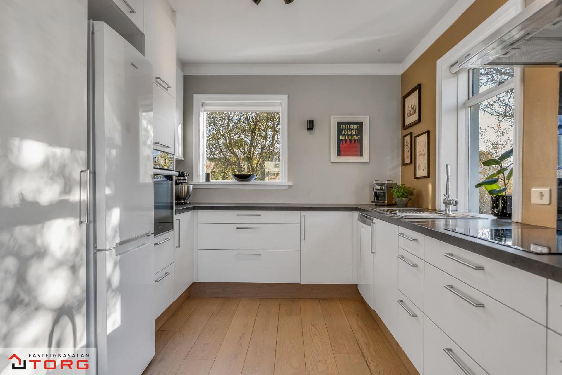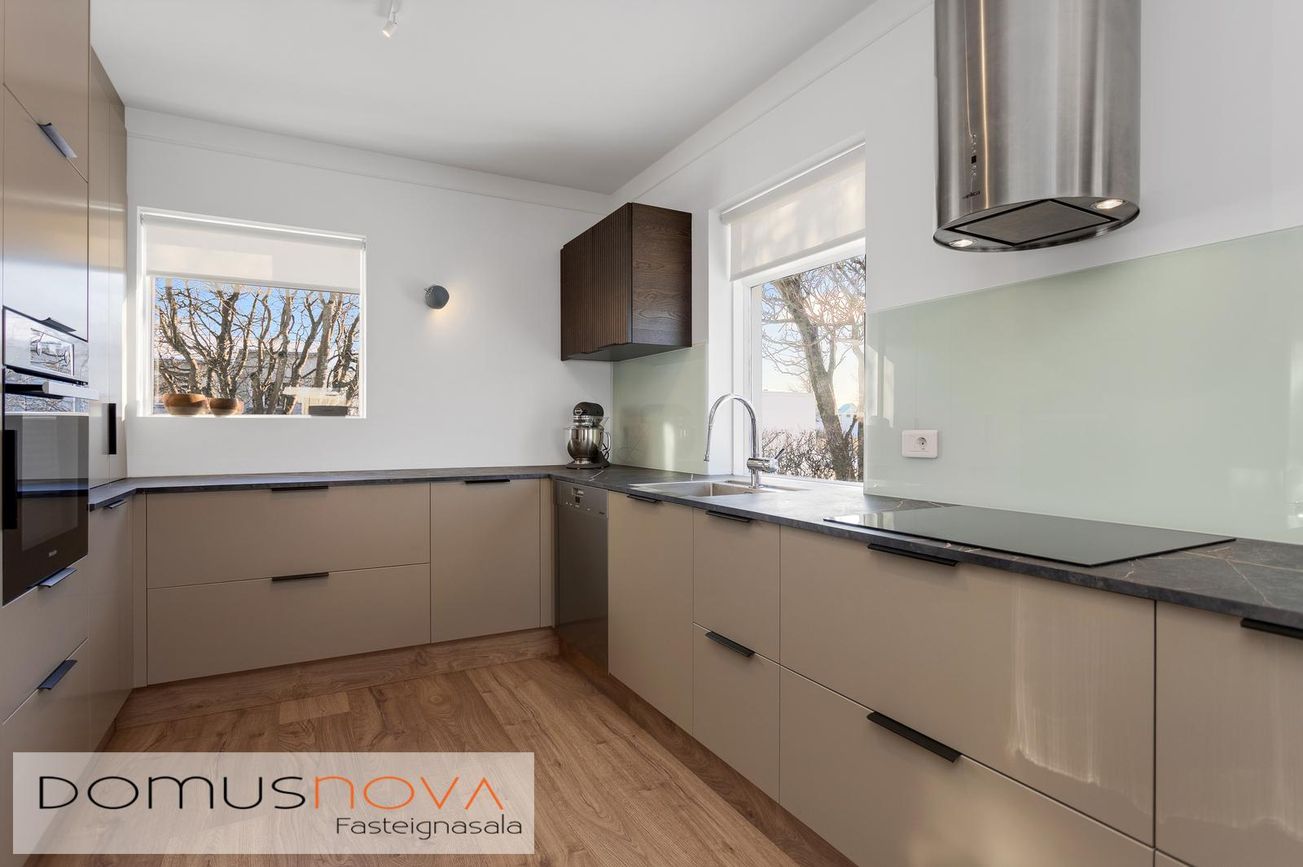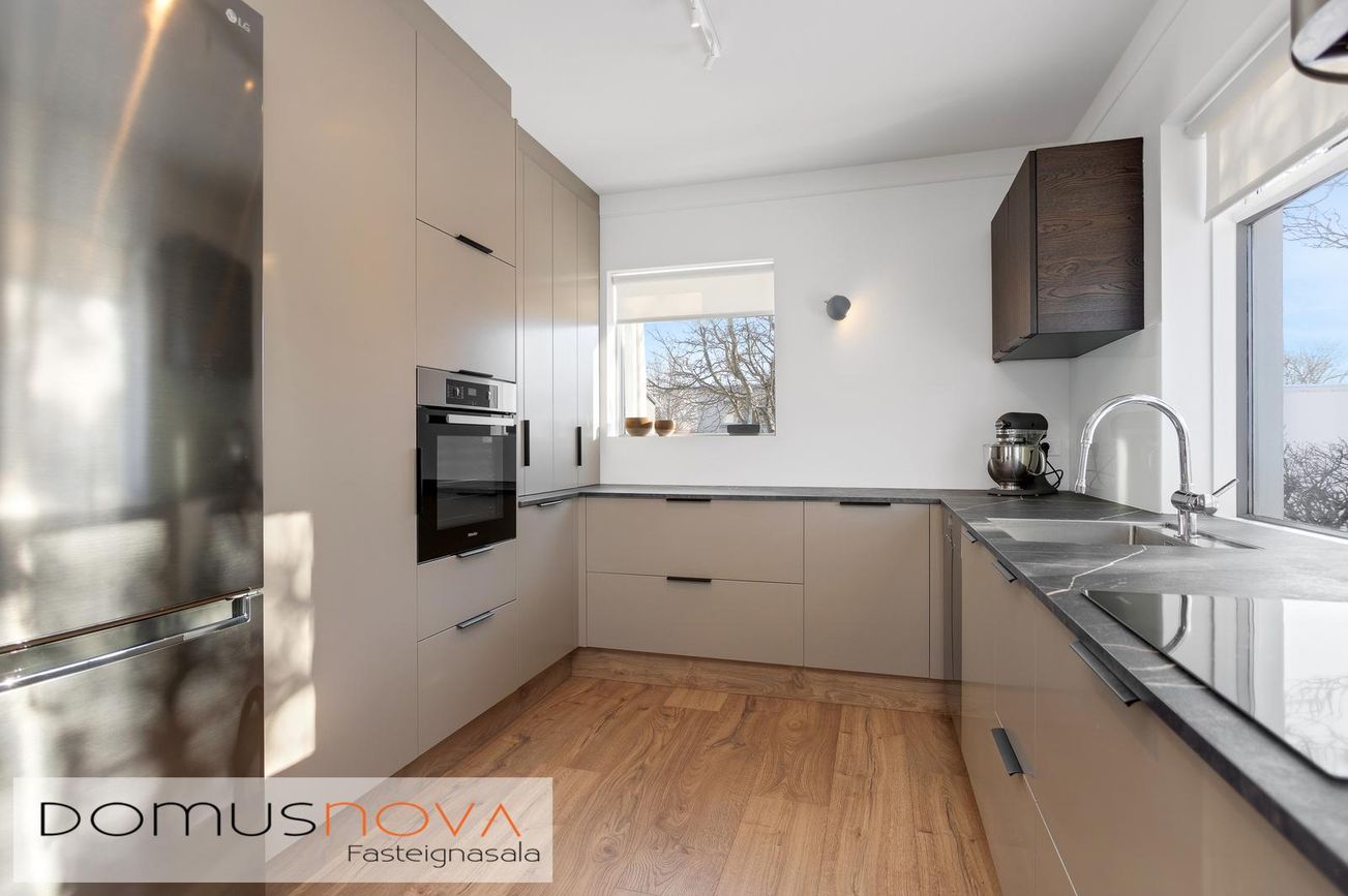 - Nóvember 2023, Eldhúsinnréttingu breytt og skipt um framhliðar og borðplötu og skipt um ofn, helluborð og háf.