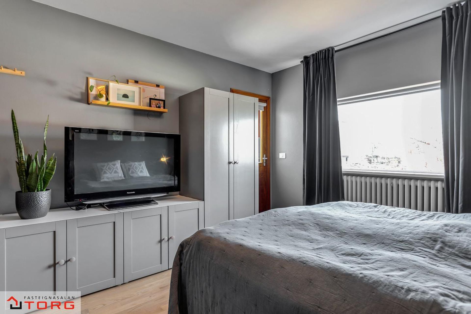 Sjónvarpsherbergi - Rúmgott 14,5 m² Sem áður var hjónaherbergi með harðparketi á gólfi. Hurð er út á suðvestursvalir.