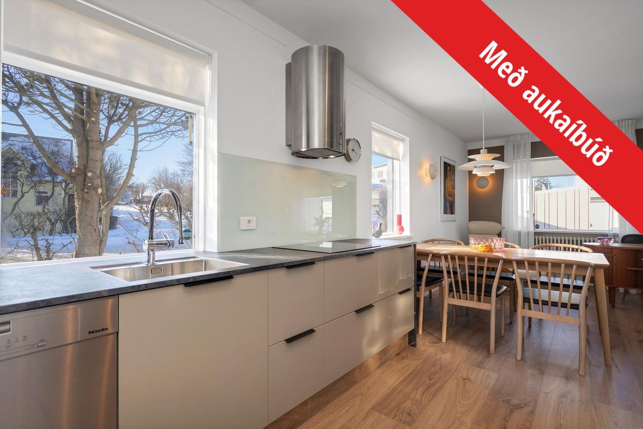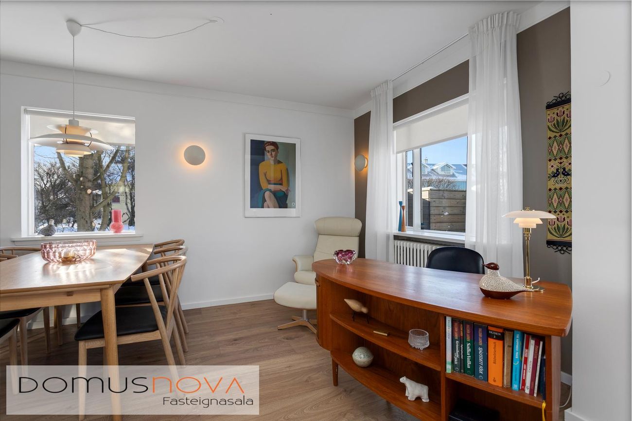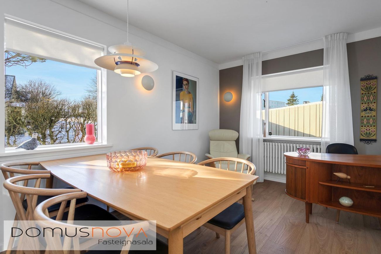 Fasteignamat 2026 er 119.000.000.- kr. Byggingarár er 1958. Bílskúr er byggður 1964.Góðar leigutekjur af aukaíbúð - Núverandi leigjendur vilja leigja áfram ef áhugi er fyrir því hjá kaupendum.--- Seljendur geta afhent eignina fljótlega að loknum kaupsamningi ---Húsið er steypt á þremur hæðum ásamt steyptum sérstæðum bílskúr sem tengist húsinu. Eignin er skráð einbýlishús. Aaleignin er á tveimur hæðum og aukaíbúð með sérinngangi í kjallara. Hjá aðalinnganginum eru 2-3 bílastæði og einnig er stæði fyrir framan bílskúrinn.