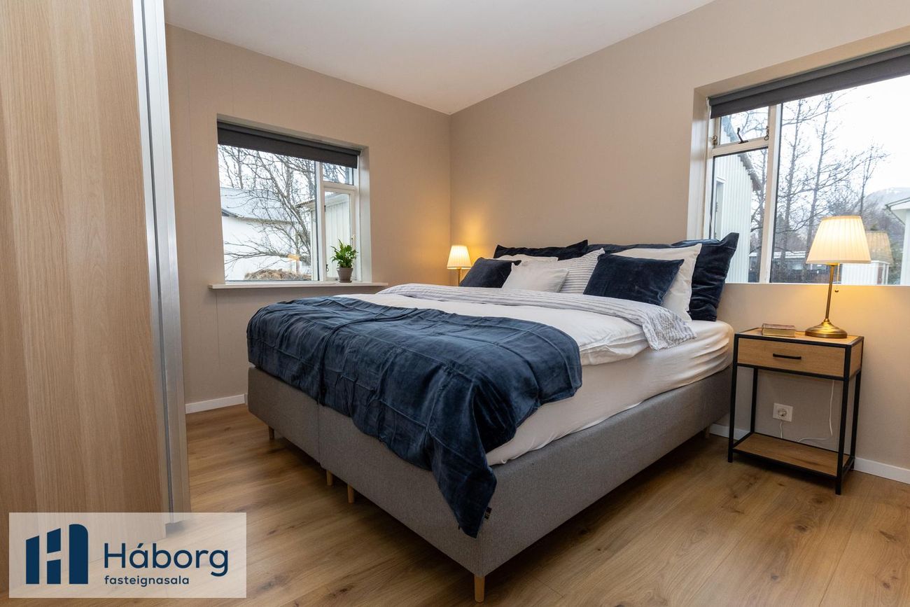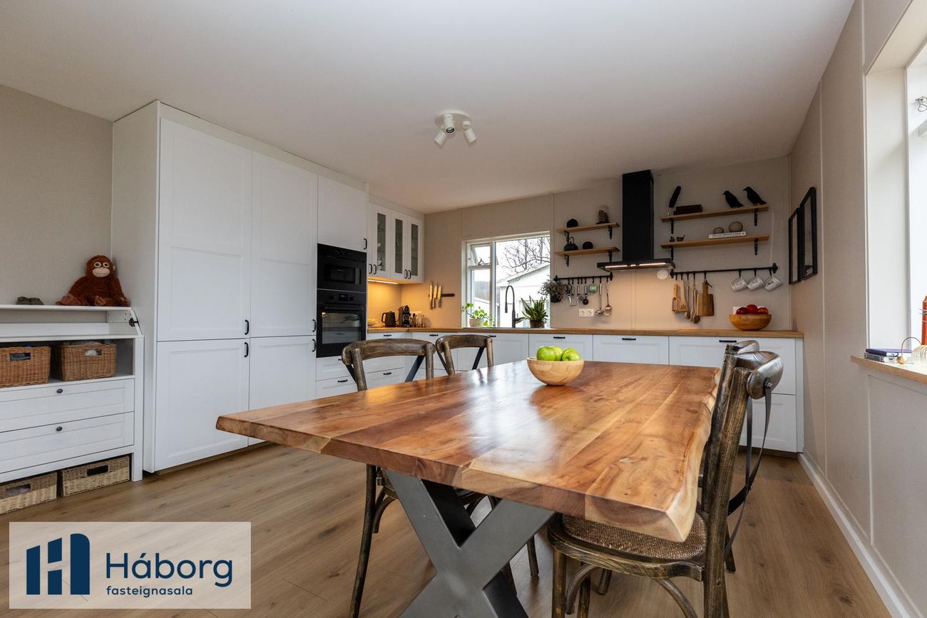 Allar innréttingar, skápar, gólfefni og hurðir voru endurnýjaðar árið 2023.