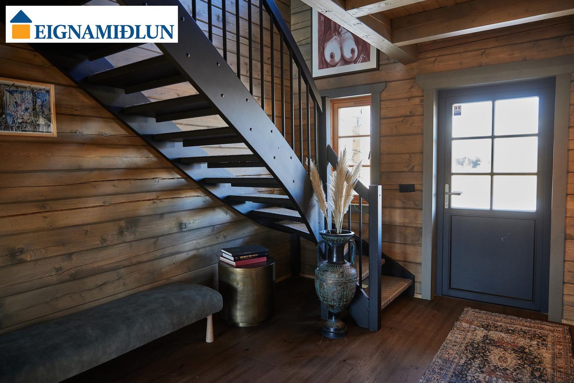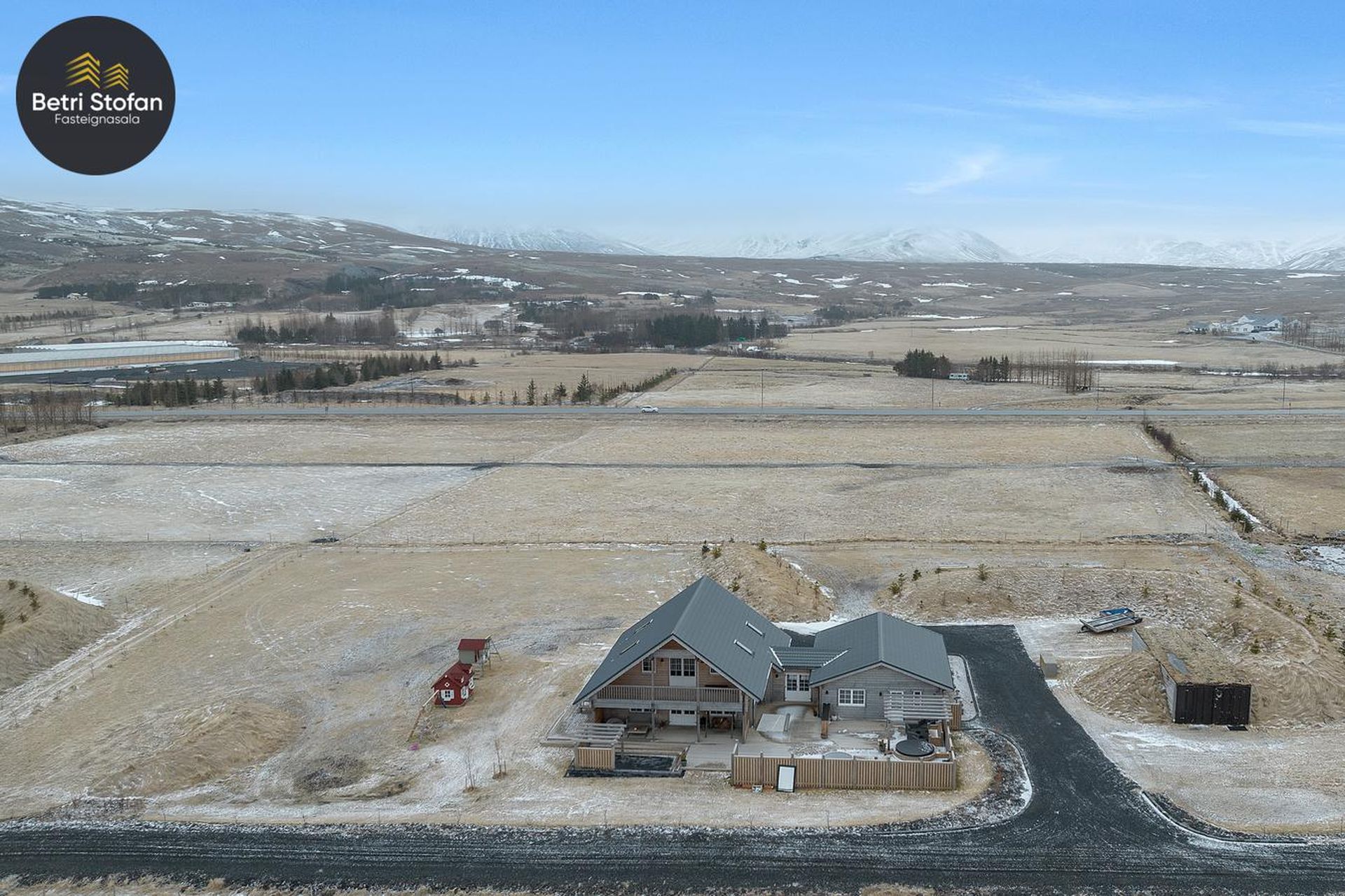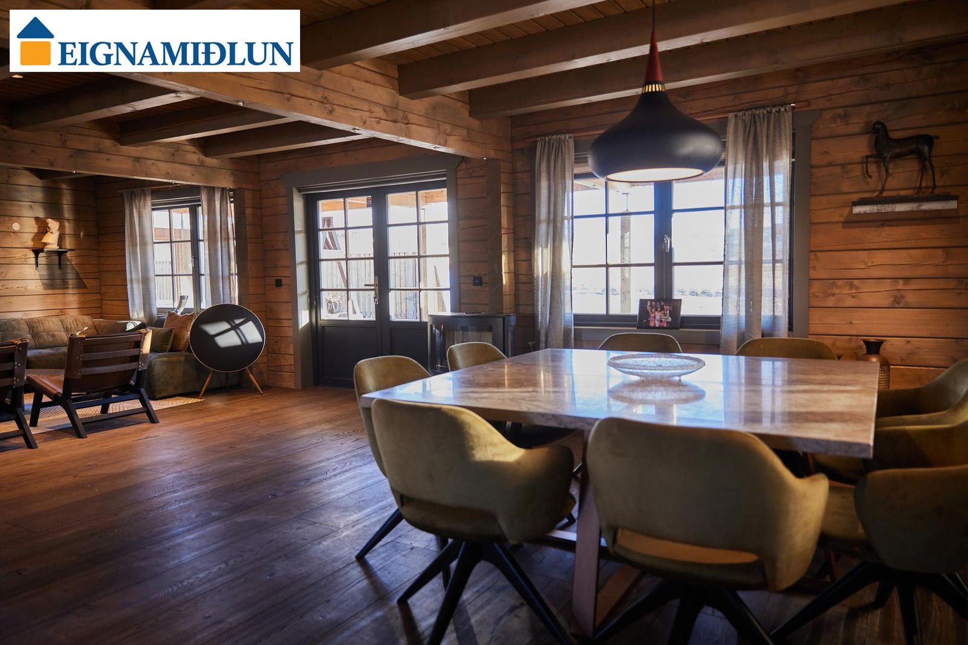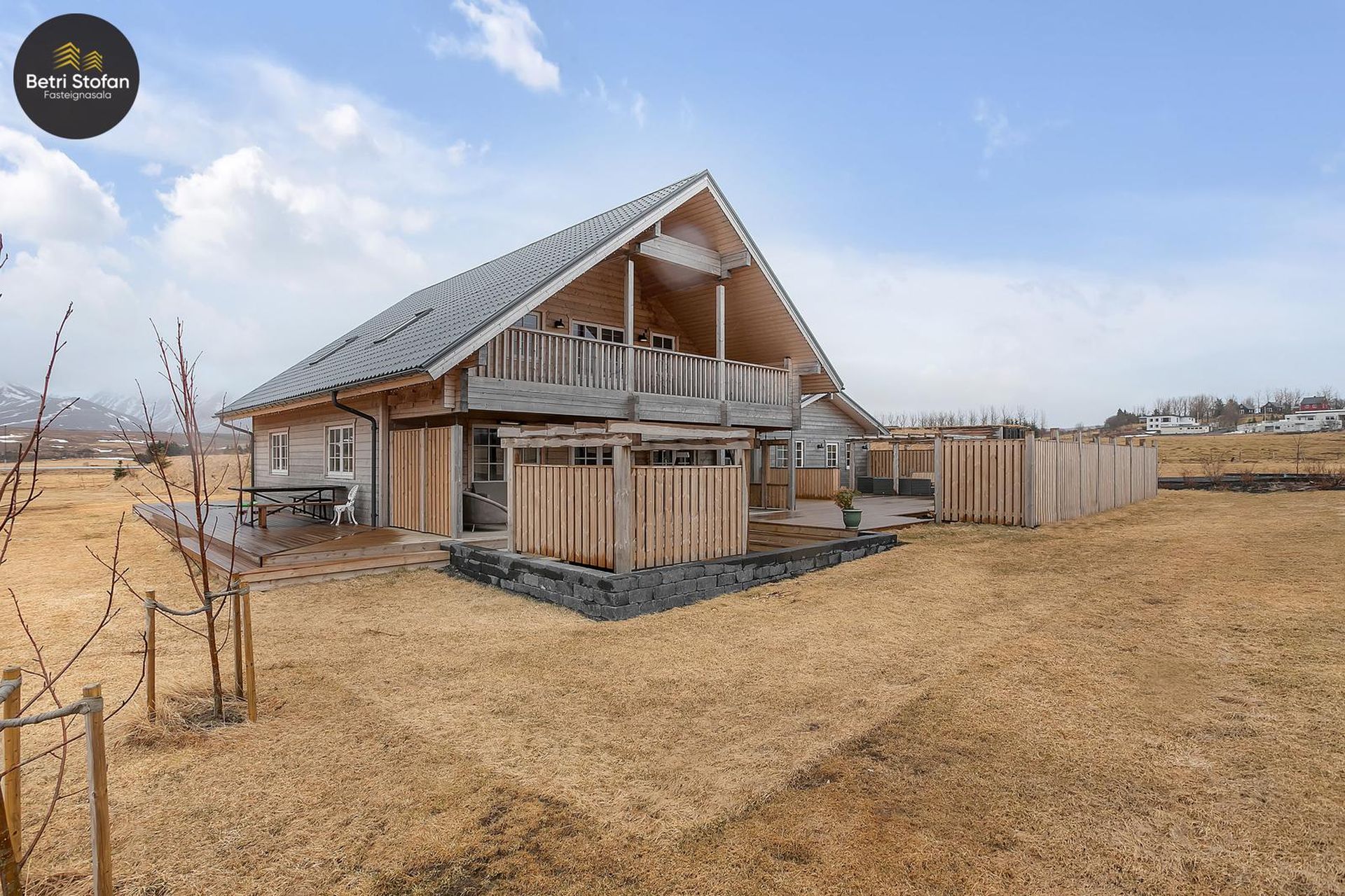 Betri stofan kynnir: Glæsilegt 283 fm einbýli á tveimur hæðum við Helgadalsveg 8 í Mosfellsdal. Eignin skiptist skv þjóðskrá í 222,3 fm íbúðarrými og 60,7 fm bílskúr, en bílskúrnum var breytt á byggingarstigi og er því íbúðarrými í dag. Að auki eru u.þ.b. 40 fm. undir súð á efri hæð sem nýtast vel og því heildarfermetrar um 320. Því til viðbótar er búið að klæða að utan með viðarklæðningu tvo 40 feta gáma með hita sem geymslur og setja inn í mön á lóðinni. Eignin stendur á tæplega hektara eignarlandi. Fyrir utan núverandi hús má byggja gestahúss allt að 150m2 og annað húsnæði, t.d. hesthús, reiðskemmu, gróðurhús, iðnaðarhús eða hótel allt að 500 fm.” Hvergi hefur verið til sparað við efnisval eignarinnar. Sérsmíðaðar innréttingar frá Tréborg hannaðar af Björgvini Snæbjörnssyni hjá Apparat. Lýsingarhönnun og ljós að innan og utan hönnuð af Lumex. Gólfhiti er í húsinu með hitastýringarkerfi frá Lumex. Vandað eikarparket frá Ebson og 120x120 flísar í forstofu, tveimur herbergjum og þvottahúsi frá Ebson, veggflísar á baði 3mx140 frá Vídd og gólfflísar frá Flísabúðinni. Uppþvottavél og gaseldavél af tegundinni Smeg frá Eirvík. Eignin stendur á tæplega hektara eignarlandi og samkvæmt gildandi deiliskipulagi er samþykkt fyrir byggingum.Nánari lýsing: Neðri hæð: Neðri hæðin skiptist í tvær einingar með gangi á milli. Gengið er inní flísalagt anddyri. Frá andyrrinu er gengið í suðurhlutann og inn í stofu/borðstofu og eldhúsrými. Stofan er parketlögð og skiptist í stóra borðstofu, hol og setustofu. Frá stofunni er útgengt á stóran harðviðarpall með grillaðstöðu og heitum og köldum pottum og útisturtu. Eldhúsið er parkelagt með stórri eldunareyju með granítborðplötum og sérsmíðaðri innréttingu frá Tréborg. Baðherbergið á neðri hæðinni er flísalagt með upphengdu salerni og "walk in sturtu". Í norðurhluta hússins eru tvö stór svefnherbergi ásamt stóru þvottahúsi með góðum skápum og hillum. Útgengt er á pallinn út á potta svæðið úr svefnherbergi sem snýr í suðaustur. Efri hæð: Gengið er upp fallegan stiga frá andyrrinu uppá efri hæðina sem er parketlögð fyrir utan baðherbergið, hæðin samanstendur af hjónaherbergi, barnaherbergi, sjónvarpsstofu og stóru baðherbergi með frístandandi baðkari og "walk inn " sturtu. Frá sjónvarpsstofunni er útgengt á rúmgóðar svalir sem snúa í suður.Vönduð eign á eignarlandi á vinsælum stað í Mosfellsdalnum þar sem stutt er í útivist, góðar reiðleiðir og golfiðkun. Staðsetningin er einstök rétt við Helgadalsveg, aðeins 5 mínútum frá Mosfellsbæ og 20 mínútúm frá miðbæ Reykjavíkur. Sveitakyrrð, dýralíf, stórar lóðir og skemmtilegar gönguleiðir í allar áttir. Fjallasýn til allra átta og dalurinn opinn langt til suðurs.Nánari upplýsingar veita:Gunnar S. Jónsson , sími 8995856, , löggiltur fasteignasali.Þórir Skarphéðinsson, sími 844 9591 - , lögmaður og löggiltur fasteignasali.Gjöld sem kaupandi þarf að standa straum af ef að kaupum verður:1. Stimpilgjald af fasteignamati fasteignar er 0.8%, en 0,4% fyrir fyrstu kaup og 1,6% fyrir lögaðila. 2. Þinglýsingargjald: kaupsamningi, skuldabréfi, veðleyfi, afsali o.s.frv. er kr. 2.700 af hverju skjali.3. Lántökukostnaður samkvæmt verðskrá viðkomandi lánastofnunar.4. Umsýslugjald til fasteignasölu skv. gjaldskrá.