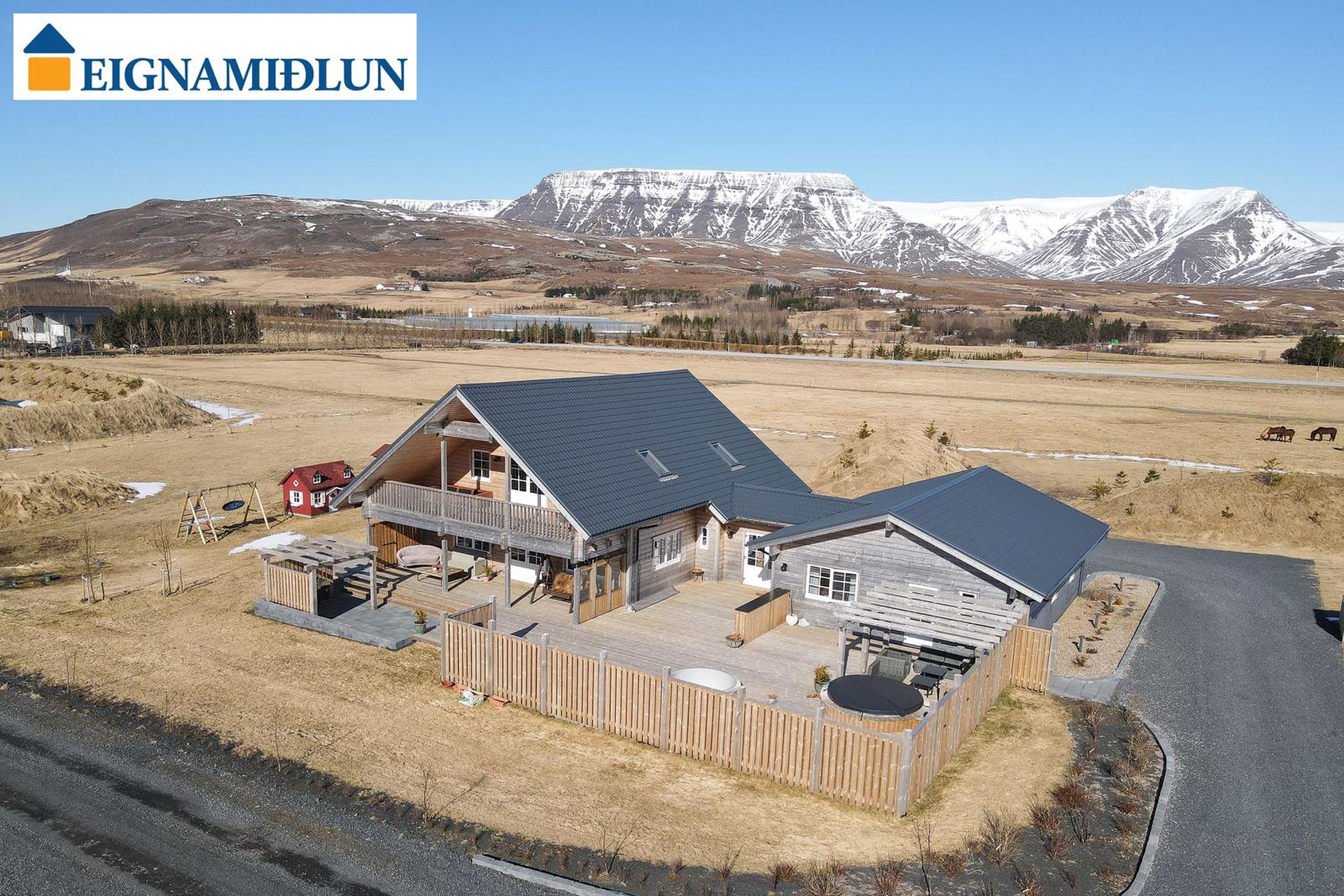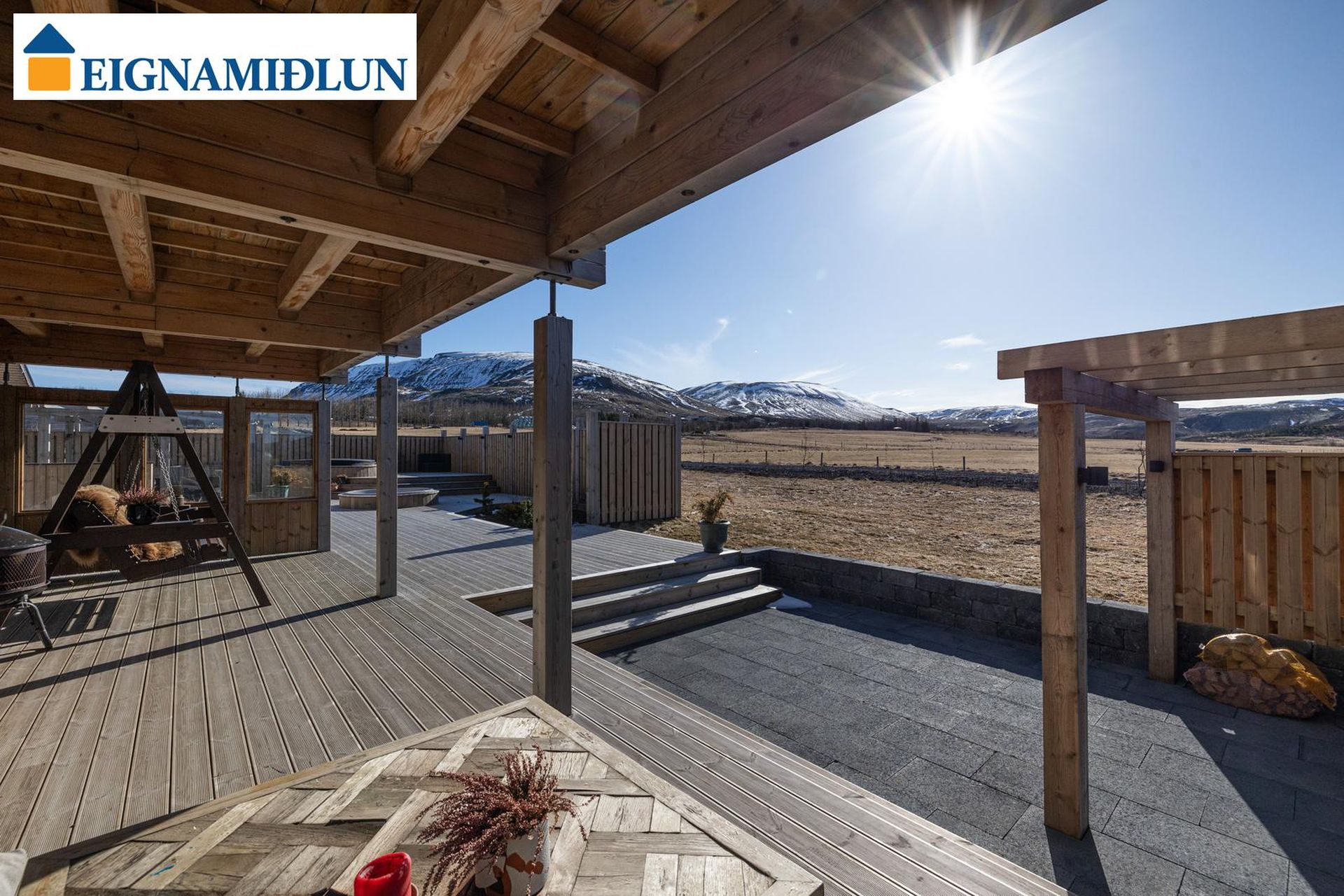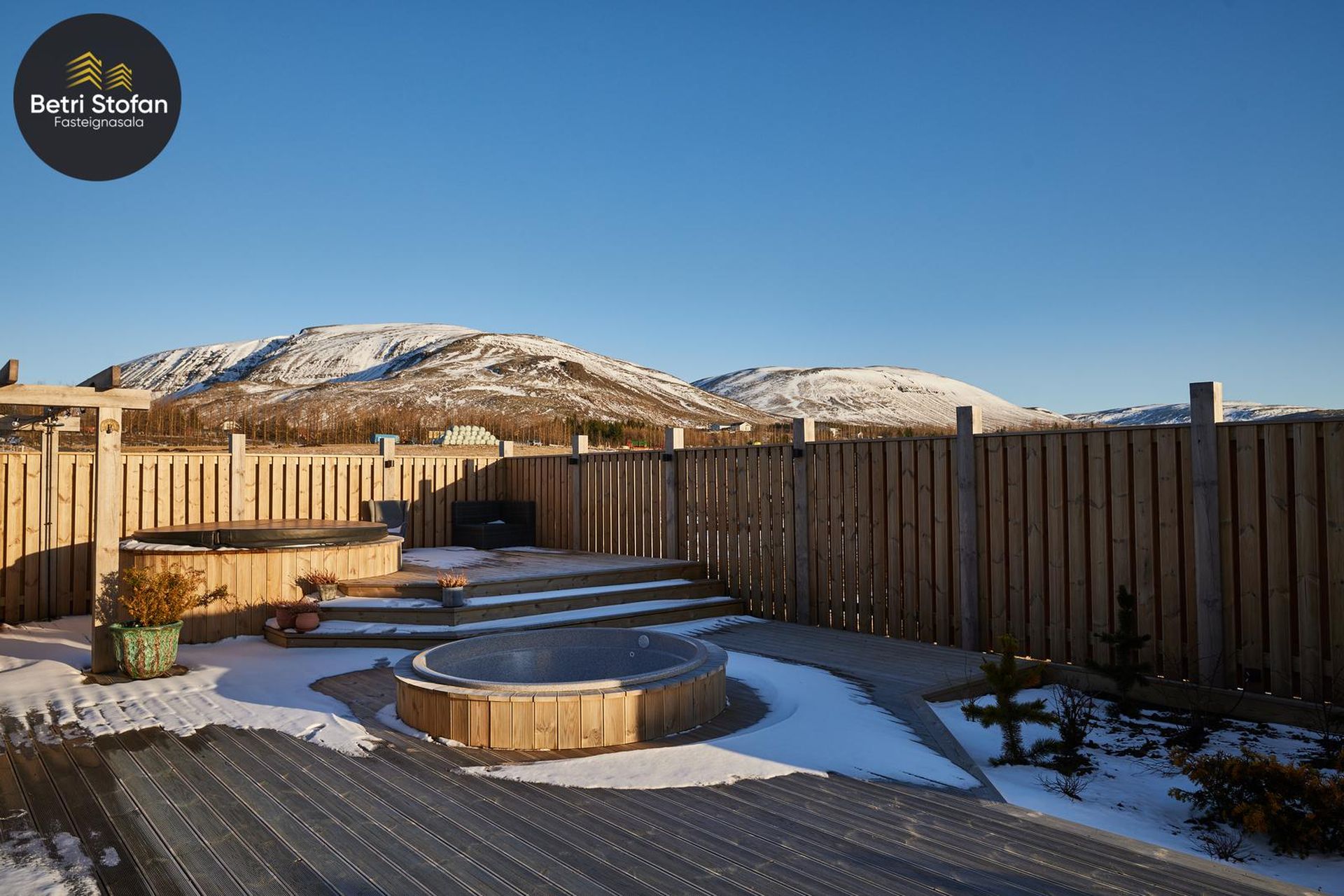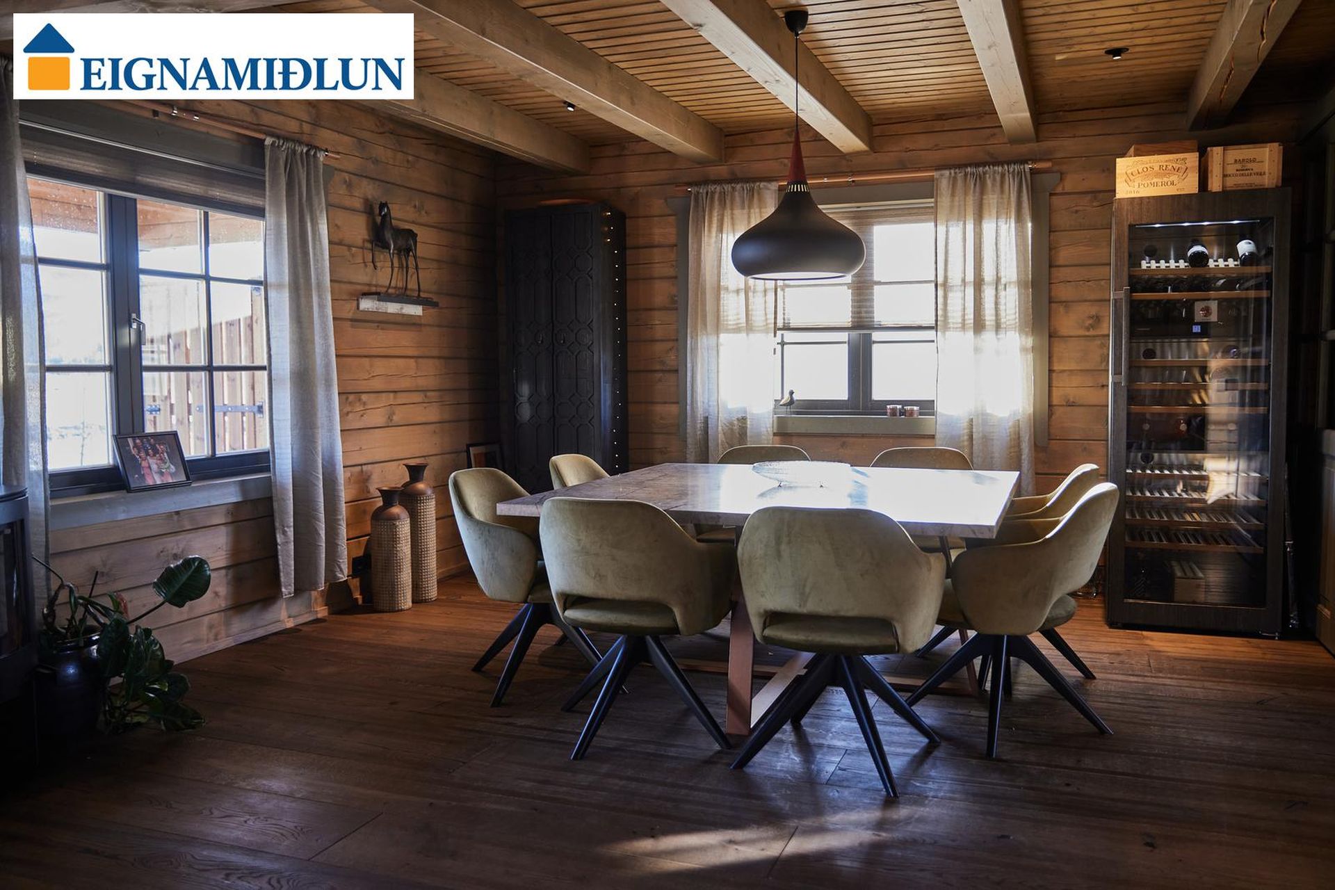 Betri stofan kynnir: Glæsilegt 283 fm einbýli á tveimur hæðum við Helgadalsveg 8 í Mosfellsdal. Eignin skiptist skv þjóðskrá í 222,3 fm íbúðarrými og 60,7 fm bílskúr, en bílskúrnum var breytt á byggingarstigi og er því íbúðarrými í dag. Að auki eru u.þ.b. 40 fm. undir súð á efri hæð sem nýtast vel og því heildarfermetrar um 320. Því til viðbótar er búið að klæða að utan með viðarklæðningu tvo 40 feta gáma með hita sem geymslur og setja inn í mön á lóðinni. Eignin stendur á tæplega hektara eignarlandi. Fyrir utan núverandi hús má byggja gestahúss allt að 150m2 og annað húsnæði, t.d. hesthús, reiðskemmu, gróðurhús, iðnaðarhús eða hótel allt að 500 fm.” Hvergi hefur verið til sparað við efnisval eignarinnar. Sérsmíðaðar innréttingar frá Tréborg hannaðar af Björgvini Snæbjörnssyni hjá Apparat. Lýsingarhönnun og ljós að innan og utan hönnuð af Lumex. Gólfhiti er í húsinu með hitastýringarkerfi frá Lumex. Vandað eikarparket frá Ebson og 120x120 flísar í forstofu, tveimur herbergjum og þvottahúsi frá Ebson, veggflísar á baði 3mx140 frá Vídd og gólfflísar frá Flísabúðinni. Uppþvottavél og gaseldavél af tegundinni Smeg frá Eirvík. Eignin stendur á tæplega hektara eignarlandi og samkvæmt gildandi deiliskipulagi er samþykkt fyrir byggingum.Nánari lýsing: Neðri hæð: Neðri hæðin skiptist í tvær einingar með gangi á milli. Gengið er inní flísalagt anddyri. Frá andyrrinu er gengið í suðurhlutann og inn í stofu/borðstofu og eldhúsrými. Stofan er parketlögð og skiptist í stóra borðstofu, hol og setustofu. Frá stofunni er útgengt á stóran harðviðarpall með grillaðstöðu og heitum og köldum pottum og útisturtu. Eldhúsið er parkelagt með stórri eldunareyju með granítborðplötum og sérsmíðaðri innréttingu frá Tréborg. Baðherbergið á neðri hæðinni er flísalagt með upphengdu salerni og "walk in sturtu". Í norðurhluta hússins eru tvö stór svefnherbergi ásamt stóru þvottahúsi með góðum skápum og hillum. Útgengt er á pallinn út á potta svæðið úr svefnherbergi sem snýr í suðaustur. Efri hæð: Gengið er upp fallegan stiga frá andyrrinu uppá efri hæðina sem er parketlögð fyrir utan baðherbergið, hæðin samanstendur af hjónaherbergi, barnaherbergi, sjónvarpsstofu og stóru baðherbergi með frístandandi baðkari og "walk inn " sturtu. Frá sjónvarpsstofunni er útgengt á rúmgóðar svalir sem snúa í suður.Vönduð eign á eignarlandi á vinsælum stað í Mosfellsdalnum þar sem stutt er í útivist, góðar reiðleiðir og golfiðkun. Staðsetningin er einstök rétt við Helgadalsveg, aðeins 5 mínútum frá Mosfellsbæ og 20 mínútúm frá miðbæ Reykjavíkur. Sveitakyrrð, dýralíf, stórar lóðir og skemmtilegar gönguleiðir í allar áttir. Fjallasýn til allra átta og dalurinn opinn langt til suðurs.Nánari upplýsingar veita:Gunnar S. Jónsson , sími 8995856, , löggiltur fasteignasali.Þórir Skarphéðinsson, sími 844 9591 - , lögmaður og löggiltur fasteignasali.Gjöld sem kaupandi þarf að standa straum af ef að kaupum verður:1. Stimpilgjald af fasteignamati fasteignar er 0.8%, en 0,4% fyrir fyrstu kaup og 1,6% fyrir lögaðila. 2. Þinglýsingargjald: kaupsamningi, skuldabréfi, veðleyfi, afsali o.s.frv. er kr. 2.700 af hverju skjali.3. Lántökukostnaður samkvæmt verðskrá viðkomandi lánastofnunar.4. Umsýslugjald til fasteignasölu skv. gjaldskrá.