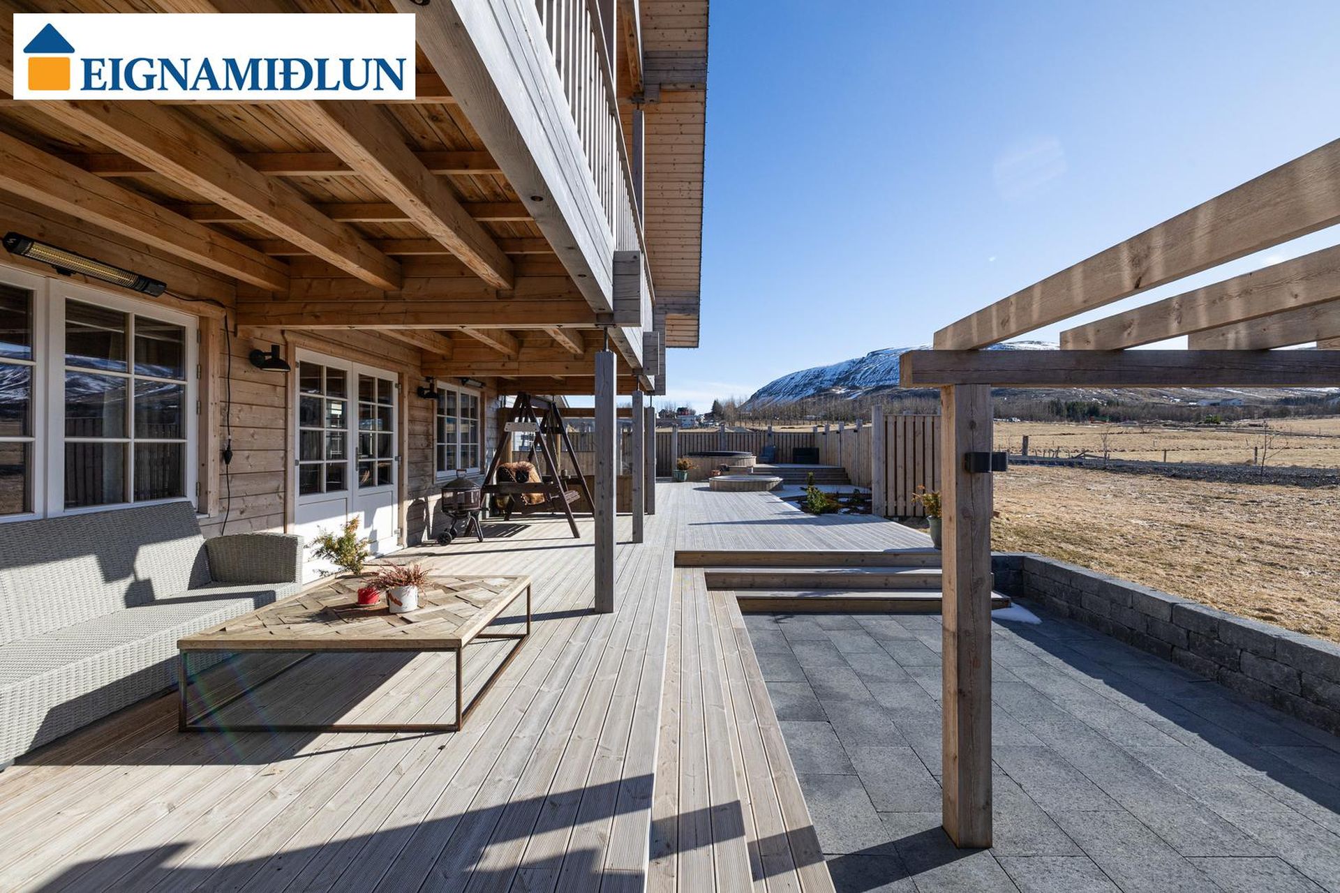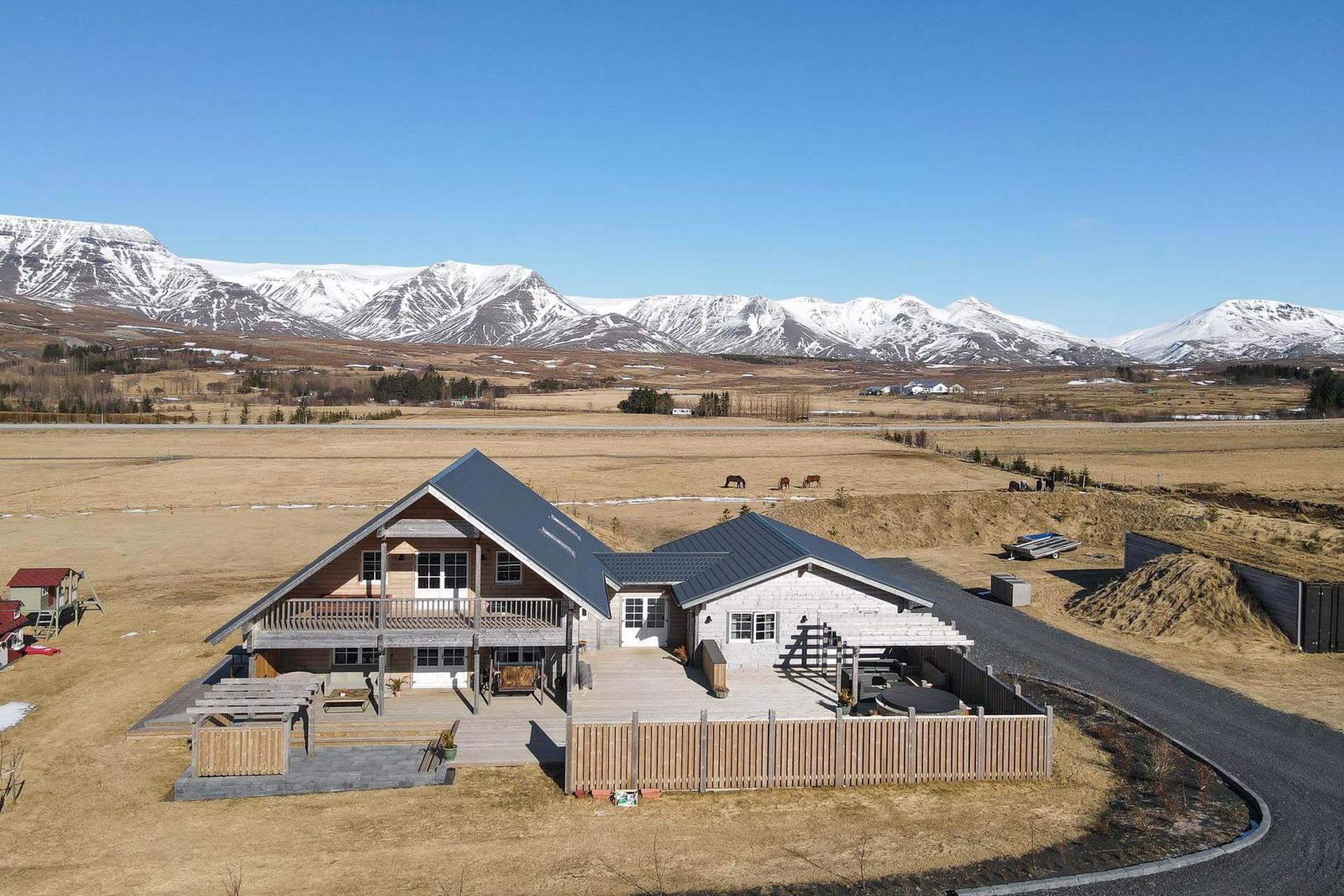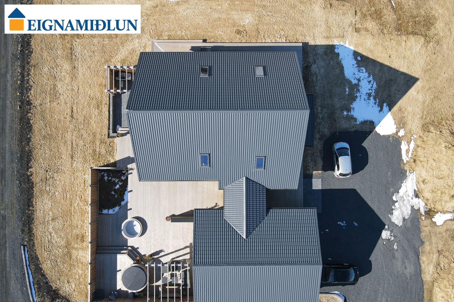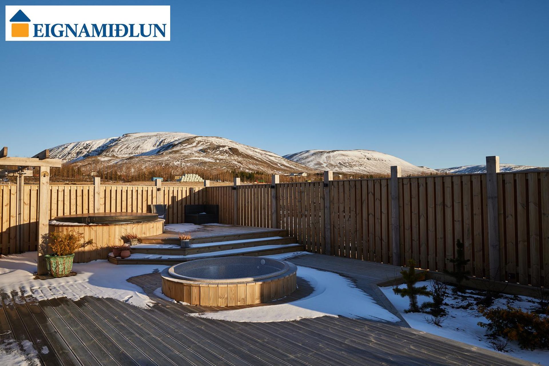 Betri stofan kynnir: Glæsilegt 283 fm einbýli á tveimur hæðum við Helgadalsveg 8 í Mosfellsdal. Eignin skiptist skv þjóðskrá í 222,3 fm íbúðarrými og 60,7 fm bílskúr, en bílskúrnum var breytt á byggingarstigi og er því íbúðarrými í dag. Að auki eru u.þ.b. 40 fm. undir súð á efri hæð sem nýtast vel og því heildarfermetrar um 320. Því til viðbótar er búið að klæða að utan með viðarklæðningu tvo 40 feta gáma með hita sem geymslur og setja inn í mön á lóðinni. Eignin stendur á tæplega hektara eignarlandi. Fyrir utan núverandi hús má byggja gestahúss allt að 150m2 og annað húsnæði, t.d. hesthús, reiðskemmu, gróðurhús, iðnaðarhús eða hótel allt að 500 fm.” Hvergi hefur verið til sparað við efnisval eignarinnar. Sérsmíðaðar innréttingar frá Tréborg hannaðar af Björgvini Snæbjörnssyni hjá Apparat. Lýsingarhönnun og ljós að innan og utan hönnuð af Lumex. Gólfhiti er í húsinu með hitastýringarkerfi frá Lumex. Vandað eikarparket frá Ebson og 120x120 flísar í forstofu, tveimur herbergjum og þvottahúsi frá Ebson, veggflísar á baði 3mx140 frá Vídd og gólfflísar frá Flísabúðinni. Uppþvottavél og gaseldavél af tegundinni Smeg frá Eirvík. Eignin stendur á tæplega hektara eignarlandi og samkvæmt gildandi deiliskipulagi er samþykkt fyrir byggingum.Nánari lýsing: Neðri hæð: Neðri hæðin skiptist í tvær einingar með gangi á milli. Gengið er inní flísalagt anddyri. Frá andyrrinu er gengið í suðurhlutann og inn í stofu/borðstofu og eldhúsrými. Stofan er parketlögð og skiptist í stóra borðstofu, hol og setustofu. Frá stofunni er útgengt á stóran harðviðarpall með grillaðstöðu og heitum og köldum pottum og útisturtu. Eldhúsið er parkelagt með stórri eldunareyju með granítborðplötum og sérsmíðaðri innréttingu frá Tréborg. Baðherbergið á neðri hæðinni er flísalagt með upphengdu salerni og "walk in sturtu". Í norðurhluta hússins eru tvö stór svefnherbergi ásamt stóru þvottahúsi með góðum skápum og hillum. Útgengt er á pallinn út á potta svæðið úr svefnherbergi sem snýr í suðaustur. Efri hæð: Gengið er upp fallegan stiga frá andyrrinu uppá efri hæðina sem er parketlögð fyrir utan baðherbergið, hæðin samanstendur af hjónaherbergi, barnaherbergi, sjónvarpsstofu og stóru baðherbergi með frístandandi baðkari og "walk inn " sturtu. Frá sjónvarpsstofunni er útgengt á rúmgóðar svalir sem snúa í suður.Vönduð eign á eignarlandi á vinsælum stað í Mosfellsdalnum þar sem stutt er í útivist, góðar reiðleiðir og golfiðkun. Staðsetningin er einstök rétt við Helgadalsveg, aðeins 5 mínútum frá Mosfellsbæ og 20 mínútúm frá miðbæ Reykjavíkur. Sveitakyrrð, dýralíf, stórar lóðir og skemmtilegar gönguleiðir í allar áttir. Fjallasýn til allra átta og dalurinn opinn langt til suðurs.Nánari upplýsingar veita:Gunnar S. Jónsson , sími 8995856, , löggiltur fasteignasali.Þórir Skarphéðinsson, sími 844 9591 - , lögmaður og löggiltur fasteignasali.Gjöld sem kaupandi þarf að standa straum af ef að kaupum verður:1. Stimpilgjald af fasteignamati fasteignar er 0.8%, en 0,4% fyrir fyrstu kaup og 1,6% fyrir lögaðila. 2. Þinglýsingargjald: kaupsamningi, skuldabréfi, veðleyfi, afsali o.s.frv. er kr. 2.700 af hverju skjali.3. Lántökukostnaður samkvæmt verðskrá viðkomandi lánastofnunar.4. Umsýslugjald til fasteignasölu skv. gjaldskrá.