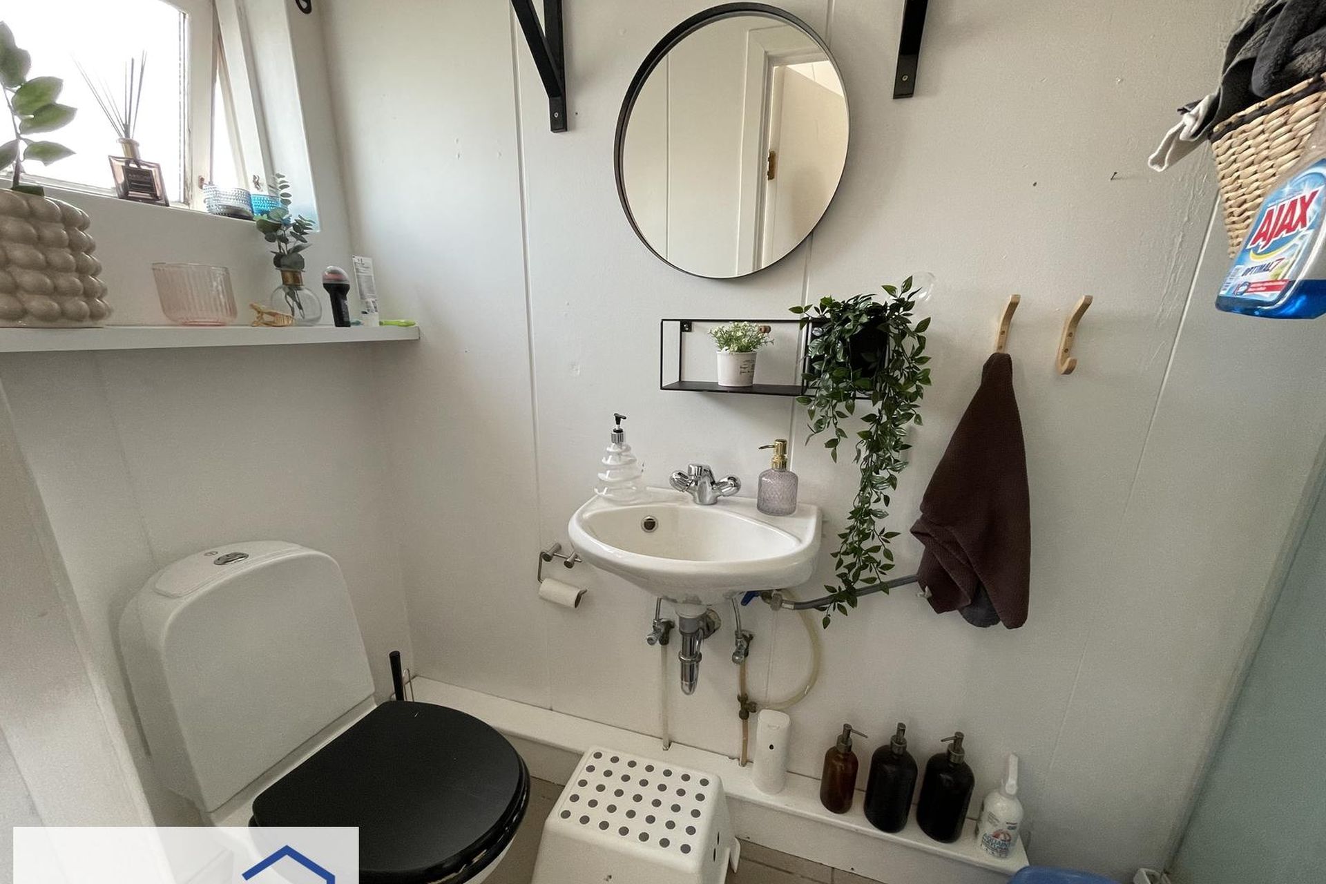 Kjallari með lítið salerni og vaski.