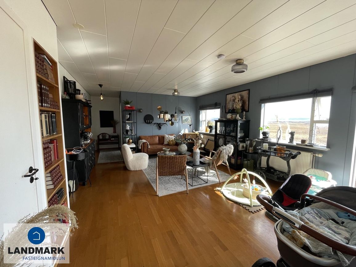 Allar nánari upplýsingar veitir Freyja Rúnars löggiltur fasteignasali í síma 694-4112 eða freyja@landmark.isAðalhæð 96,2 fm: Parket á gólfi fyrir utan forstofu og baðherbergi þar sem eru flísar. Komið inn í flísalagða forstofu með fataskáp. Rúmgott alrými með samliggjandi stofu og borðstofu með parket á gólfi, útgengt út á stóra, afgirta timburverönd með útsýni til sjós. Eldhús er með u laga innréttingu, bakaraofni í vinnuhæð, keramik helluborði, tengi fyrir uppþvottavél og góðum borðkrók. Tvö svefnherbergi, annað þeirra með fataherbergi innaf. Baðherbergi er mjög rúmgott með flísum á gólfi, innréttingu, hornbaðkari og handklæðaofni.