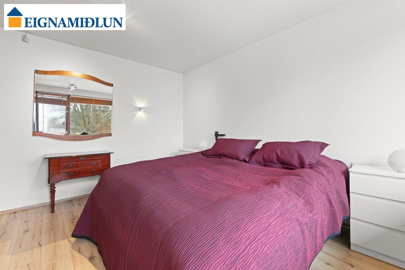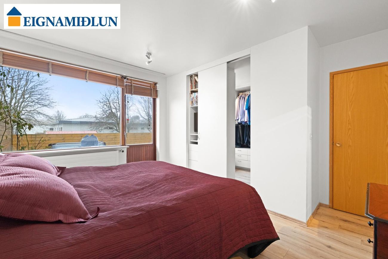 Hjónaherbergi (1): Rúmgott parketlagt hjónaherbergi með fataherbergi innaf. Nýlegt parket er í hjónaherbergi.