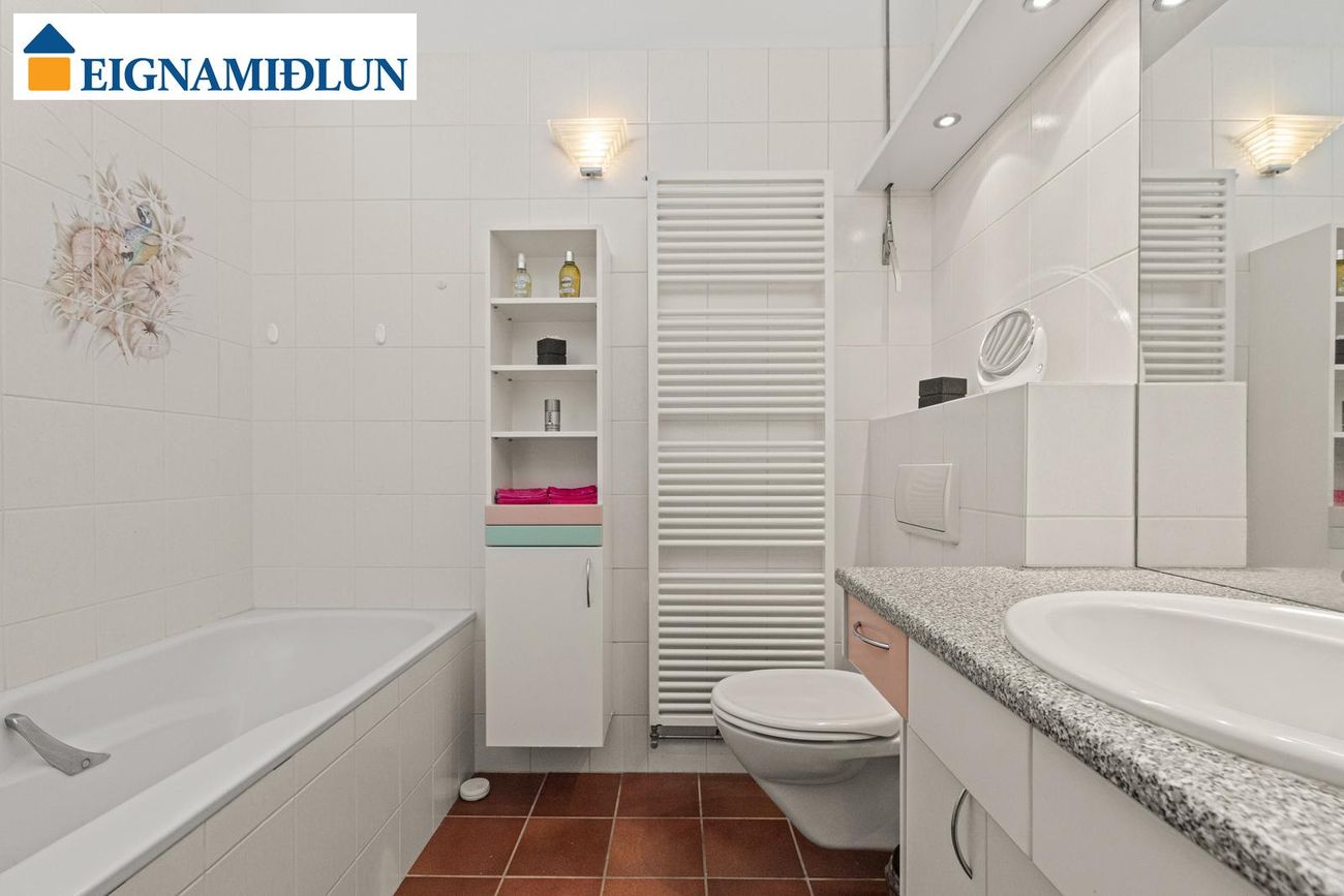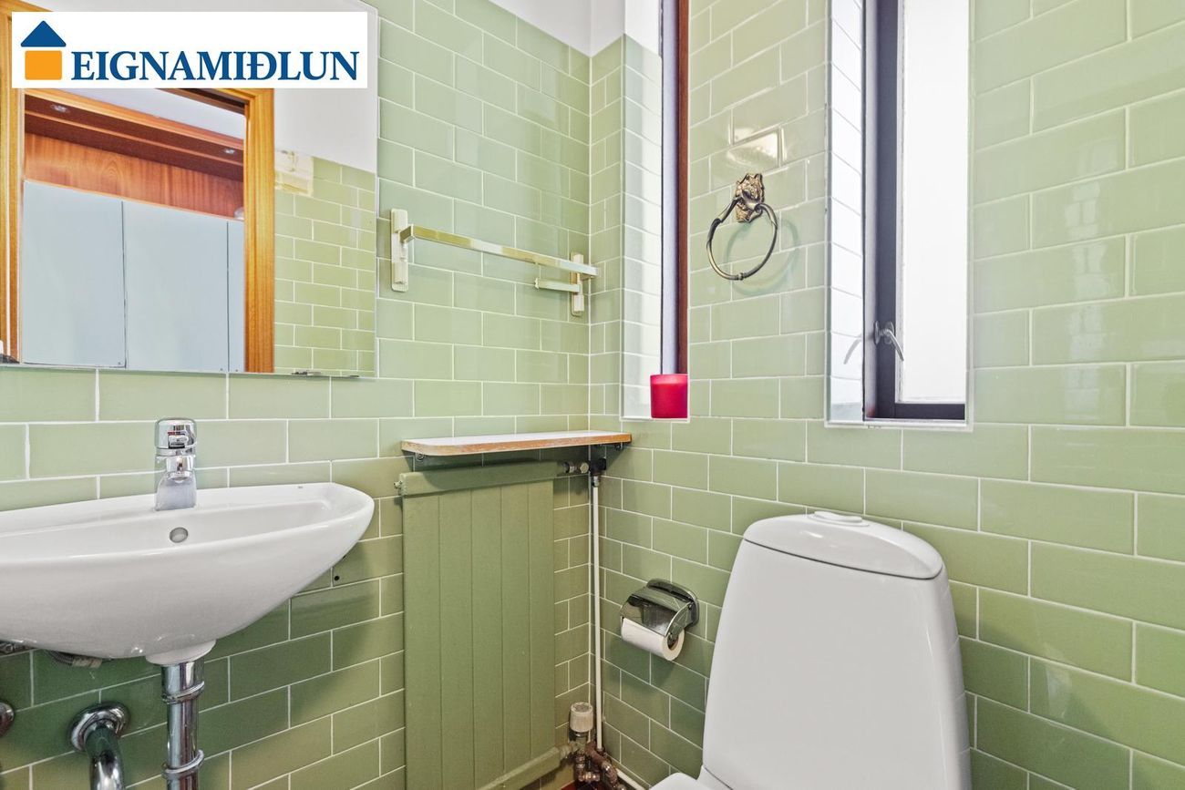 Snyrting: Gengið er í snyrtingu frá forstofu. Gólf er flísalagt. Gluggi er á snyrtingu.