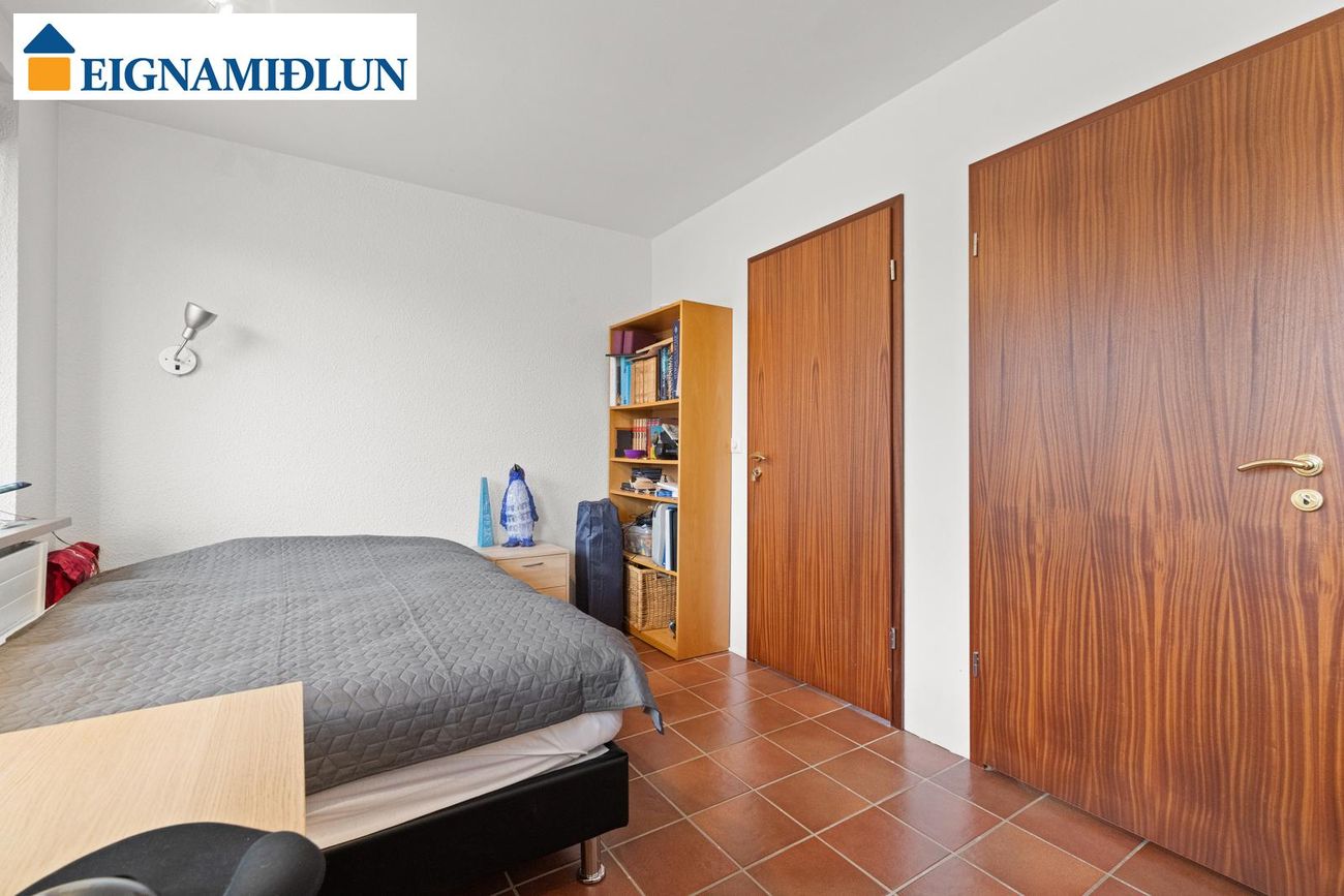 Herbergi (3): Rúmgott flísalagt herbergi innaf holi.