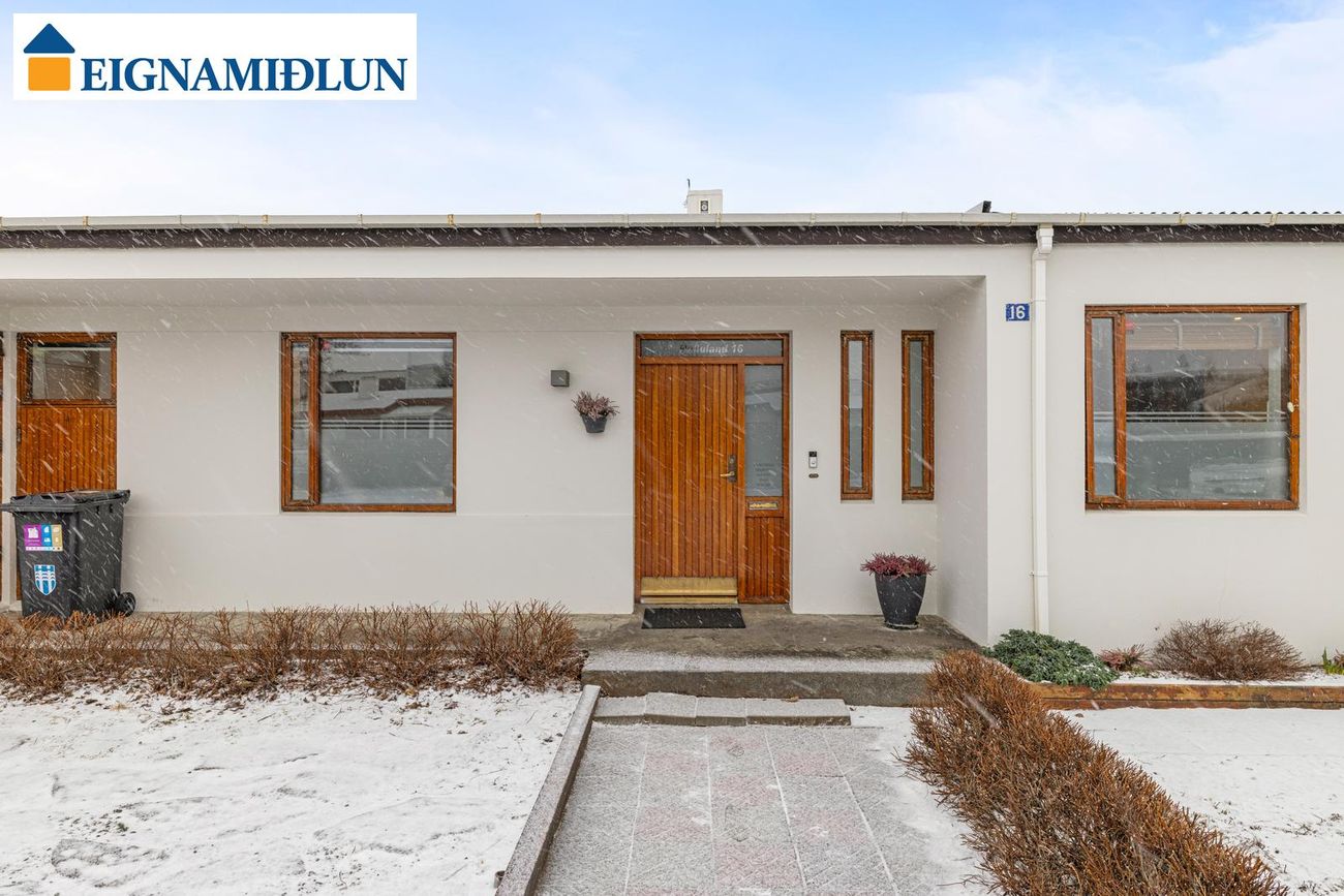 Glæsilegt 170,5 fm raðhús á einni hæð við Helluland 16 í Fossvogi. Innbyggður bílskúr. Stórar og bjartar stofur með arni. Garður til suðurs með mjög stórri nýlegri timburverönd og heitum potti. Húsið stendur neðan götu og bílastæði eru fyrir framan húsið.