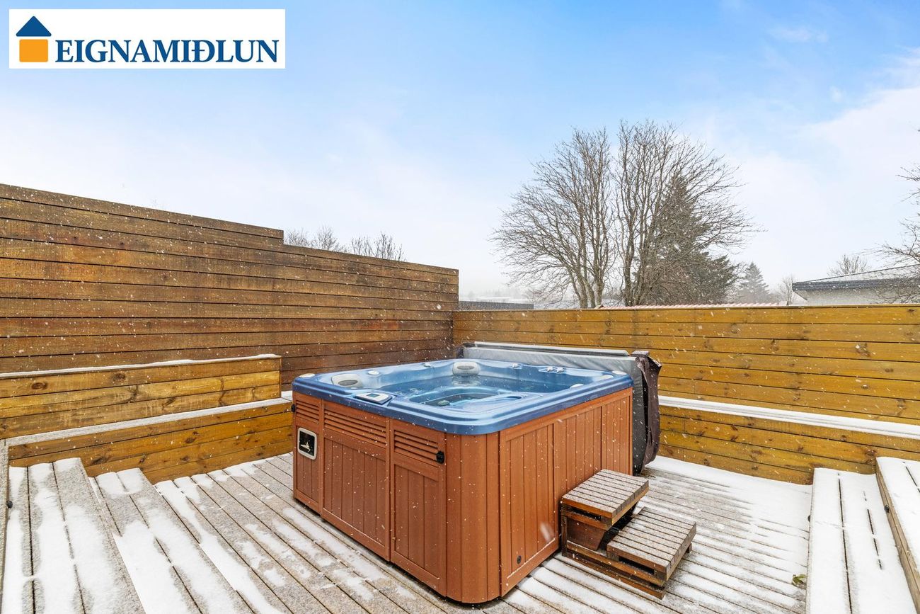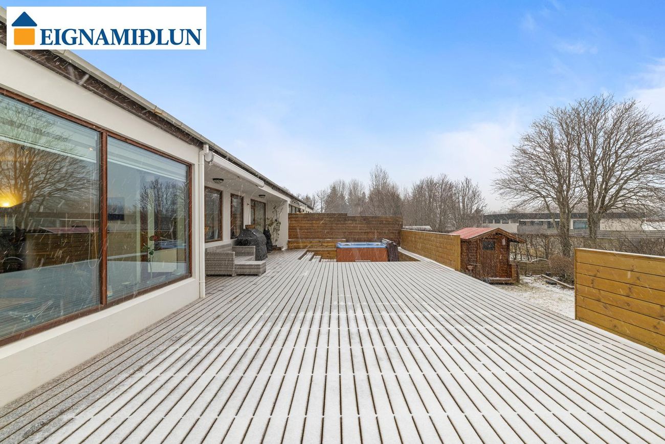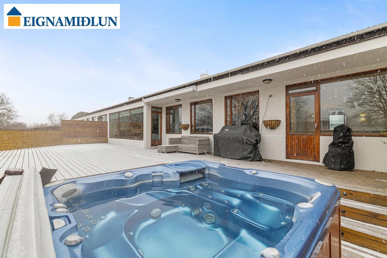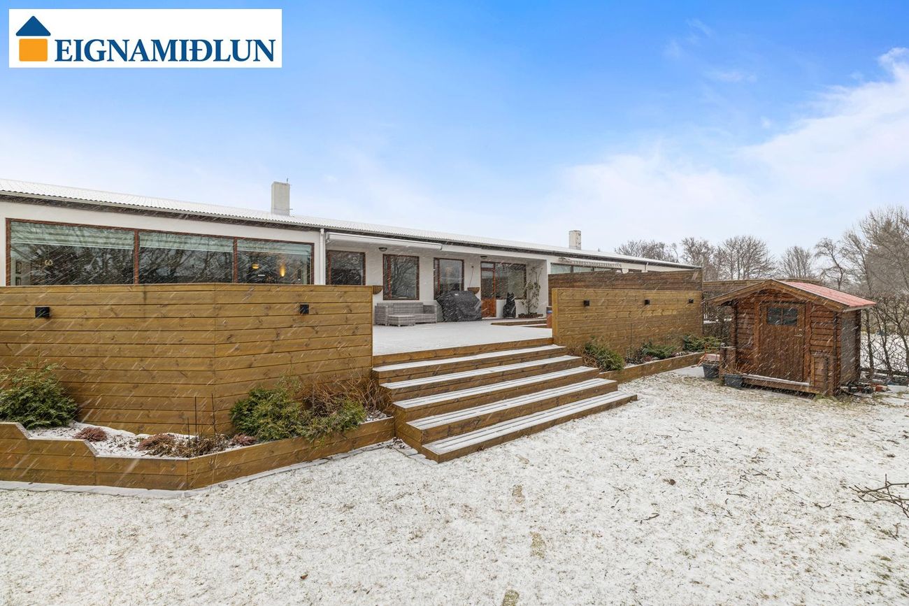 Framkvæmdir utanhúss: Járn á þaki (og pappi) var endurnýjað fyrir um þremur árum síðan. Gler í gluggum í stofum, holi og baðherbergi var endurnýjað fyrir um 10 árum síðan. Garður var standsettur árið 2021 og sett mjög stór timburverönd.
