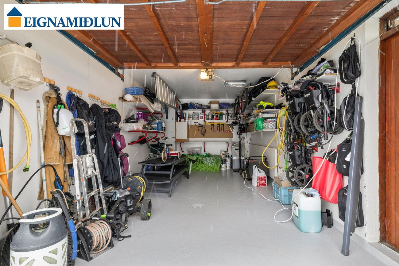 Geymsluloft er yfir húsinu.