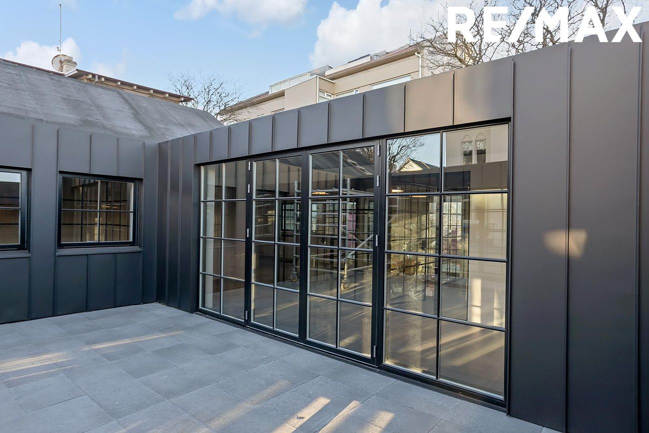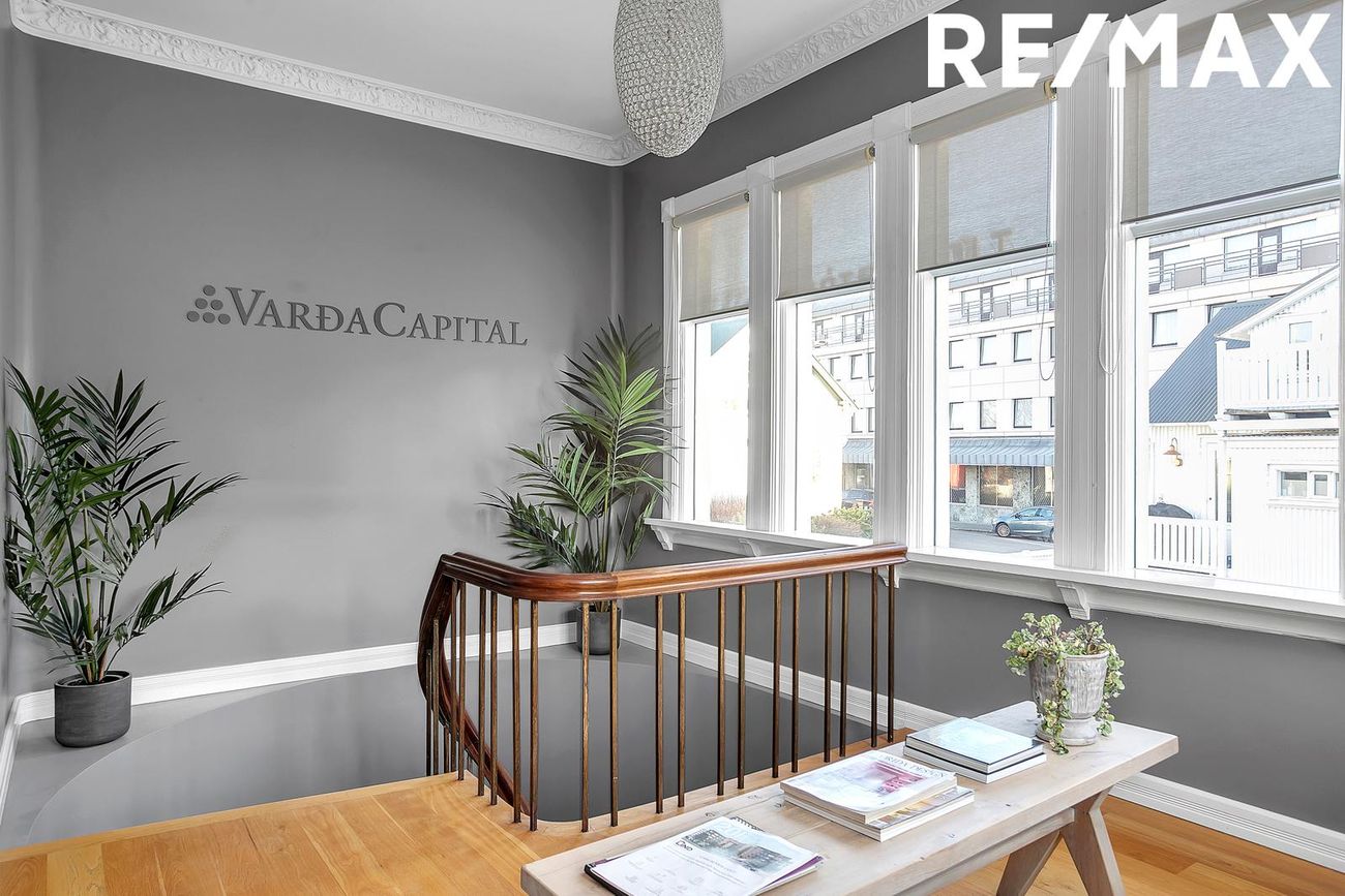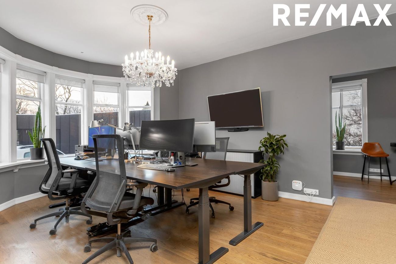 Glæsilegt atvinnu/ skrifstofu húsnæði með tveimur sérhæðum ásamt nýlega byggðu skrifstofuhúsi á einni hæð sem staðsett á baklóð bak við hvíta húsið.