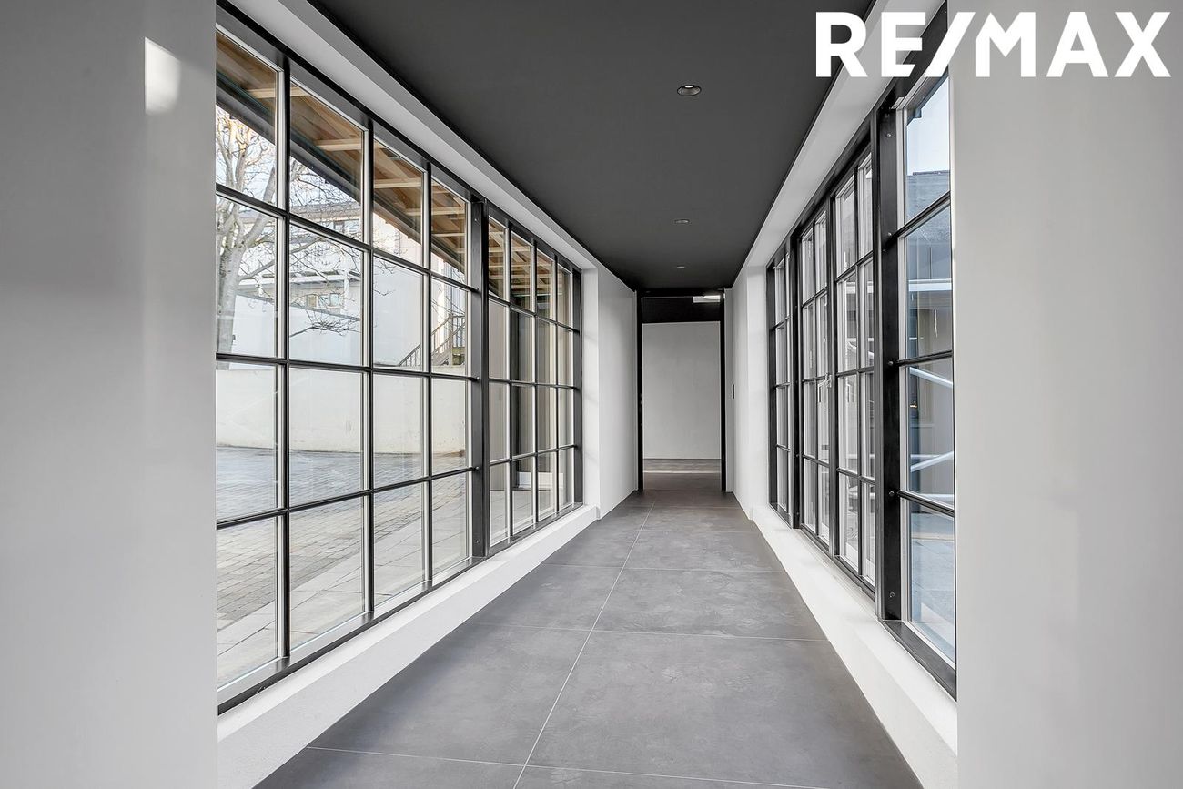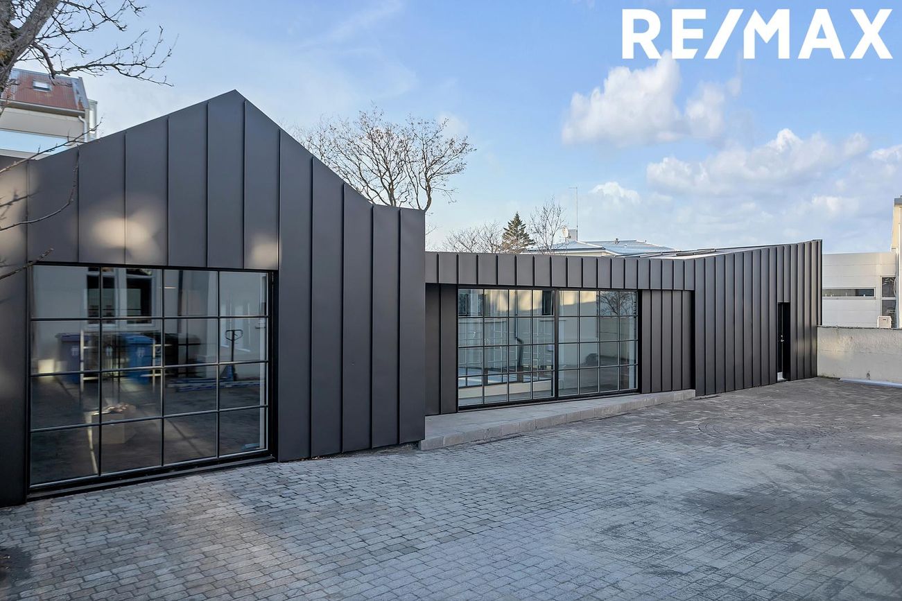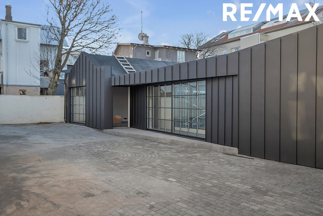 Nýlega byggt hús á baklóð sem er 249,2 fm. á einni hæð, Komið er inn í rými sem hugsað er sem móttaka, þar inn af er hólfað niður gangar, fundarherbergi, skrifstofur með glerveggjum og glerhurðum auk þess er fullbúið eldhús og þrjú salerni. Hiti í gólfi, flísalagt. Fyrir miðju hússins er skjólgóður 45,6 fm. hellulagður inngarður með hitalögn.