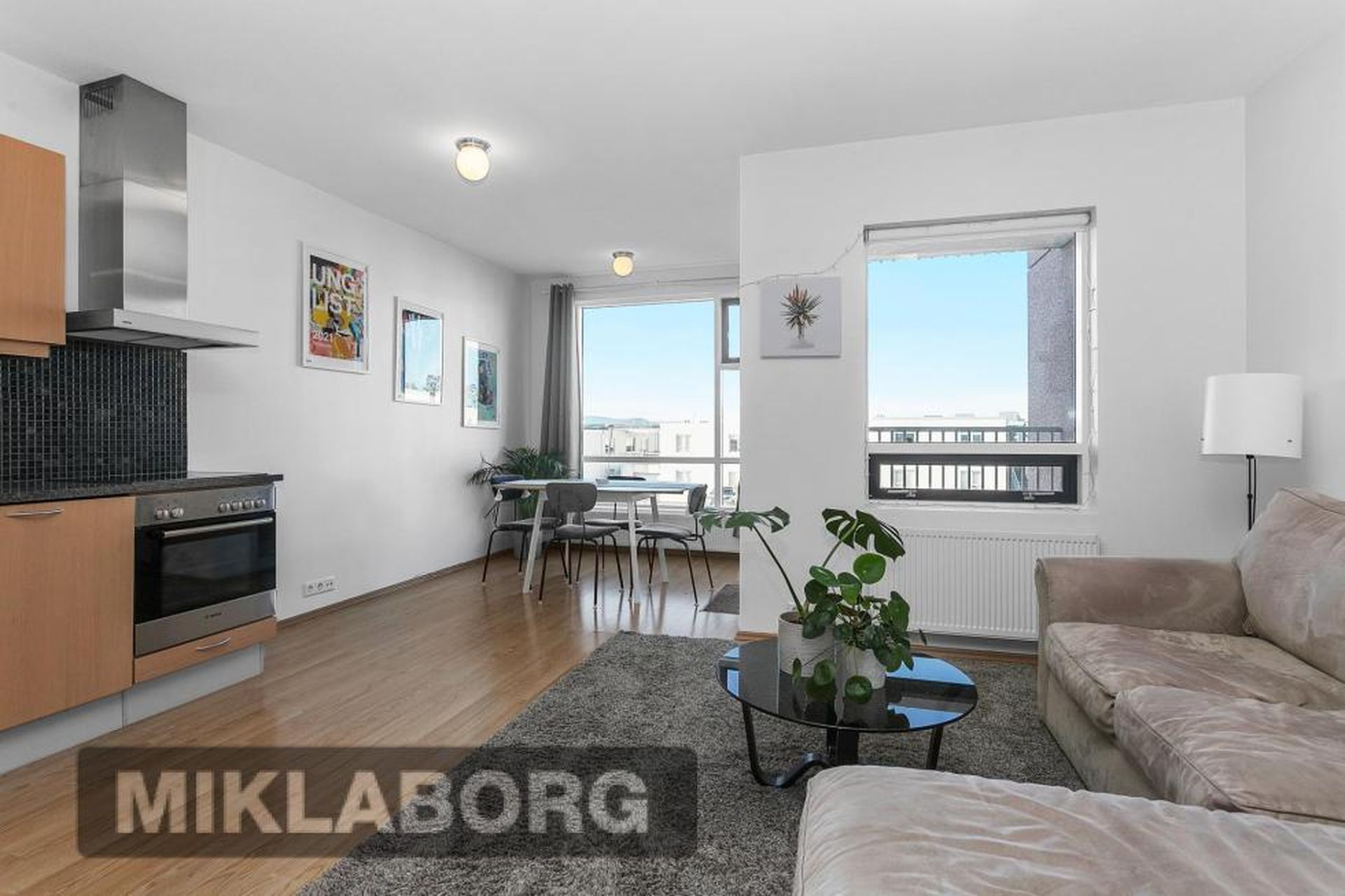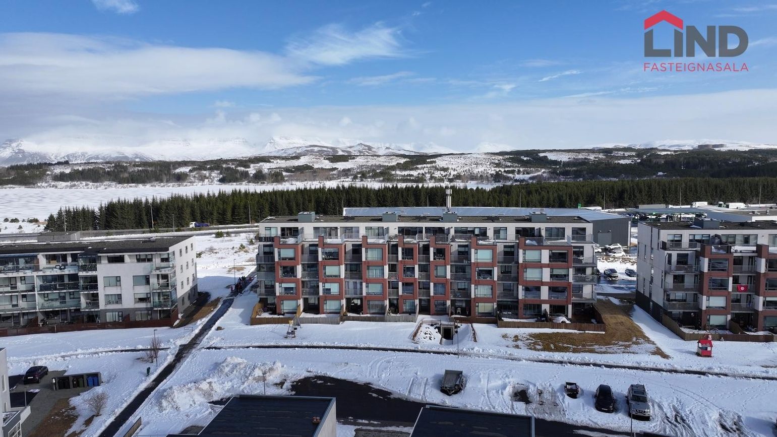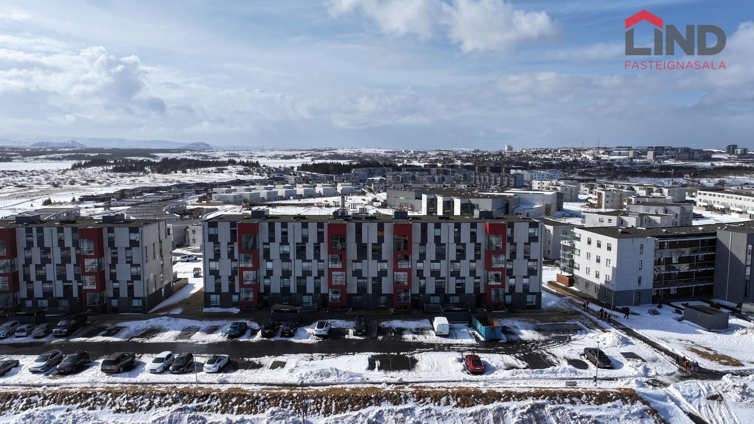 Íbúðin skiptist í rúmgott alrými sem samanstendur af stofu, borðstofu og eldhúsi. Útgengi er þaðan á rúmgóðar yfirbyggðar svalir til suðvesturs með miklu útsýni. Tvö svefnherbergi sem er bæði með skápum. Rúmgott baðherbergi og sér þvottaherbergi innan íbúðar. Sérmerkt bílastæði í bílakjallara sem er með þvottastæði fyrir íbúa. Sérgeymsla í kjallara er 6,8 fermetrar að stærð.