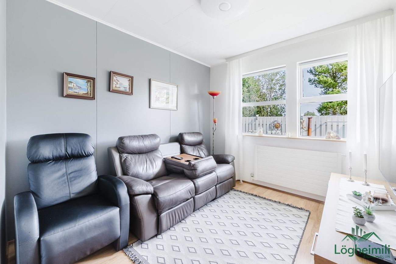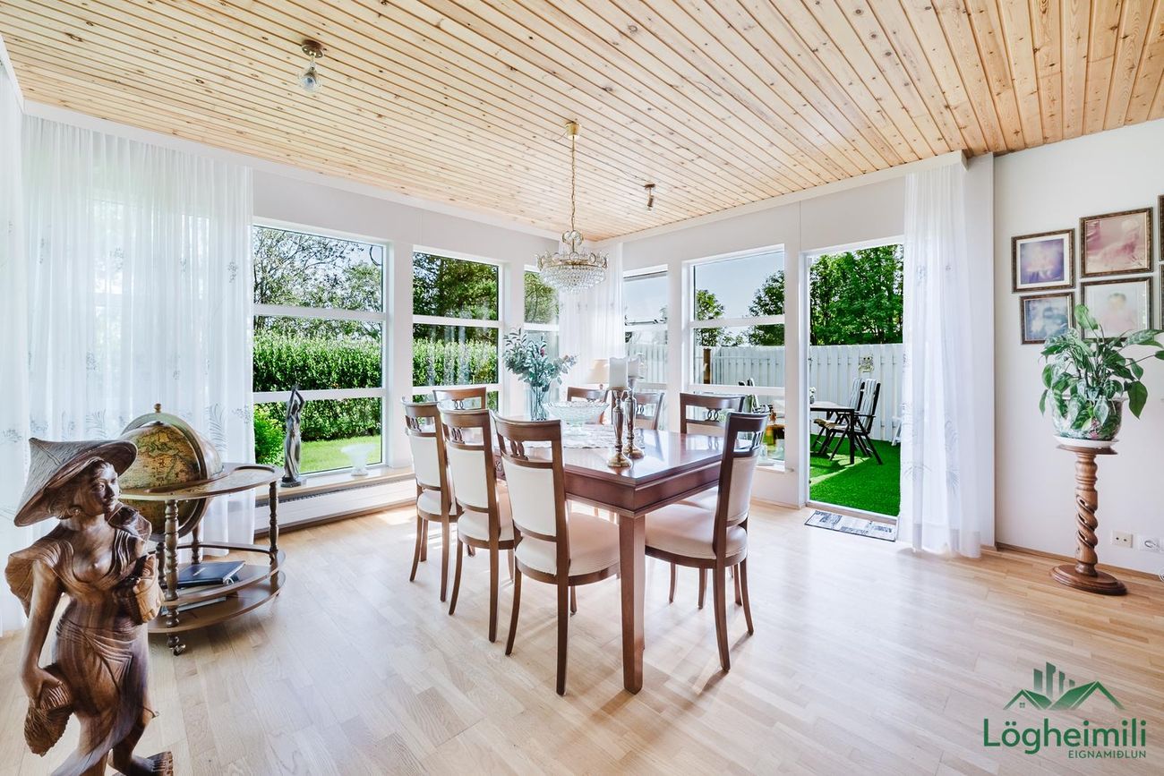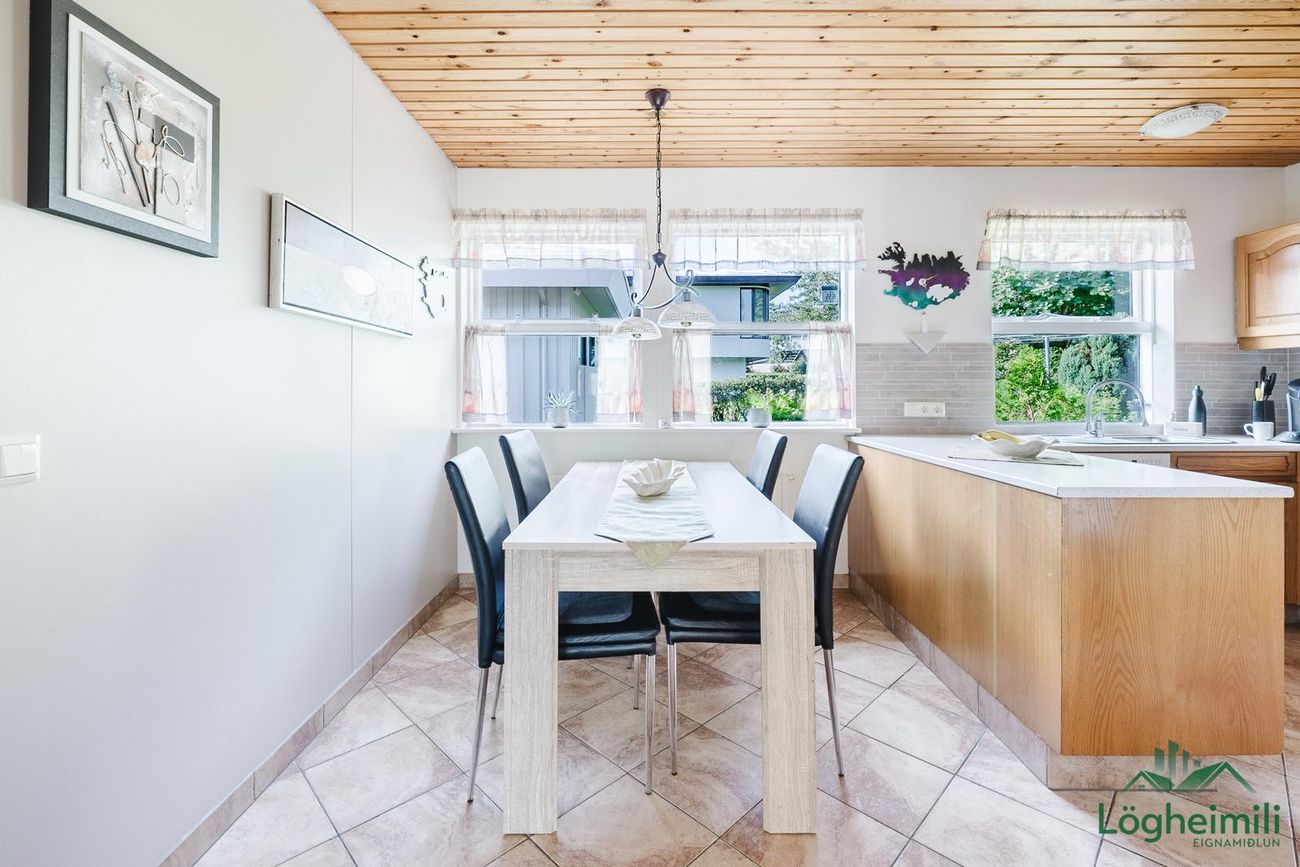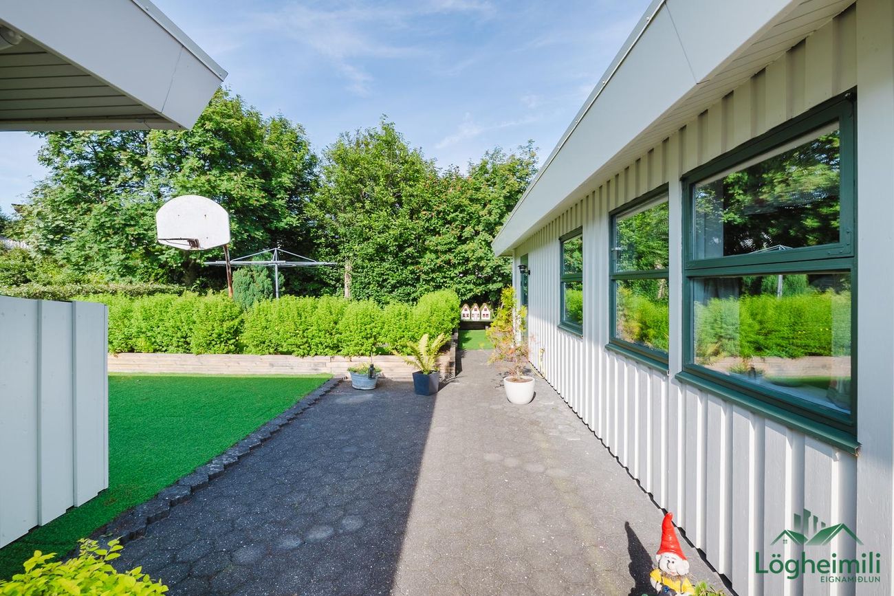Einbýlishús byggt árið 1987 í timbri, 143,7 fm með 43,5 fm bílskúr. Sömu eigendur frá upphafi. Skjólgóður staður í enda botnlanga.