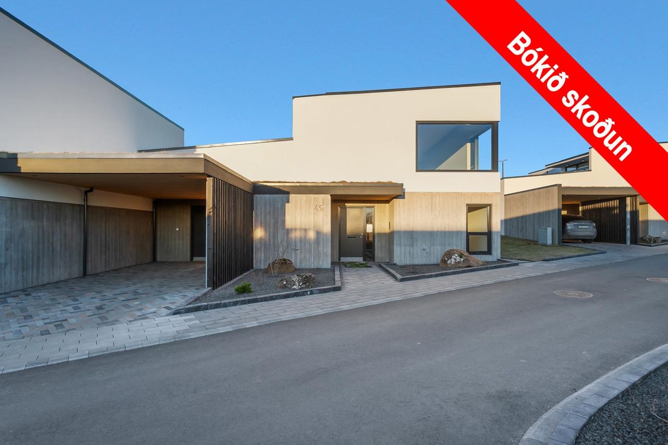 Nýtt raðhús, 157,5-159,7 fm, 4 herbergi (3 svefnherbergi), 2 baðherbergi, gestasnyrting. Afhent við kaupsamning með innréttingum og tækjum skv. skilalýsingu. Free@Home hússtjórnunarkerfi, sjónsteypuveggir að hluta, gólfhiti stýrt af Free@Home kerfinu, verönd og svalir.