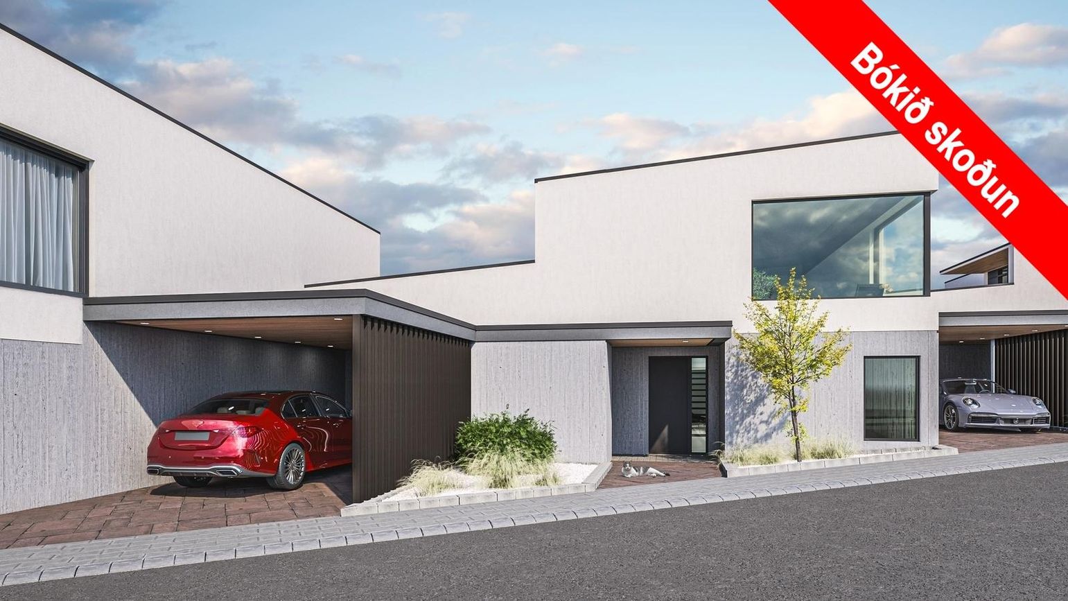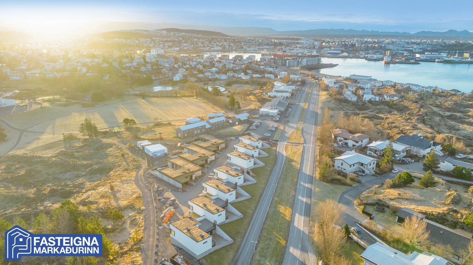 Raðhús á tveimur hæðum með 7 sameiginleg hús. Innréttingar frá Brúnás með melaminfleti og ljósgráum spónaplötum. Sjónsteypuveggir að hluta og stórir svalir.