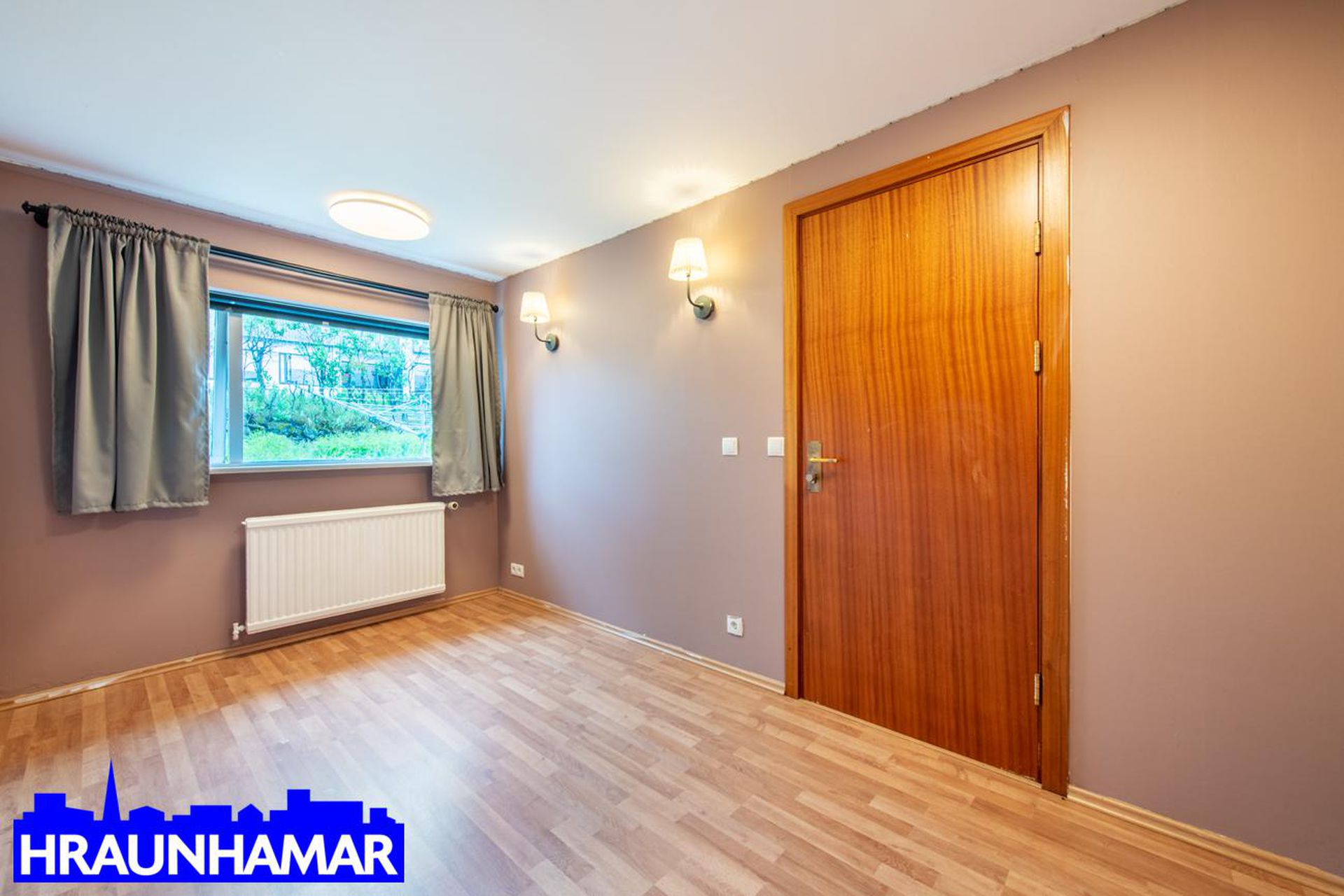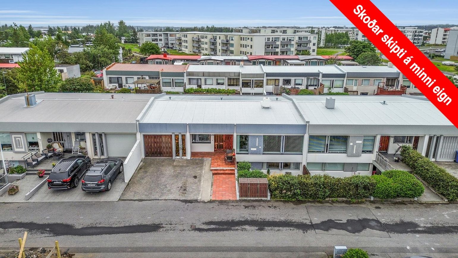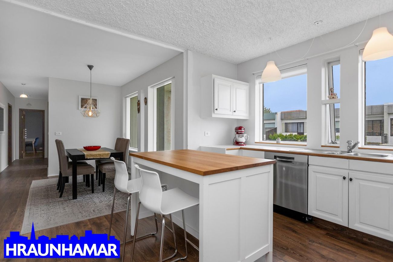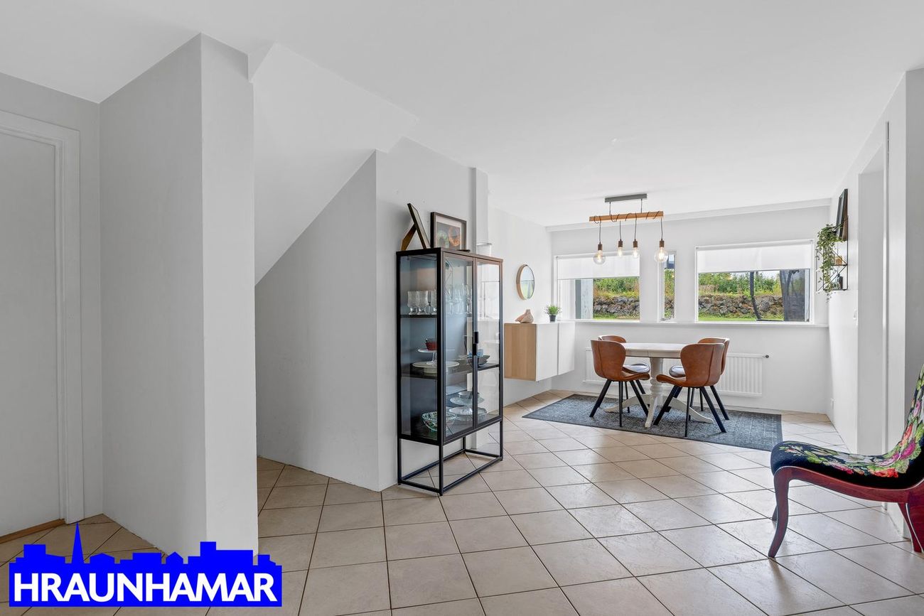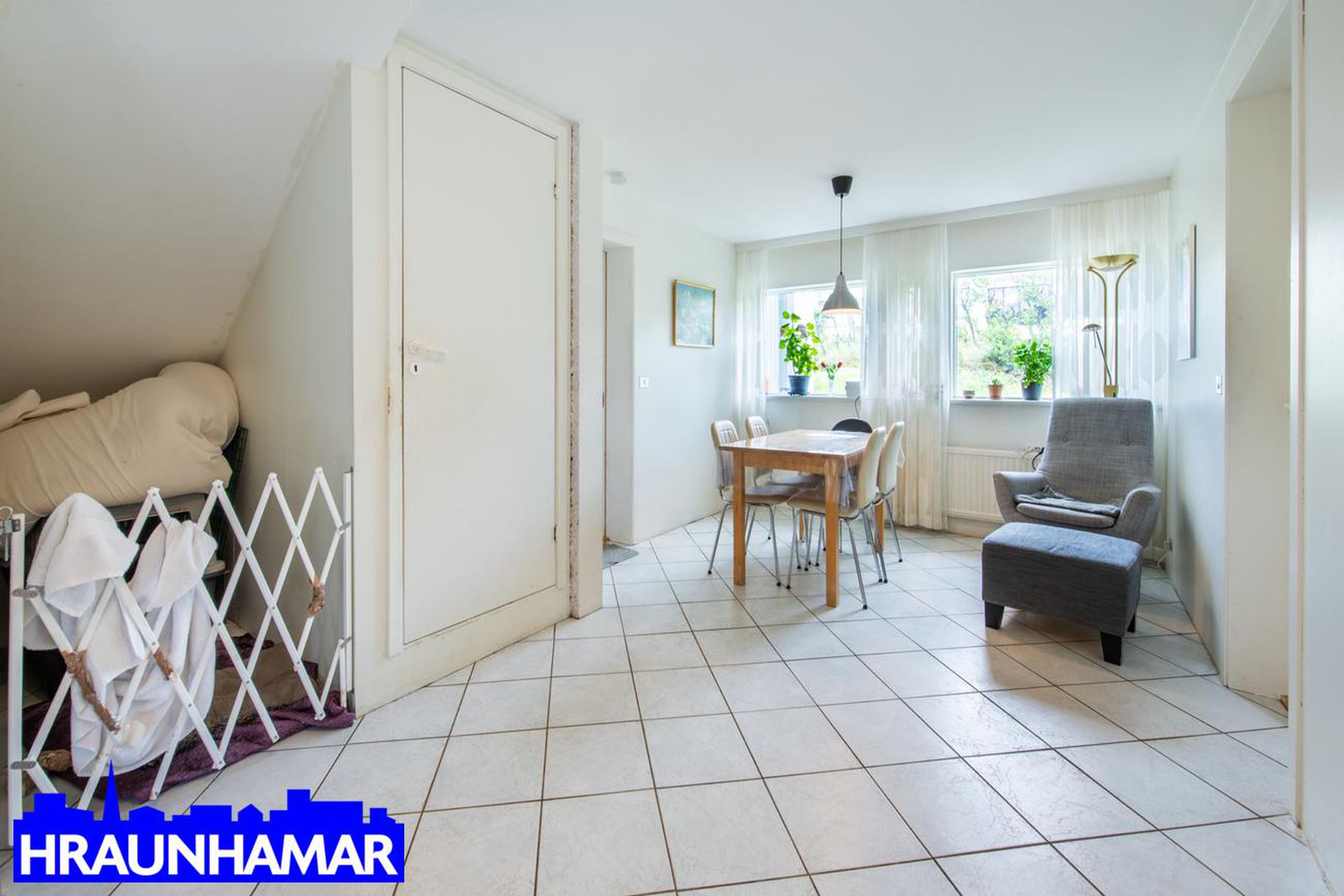 Raðhús skipt í tvær hæðir með 6 herbergjum, 2 baðherbergjum, gestasnyrtingu og 2 stofum. Hægt að auka herbergjafjölda með veggjaskiptingu.