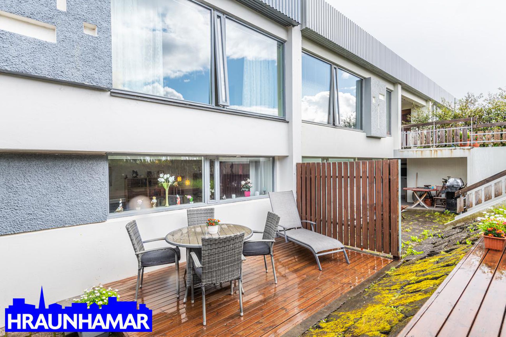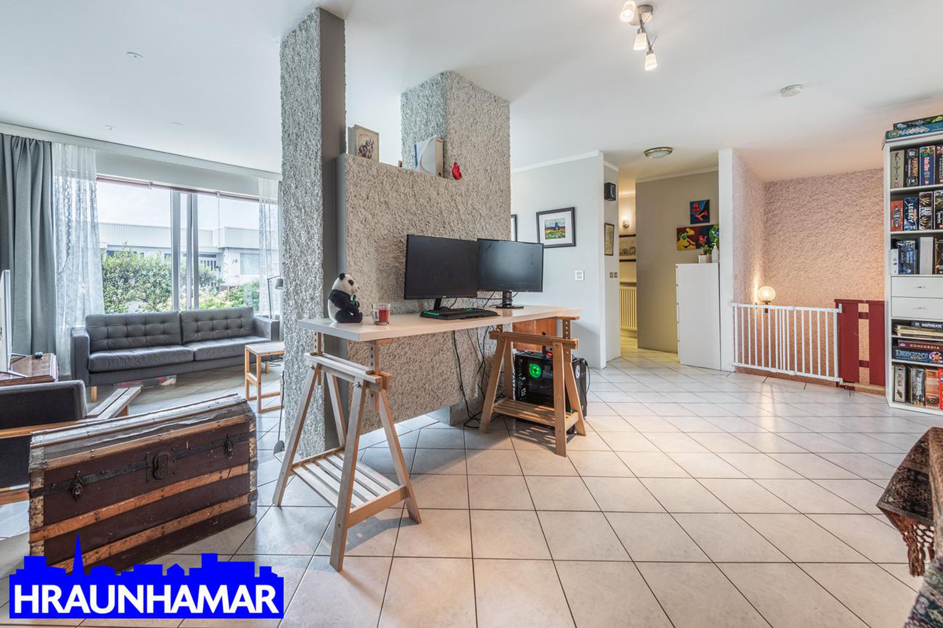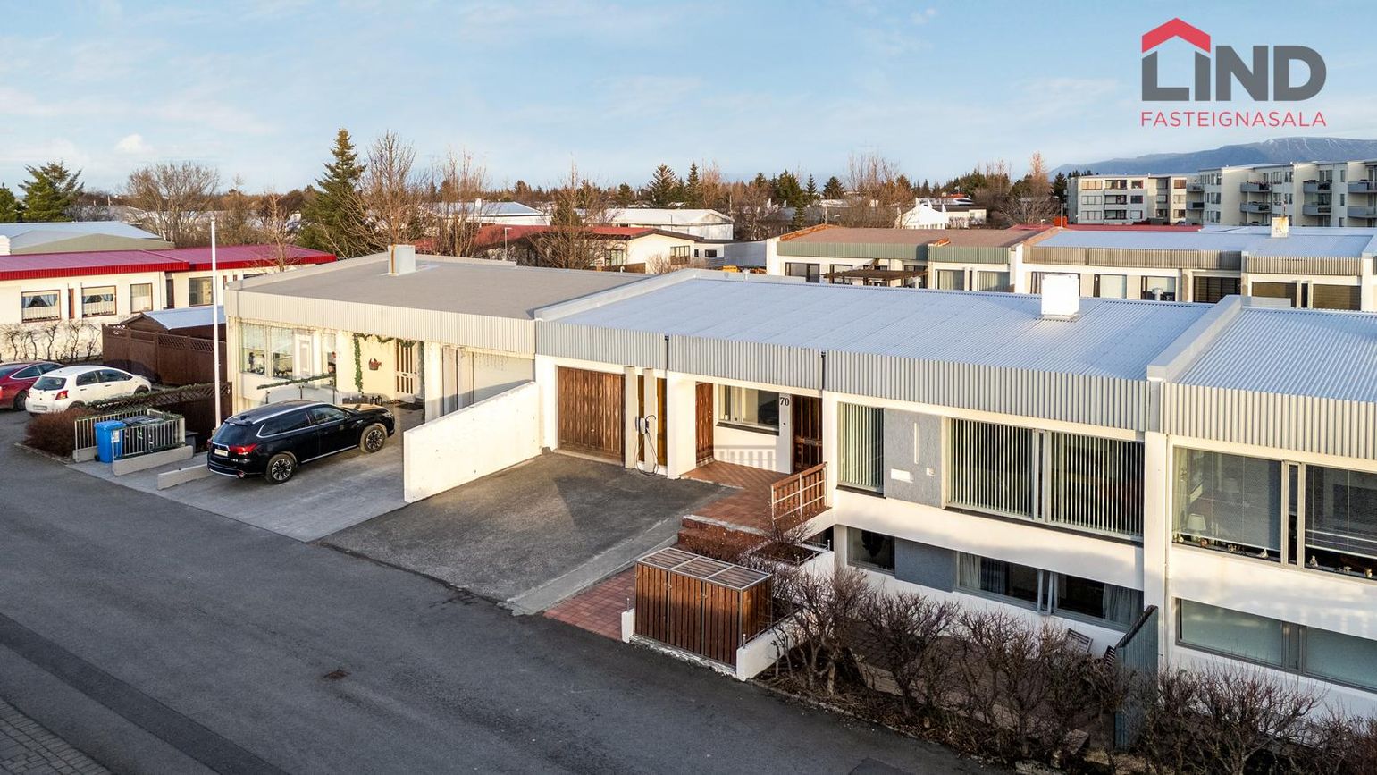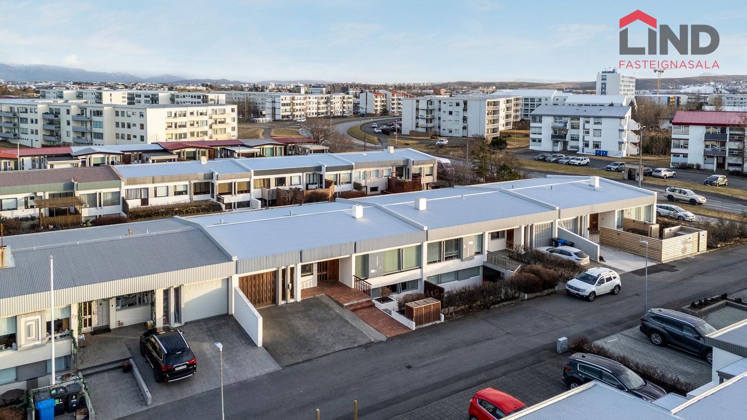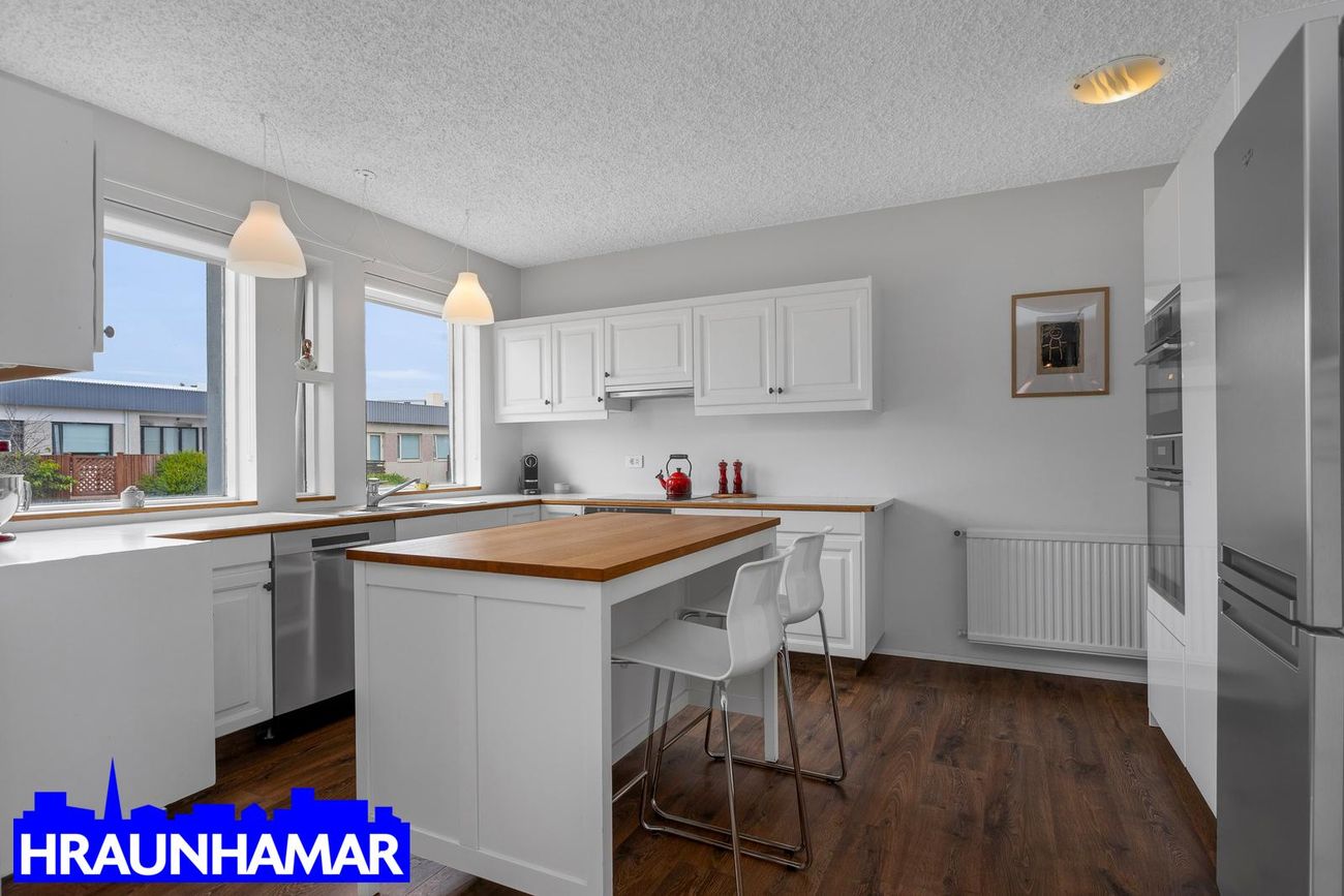 Raðhús skipt í tvær hæðir með 6 herbergjum, 2 baðherbergjum, gestasnyrtingu og 2 stofum. Hægt að auka herbergjafjölda með veggjaskiptingu.