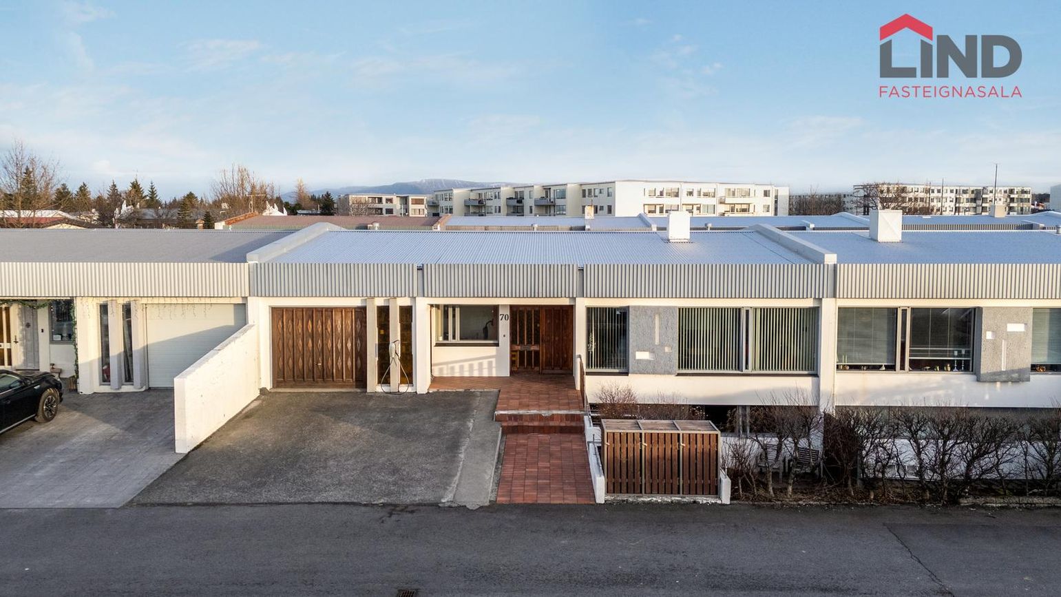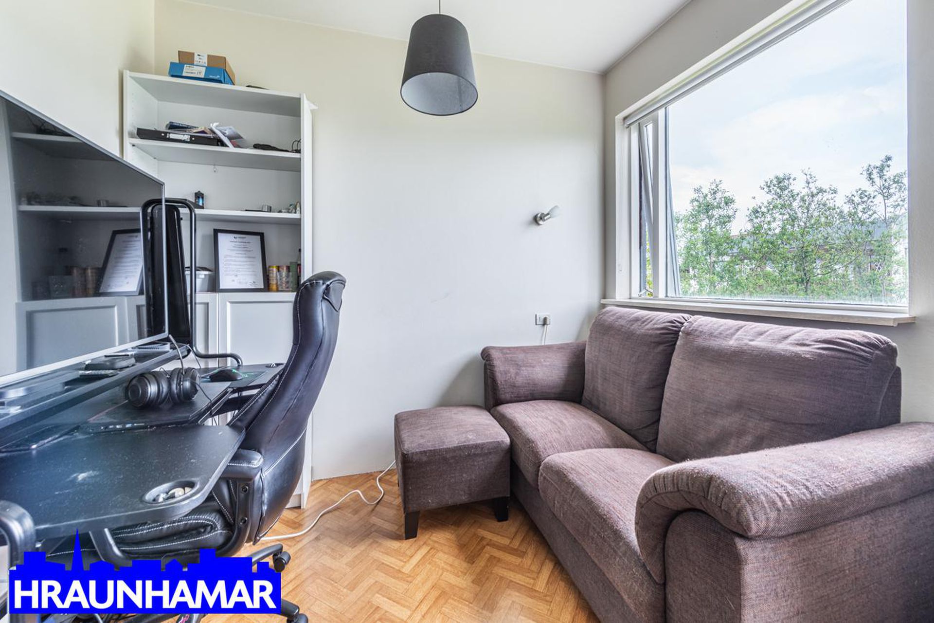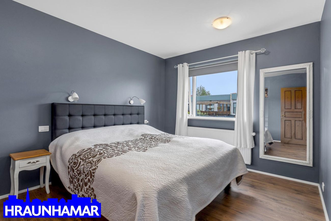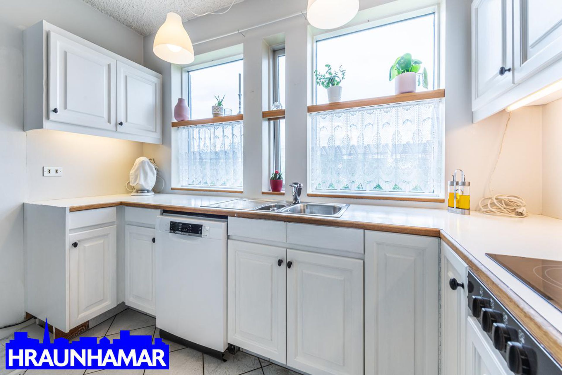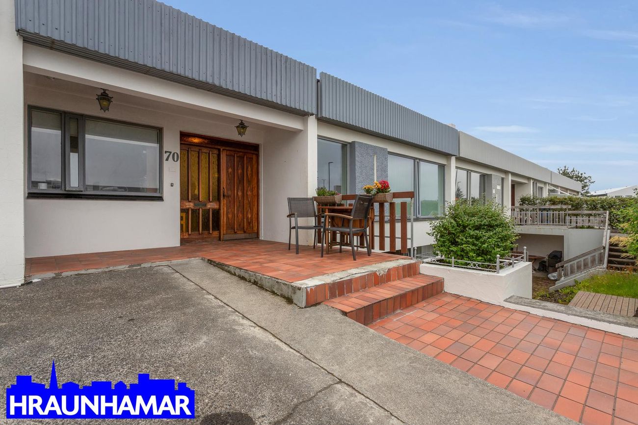 Raðhús skipt í tvær hæðir með 6 herbergjum, 2 baðherbergjum, gestasnyrtingu og 2 stofum. Hægt að auka herbergjafjölda með veggjaskiptingu.