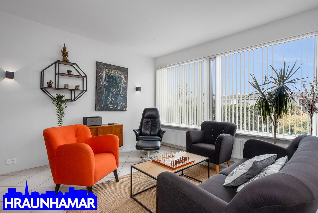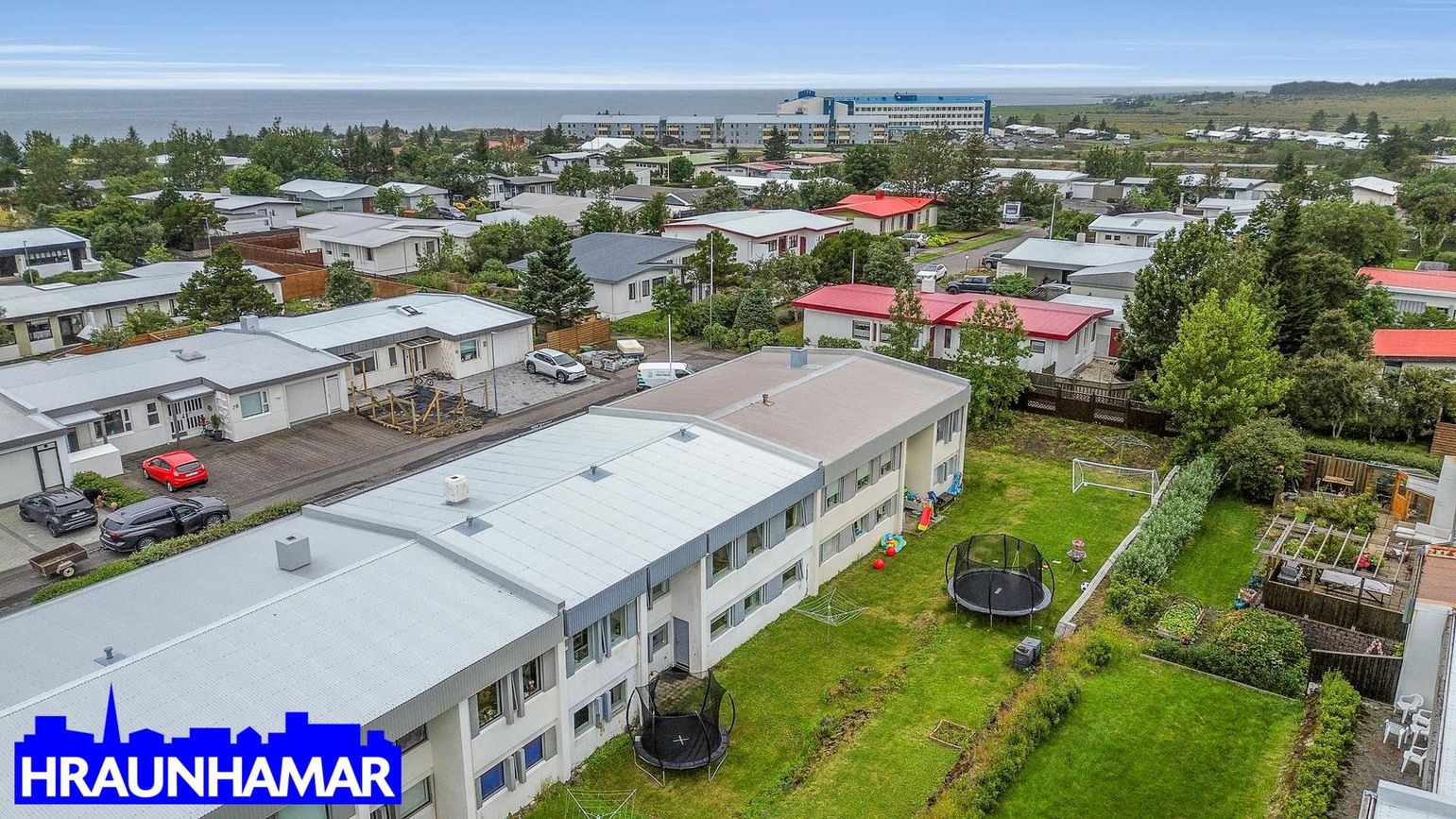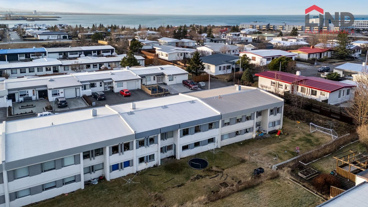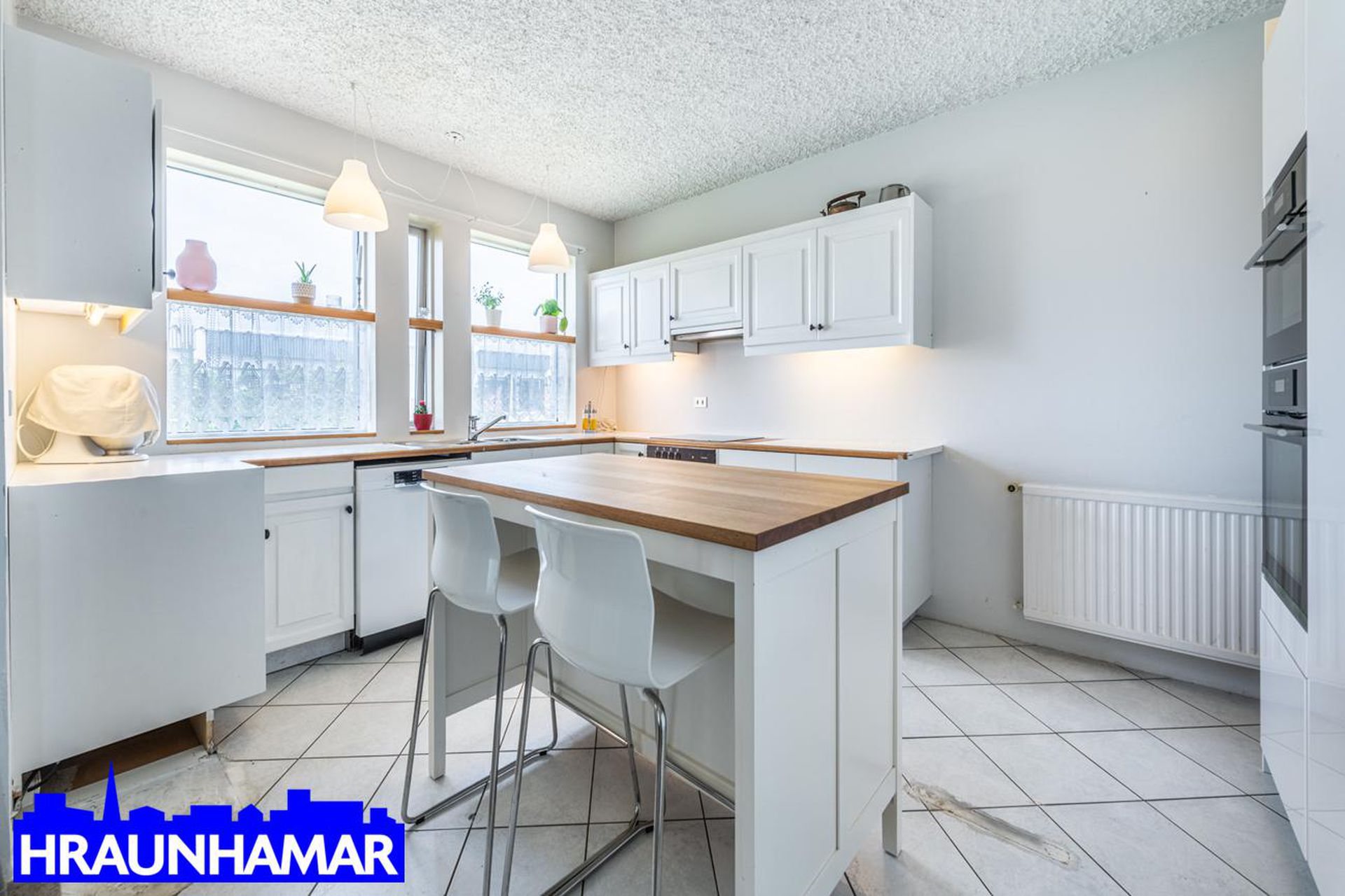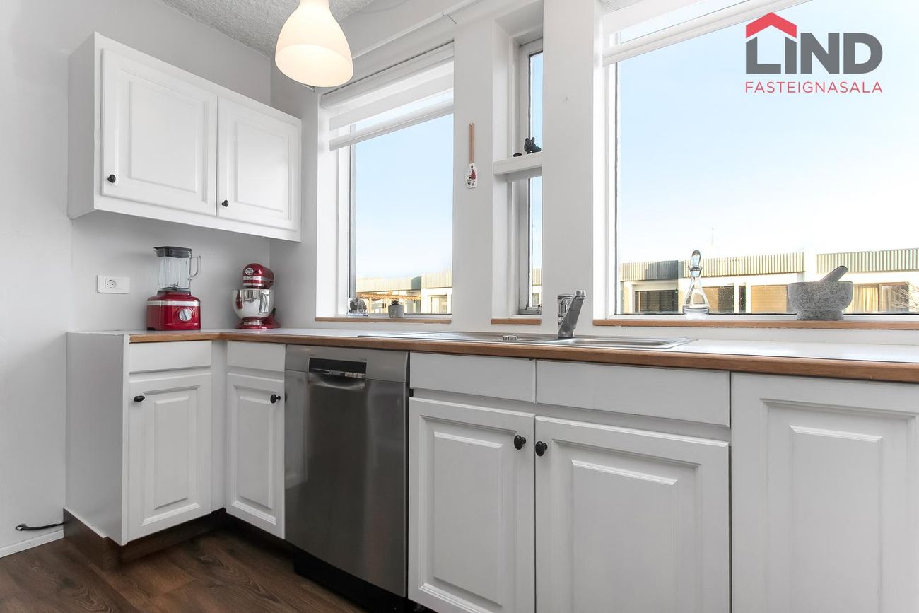 Raðhús skipt í tvær hæðir með 6 herbergjum, 2 baðherbergjum, gestasnyrtingu og 2 stofum. Hægt að auka herbergjafjölda með veggjaskiptingu.