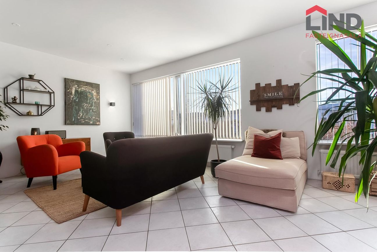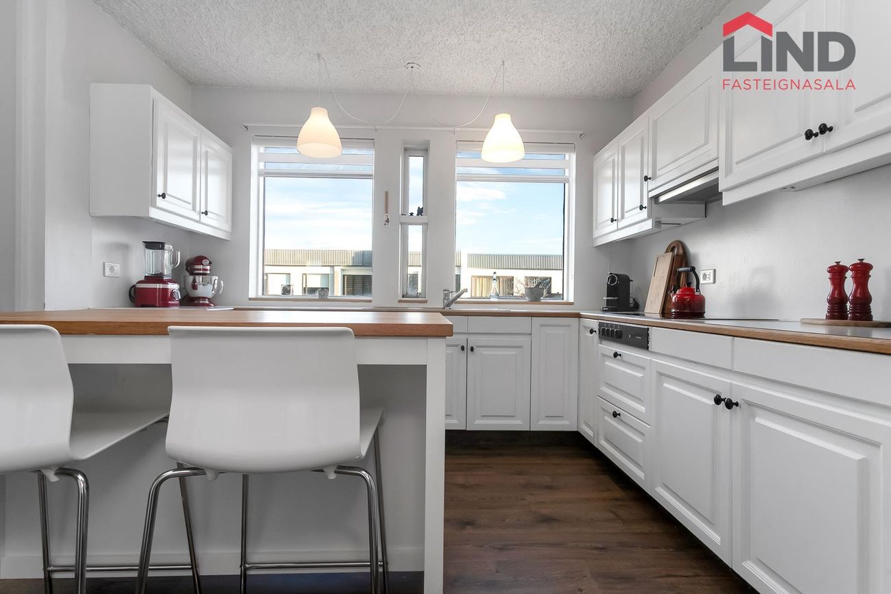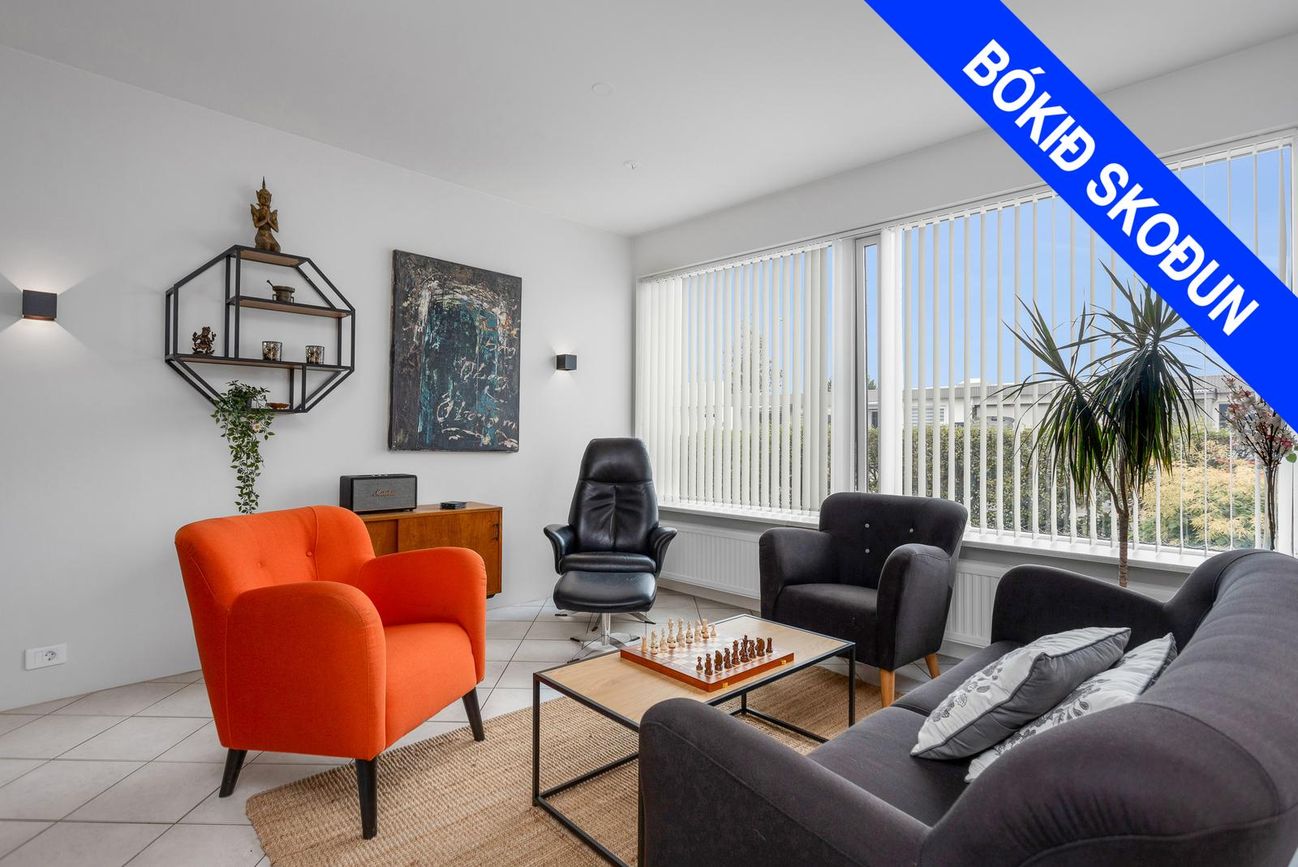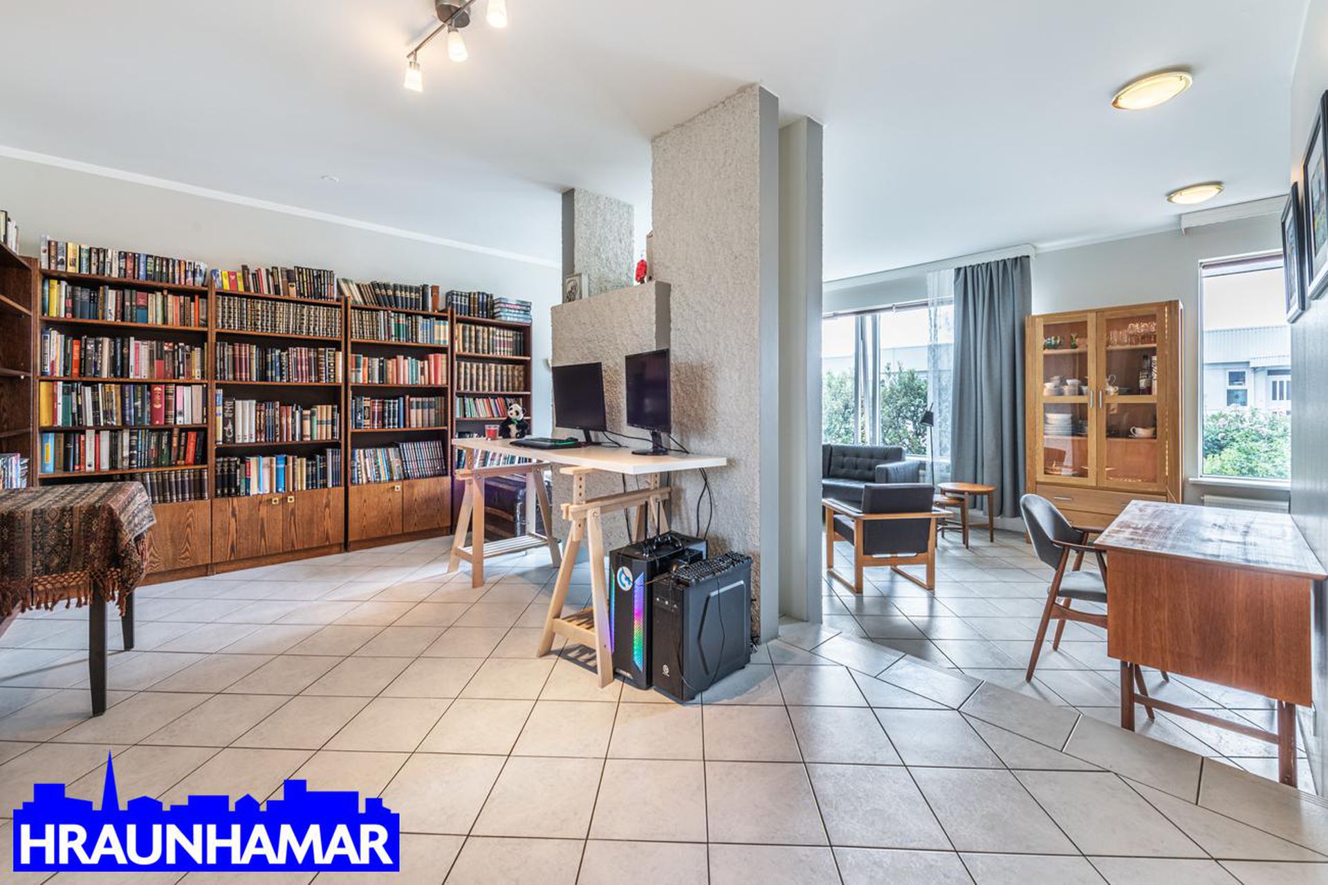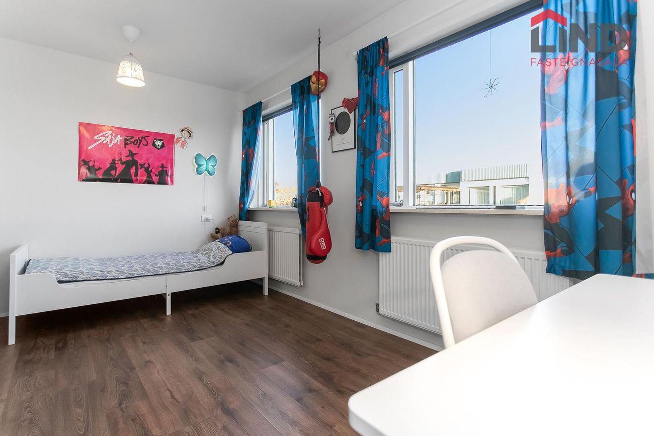 Raðhús skipt í tvær hæðir með 6 herbergjum, 2 baðherbergjum, gestasnyrtingu og 2 stofum. Hægt að auka herbergjafjölda með veggjaskiptingu.