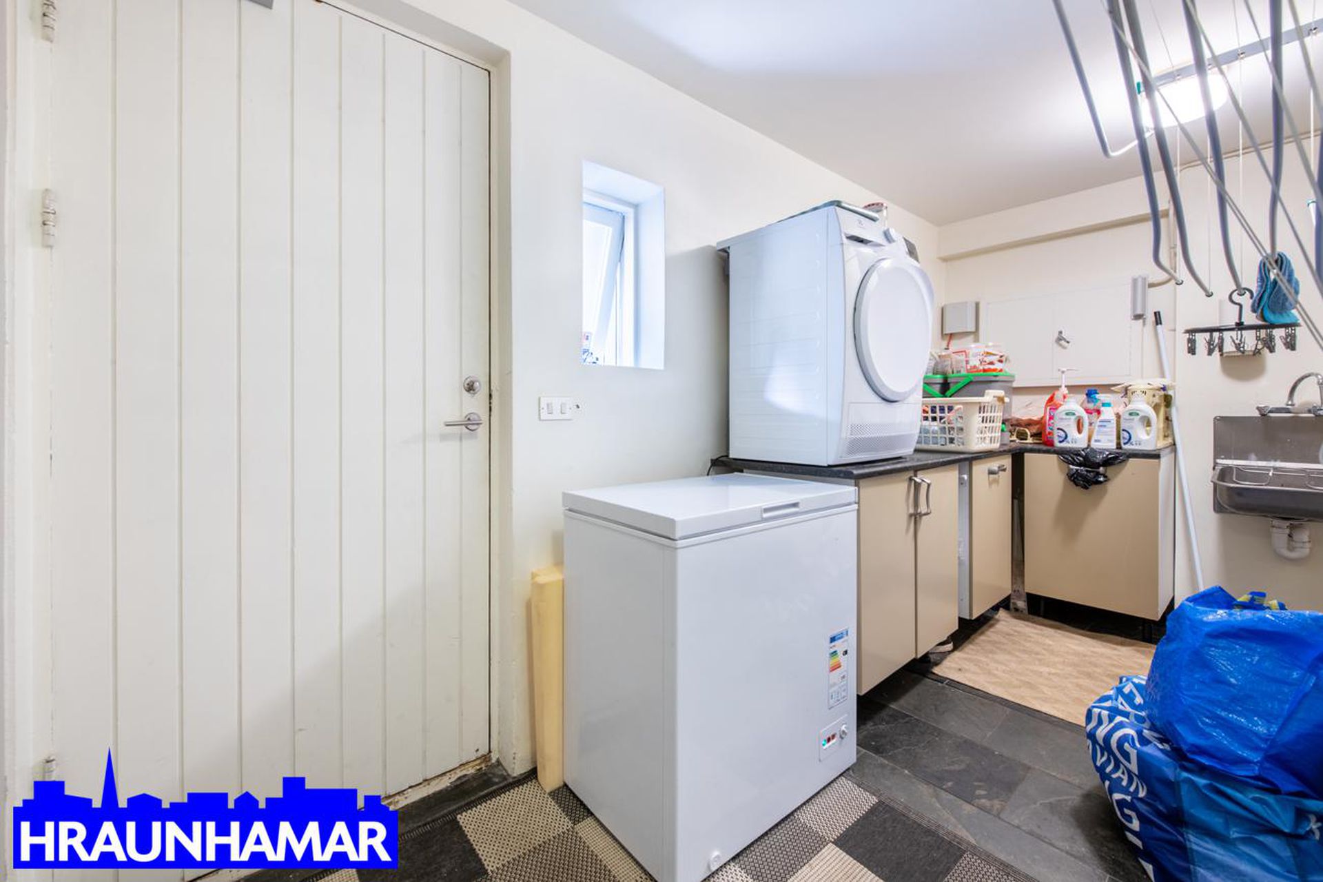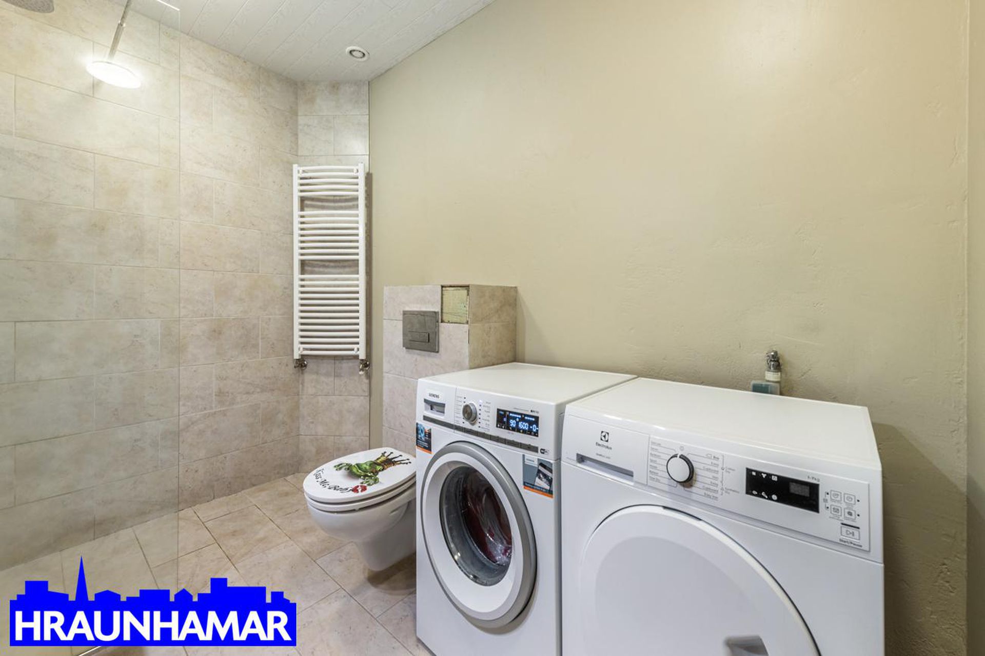 Þvottaaðstaða á bæði efri og neðri hæð.