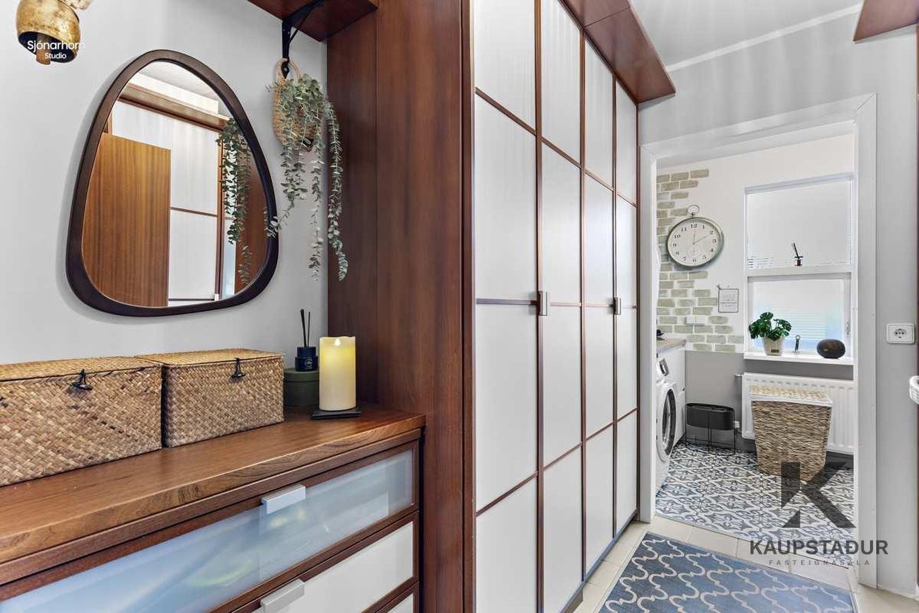 Anddyri, með flísum á gólfi. Frá anddyri er innangengt í geymslu (forstofu) og þaðan inn í þvottahús.