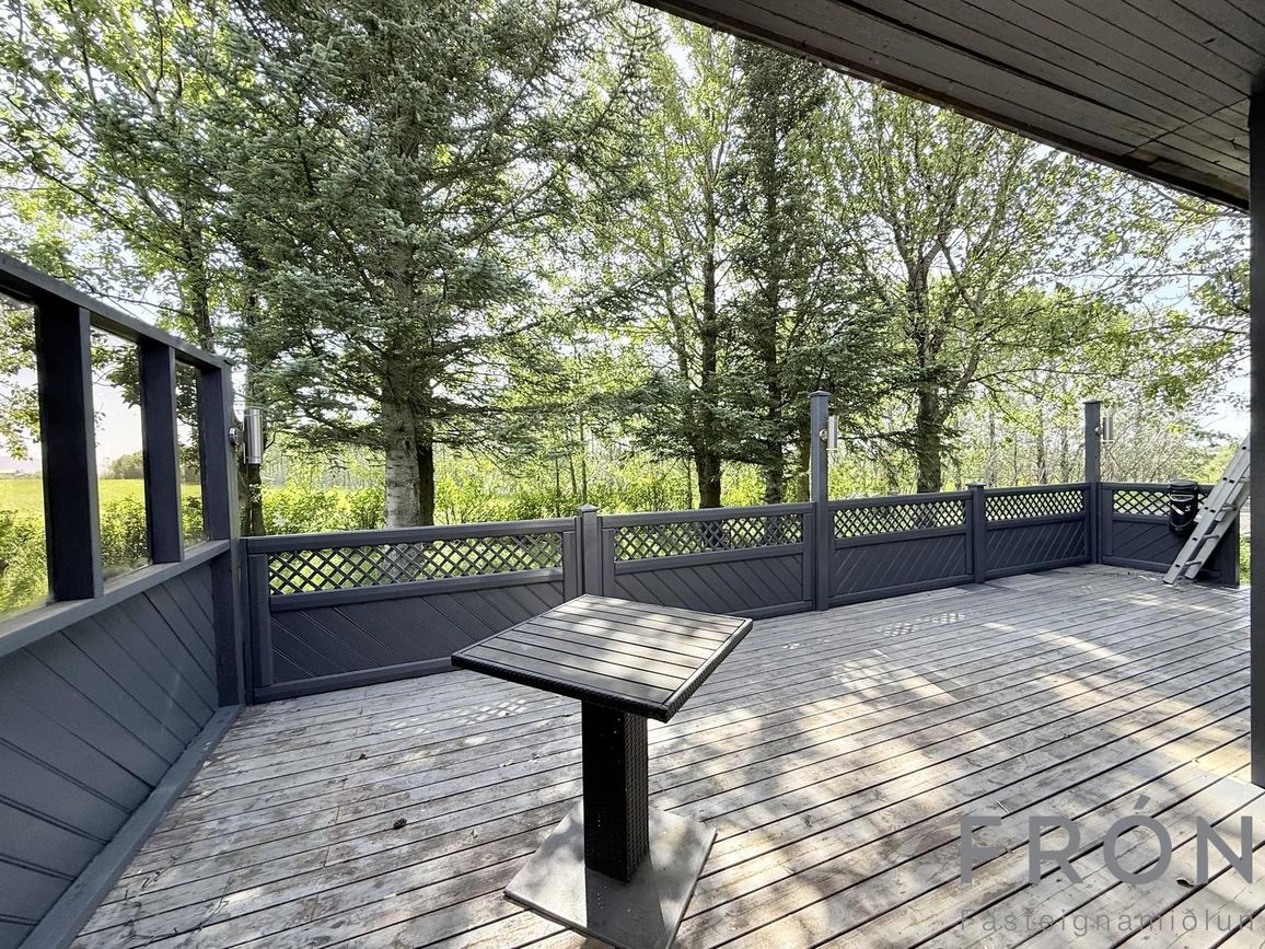 Rúmgóð verönd með skjólgóðu umhverfi.