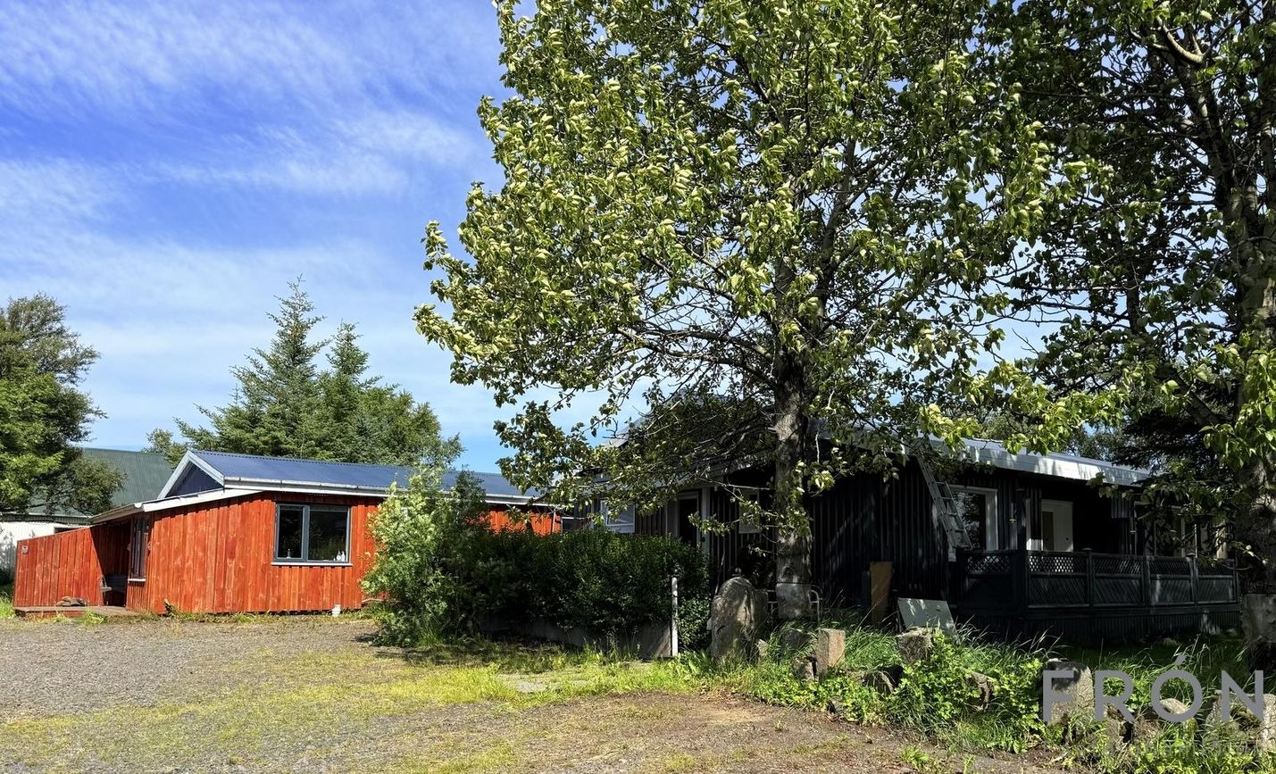 Steinsteypt íbúðarhús og timburhús með rúmgóðum herbergjum, viðhaldið ástand, landsbyggð.