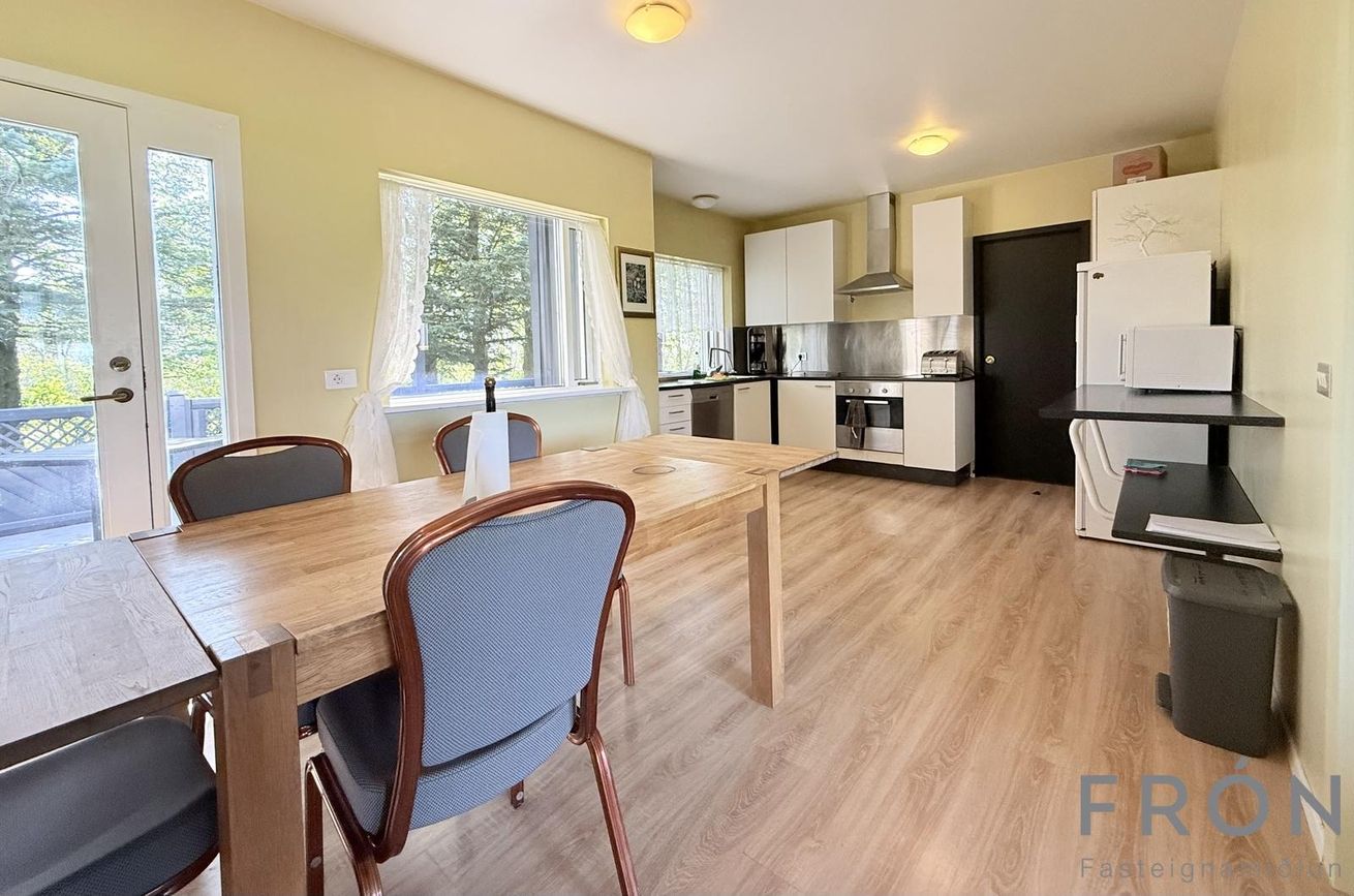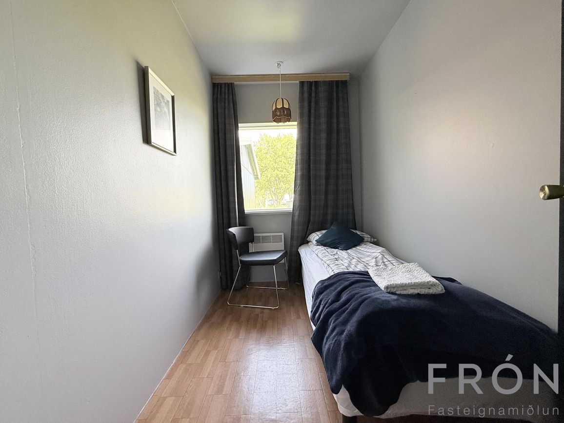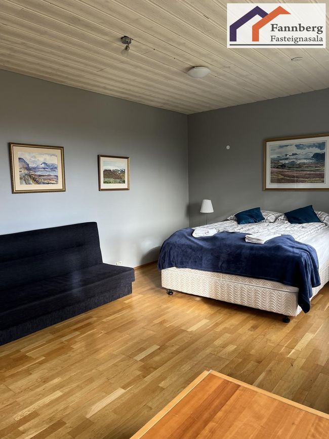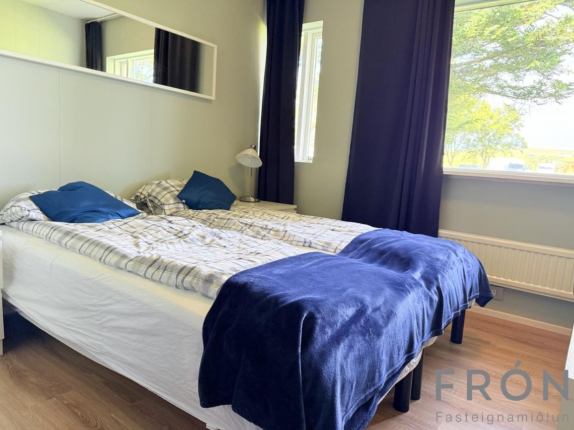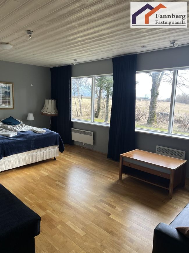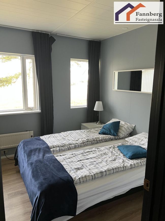 Sex svefnherbergi í aðalhúsi, rúmgóð svefnherbergi í minnihlutaíbúð.
