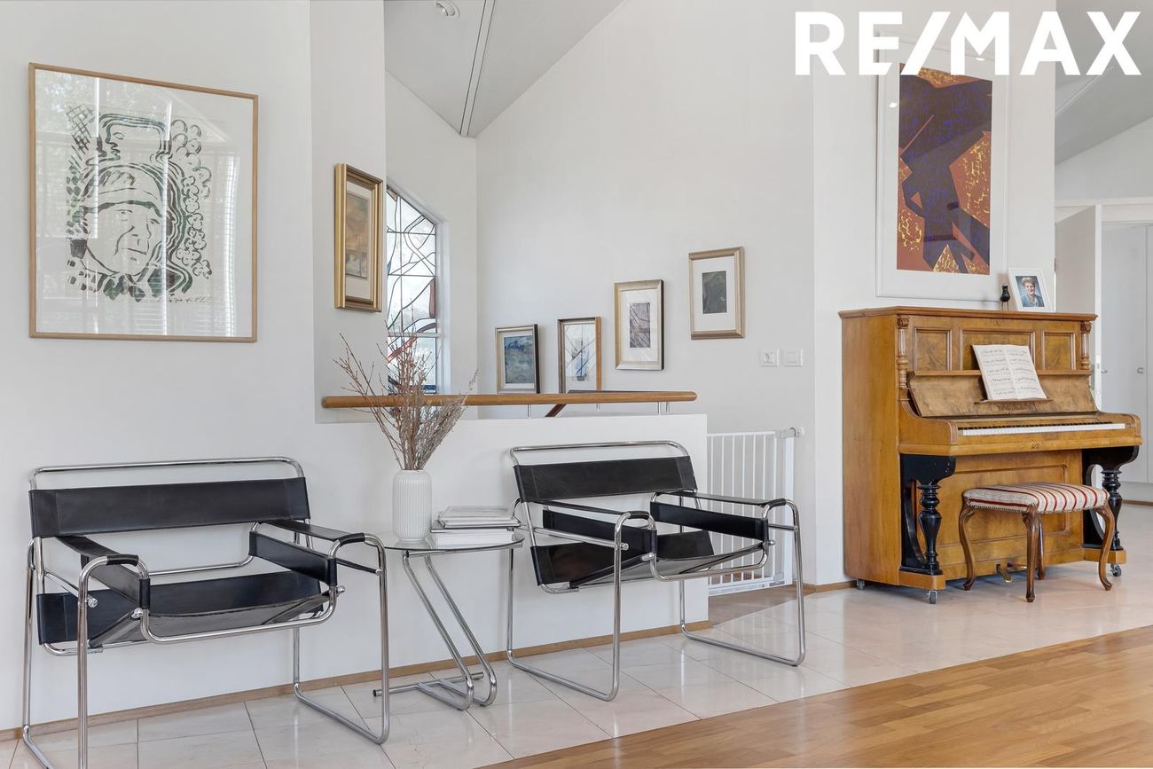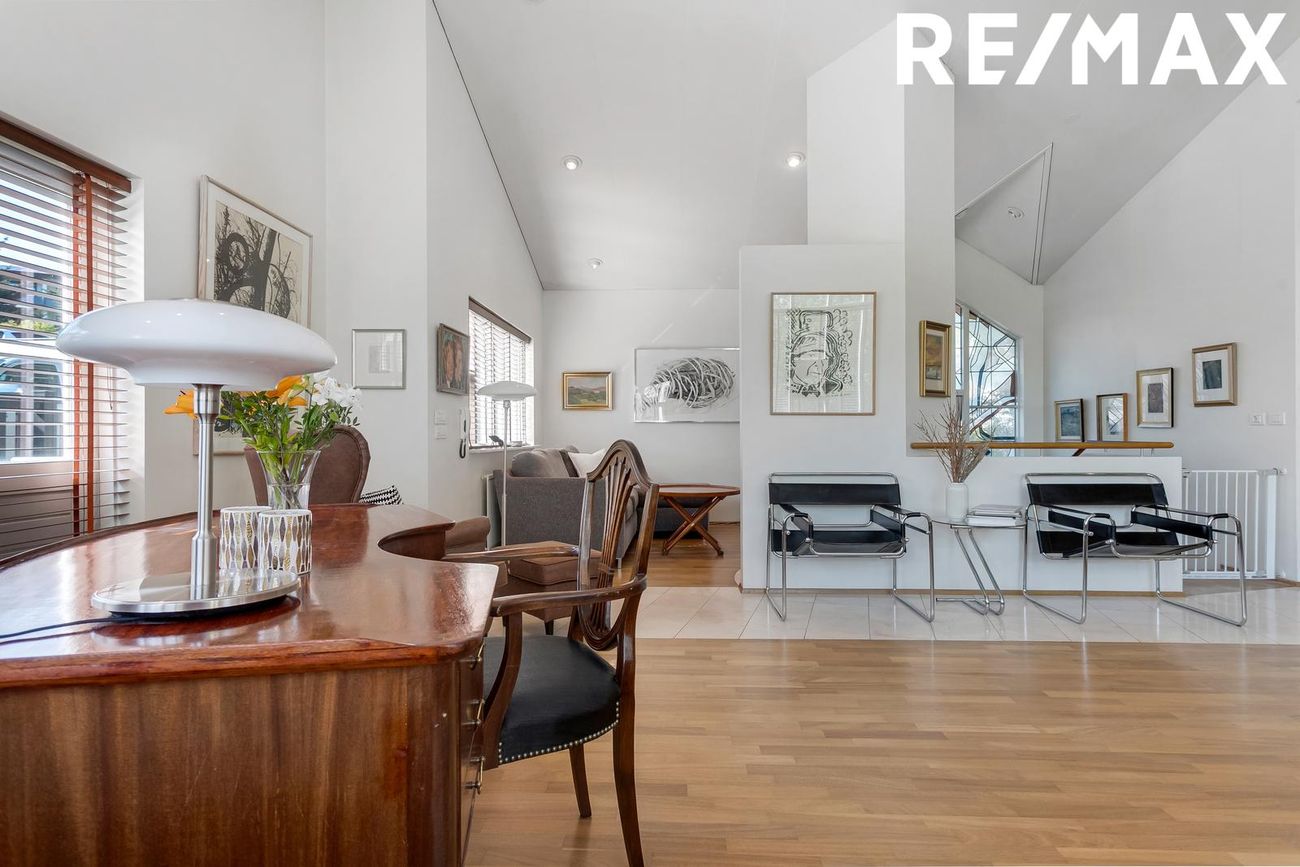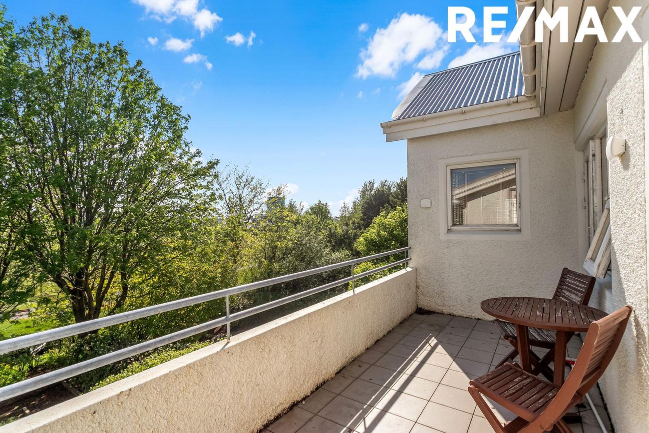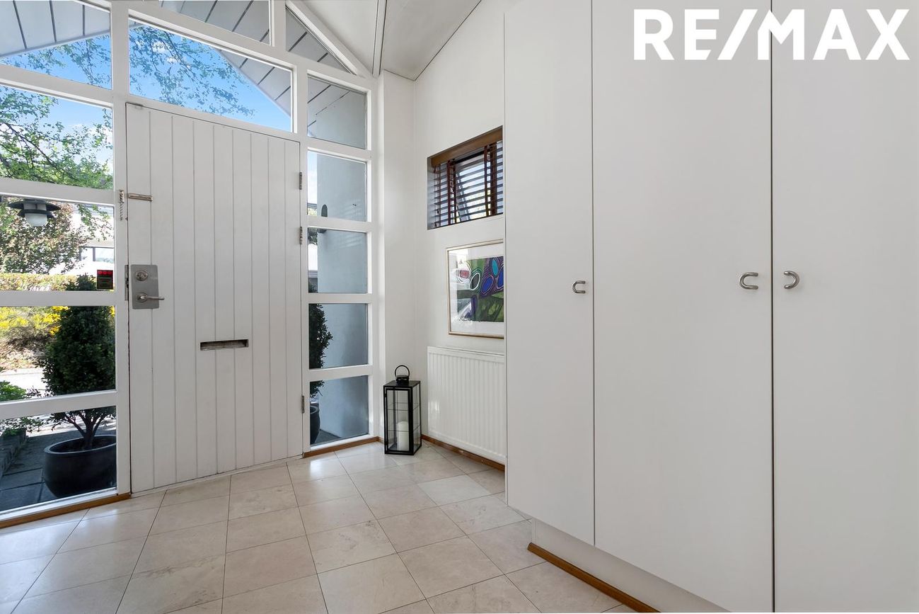 Nánari lýsing Efri hæð: Við inngang er komið inn í anddyri og gang. Á hægri hönd er herbergi, merkt á teikningu sem húsbóndaherbergi. Í forstofu er gestasnyrting og í framhaldi af henni stórt og mikið eldhús með borðstofuborði. Stofan er rúmgóð og í hluta hennar er sjónvarpsrými. Útgengi er á s valir í suður frá borðstofu og á aðrar svalir sem eru bæði í suður og vestur. Bílskúr. Íbúðinni tilheyrir bílskúr sem er áfastur húsinu. Bílskúrnum er skipt í tvö herbergi, ytra og innra. Þar er heitt. og kalt vatn, sjálfvirk opnun og bílahleðslustöð. Gluggar í suður og austur og hurð út á svalir í austur. Auðvelt að breyta aftur í bílskúr.
