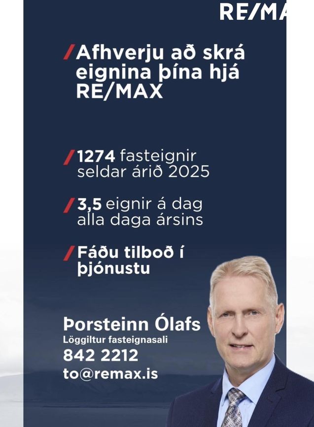 Vegna mikillar eftirspurnar vantar okkur allar tegundir eigna á skrá. Vinsamlega hafið samband við Þorstein Ólafs löggiltan fasteignasala í síma 842-2212 eða með pósti á to@remax.is.