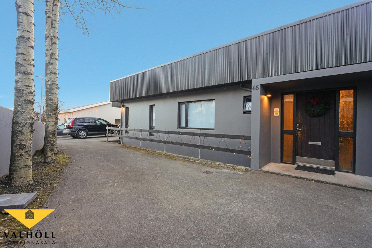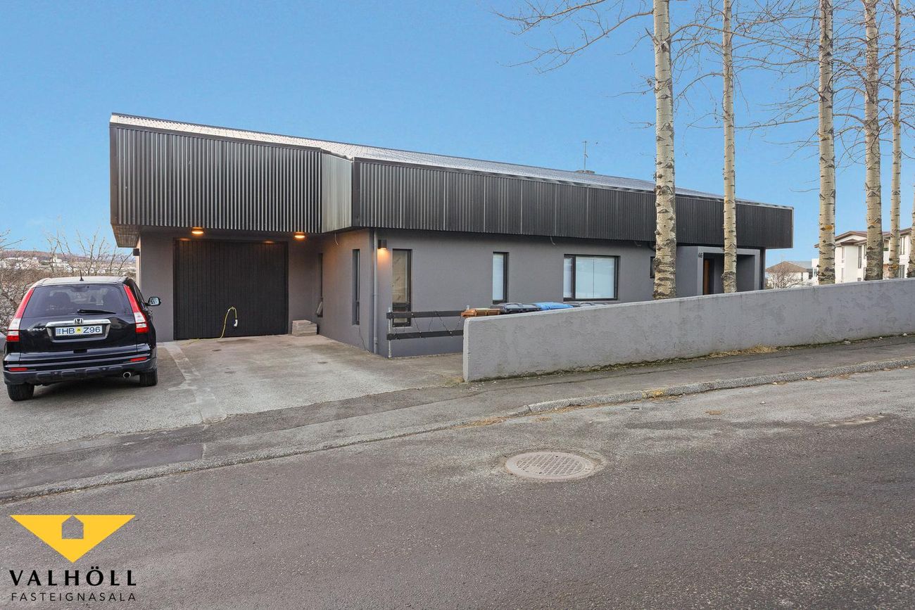 Bílskúr:Bílskúrinn er rúmgóður og austan megin við húsið. Gluggar eru við enda bílskúrs. Rafdrifinn hurðaopnari. Epoxi á gólfi. Heitt og kalt vatn. Rafhleðslustöð getur fylgt með í kaupunum (óuppsett).