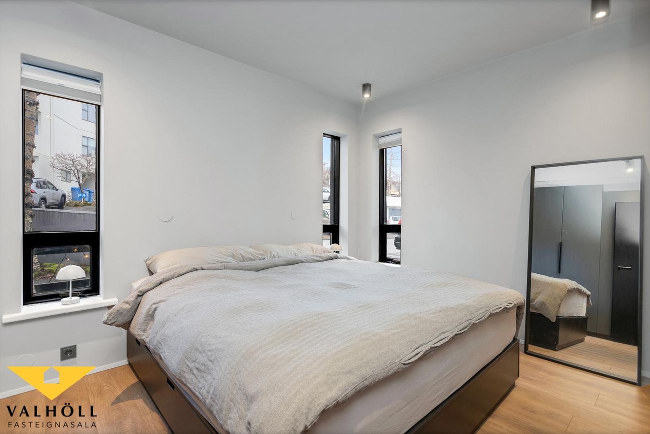 Á svefnherbergisgangi eru þrjú rúmgóð svefnherbergi (tvö mjög rúmgóð) auk baðherbergis.