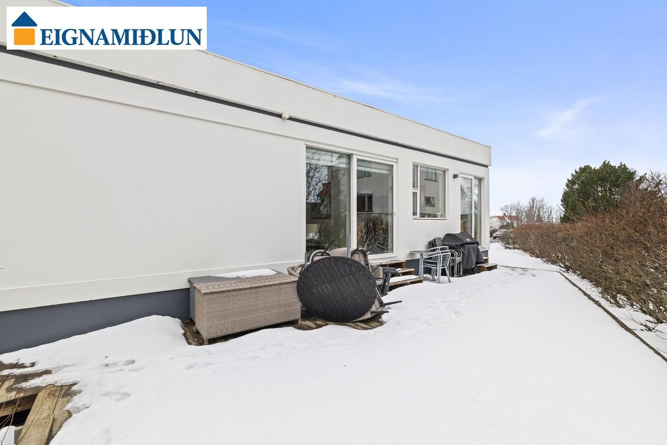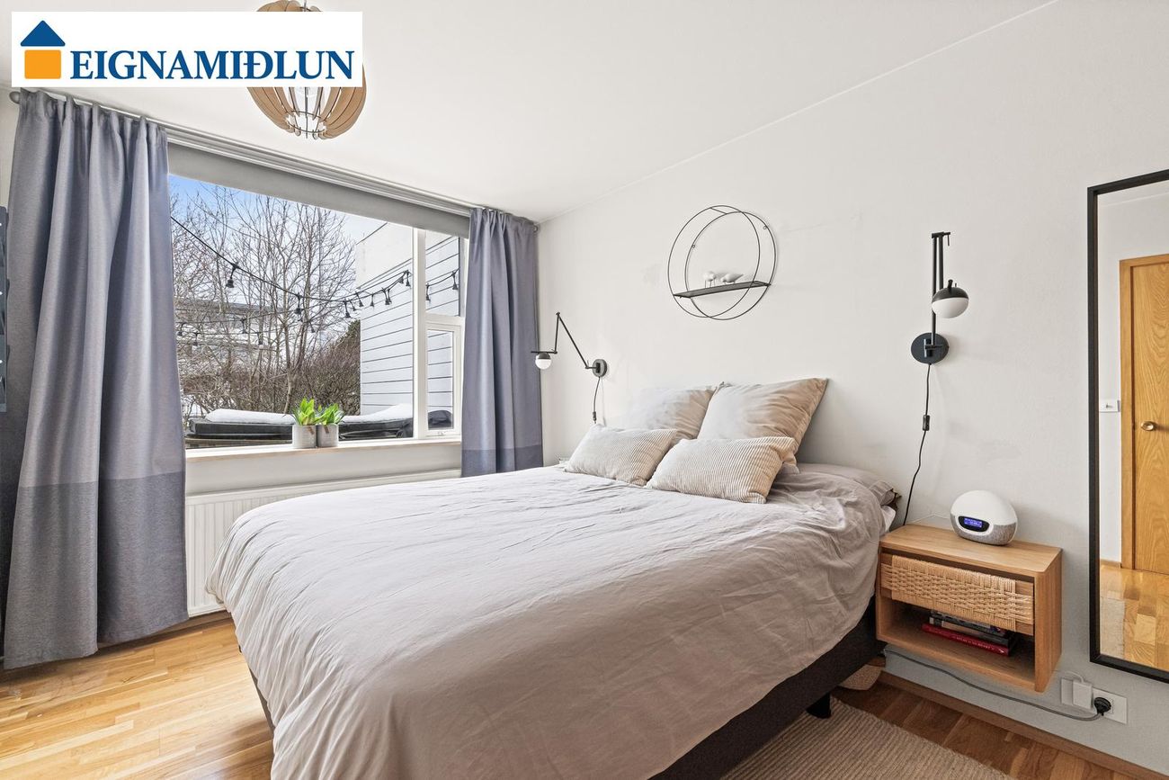 Vel skipulagt parhús á einni hæð á gróinni lóð innst í botnlanga í Vogahverfinu. Húsið er teiknað af Kjartani Sveinssyni. Góð aðkoma er að húsinu. Bílskúr með óskráðu millilofti. Sólskáli og heitur pottur. Frábært og fjölskylduvænt hús á eftirsóttum stað. *** Sækja söluyfirlit ***Bókið skoðun. Allar upplýsingar gefur Kári Sighvatsson löggiltur fasteignasali, sími