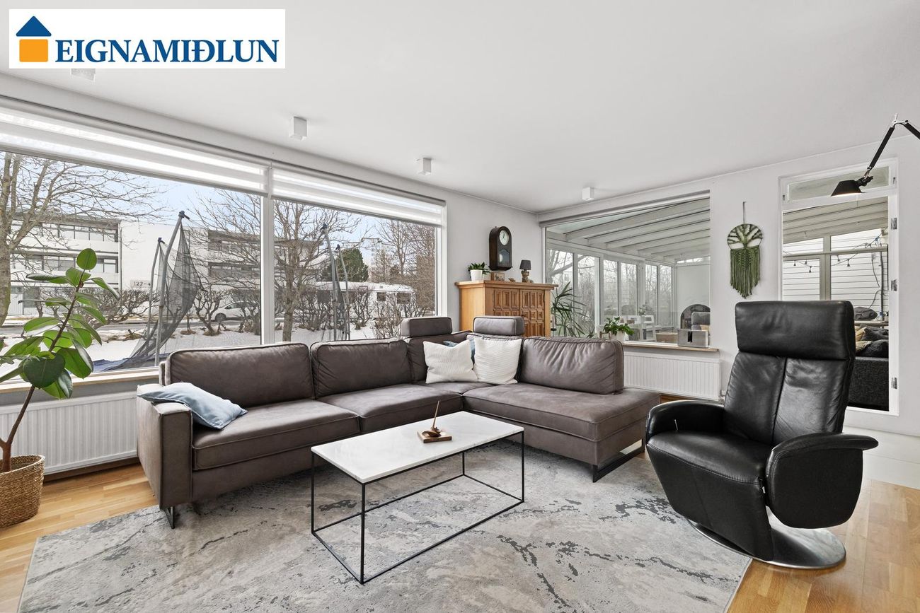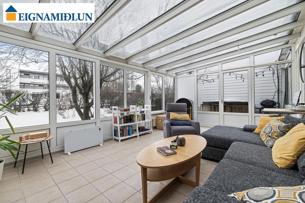 Vel skipulagt parhús á einni hæð á gróinni lóð móti suðri innst í botnlanga í Vogahverfinu. Húsið er teiknað af Kjartani Sveinssyni. Góð aðkoma er að húsinu. Bílskúr með óskráðu millilofti. Sólskáli og heitur pottur. Frábært og fjölskylduvænt hús á eftirsóttum stað. *** Sækja söluyfirlit ***Bókið skoðun. Allar upplýsingar gefur Kári Sighvatsson löggiltur fasteignasali, sími