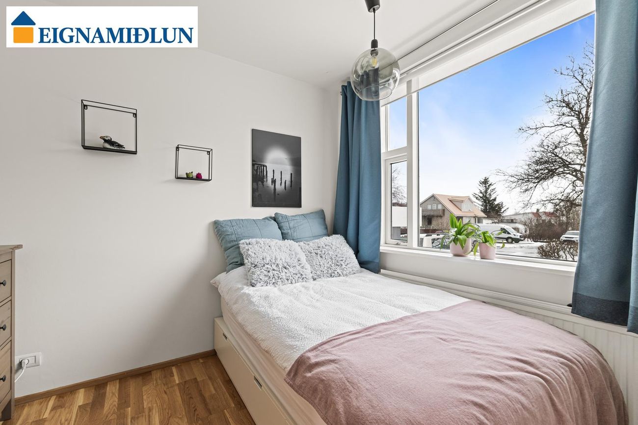 Herbergi 1 er stórt með tveimur gluggum, var áður tvö minni herbergi og hæglega væri hægt að skipta því aftur upp í tvö minni. Parket á gólfi.