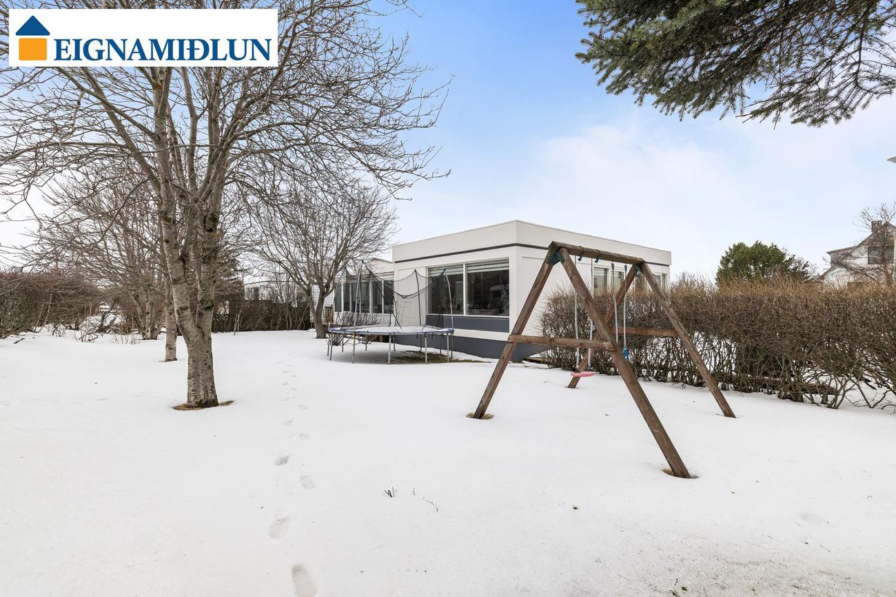 Lóðin er 588,3 fm og gróin með tveimur timburveröndum, góðri grasflöt og nokkrum háum trjám. Góð staðsetning innst í botnlanga. Kyrrlátt og rólegt umhverfi.