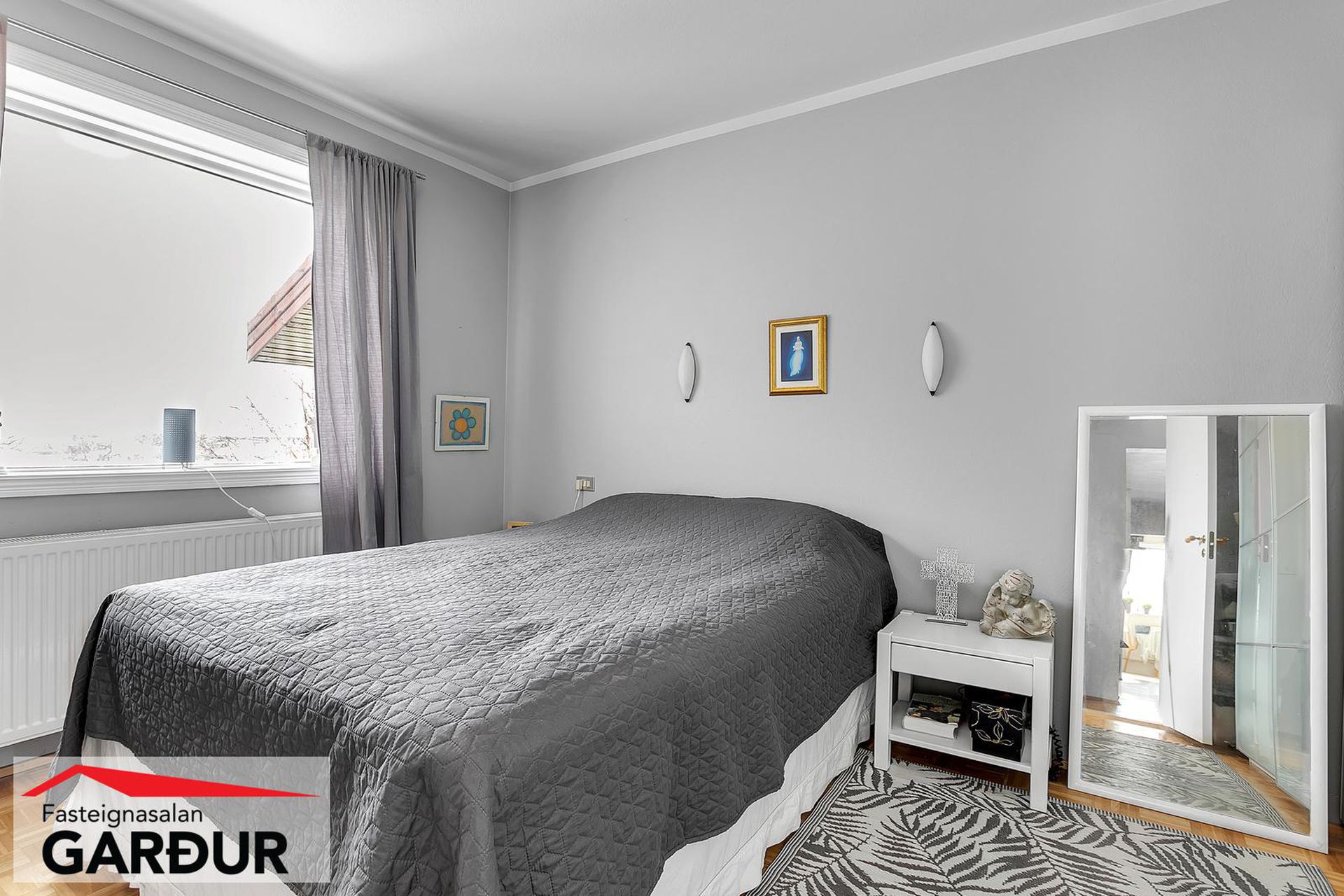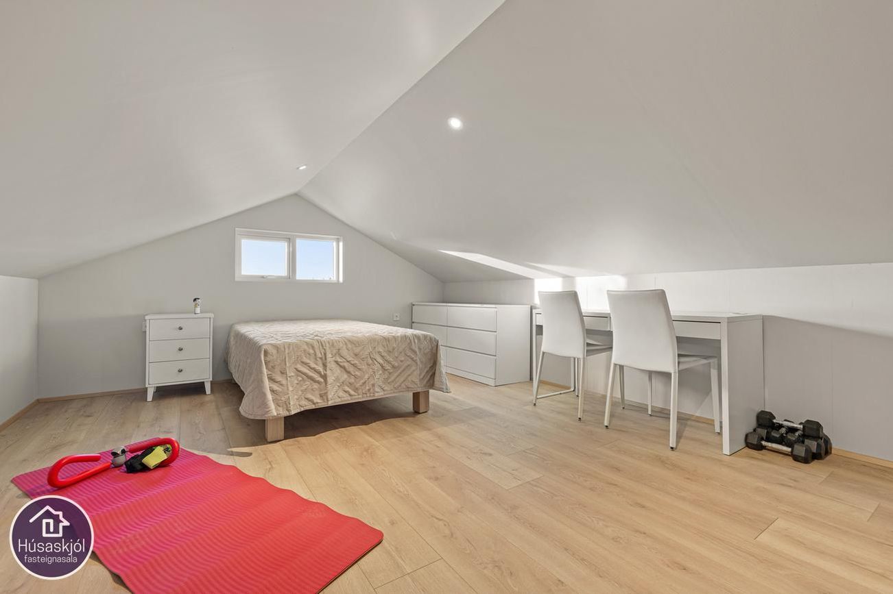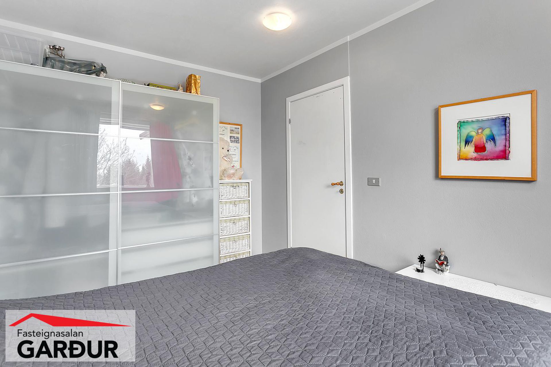 Á hæðinni eru 2 svefnherbergi, hjónaherbergi og barnaherbergi.