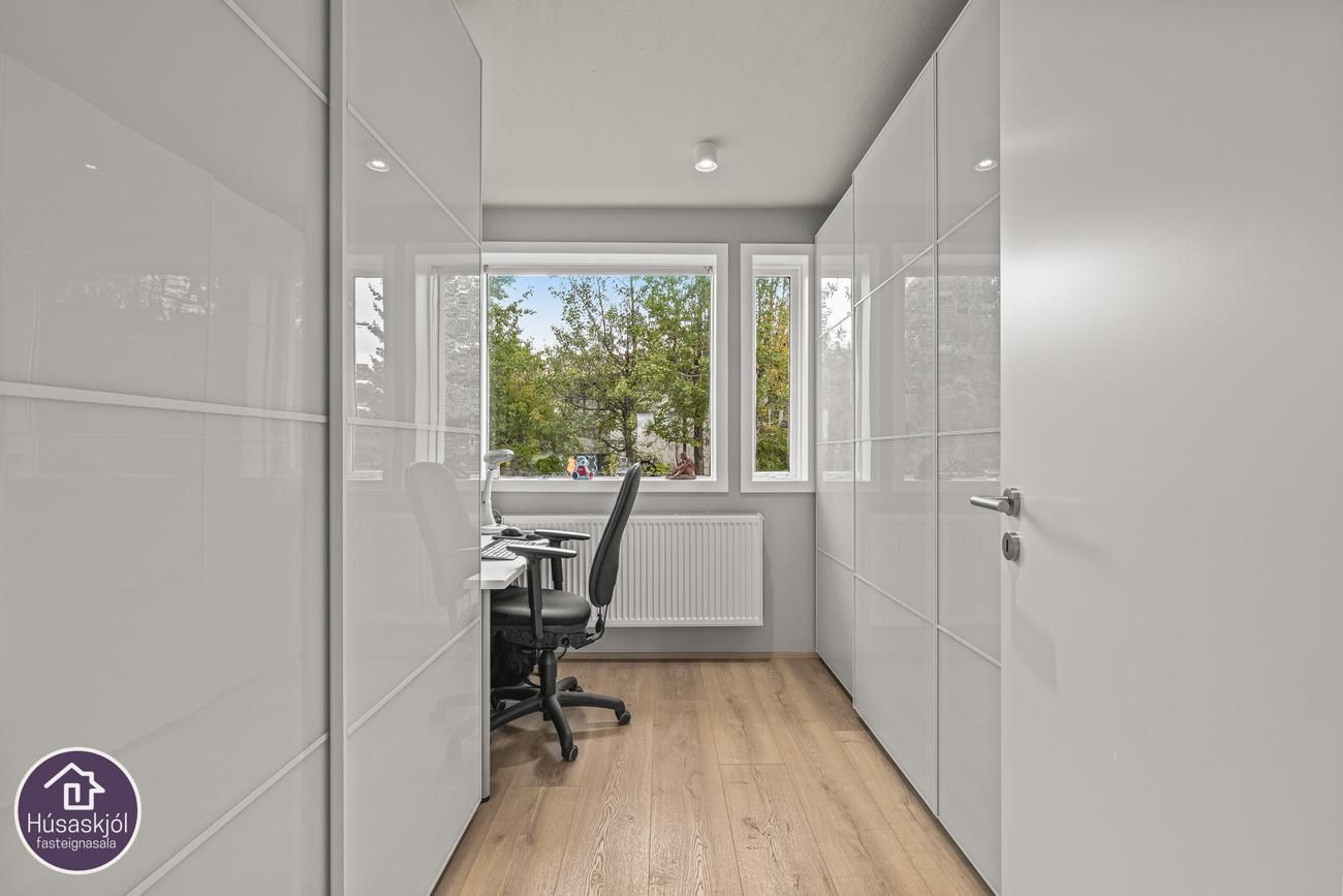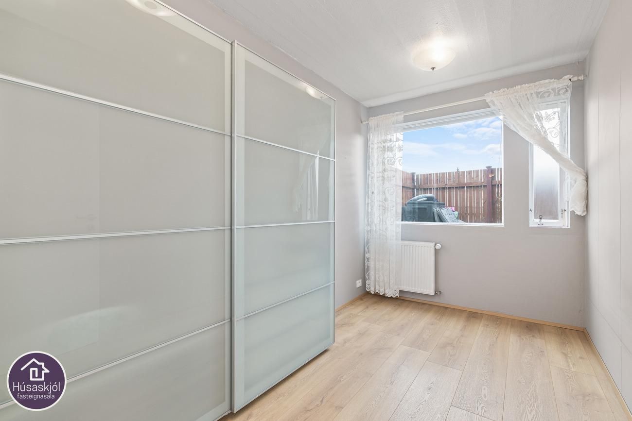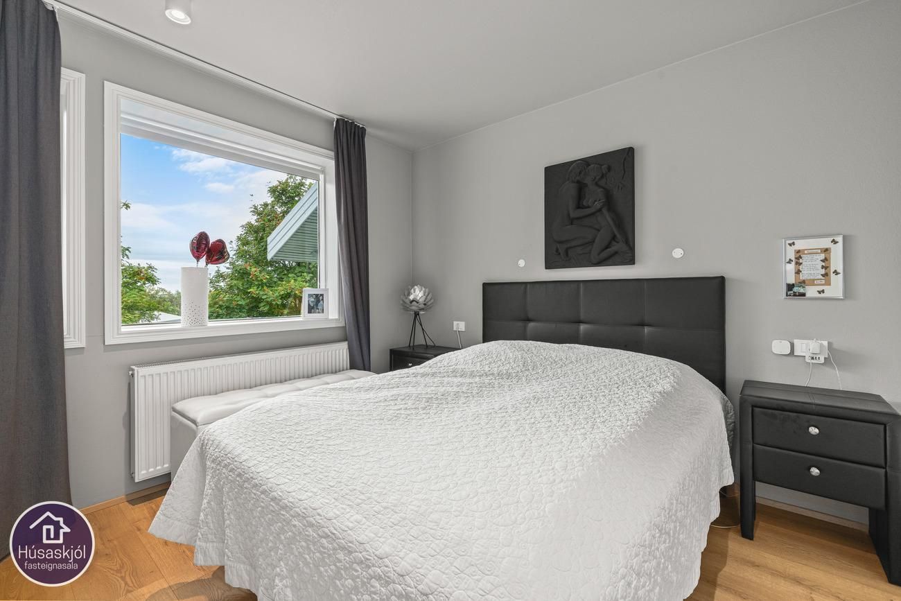 Á hæðinni eru 2 svefnherbergi, hjónaherbergi og barnaherbergi.