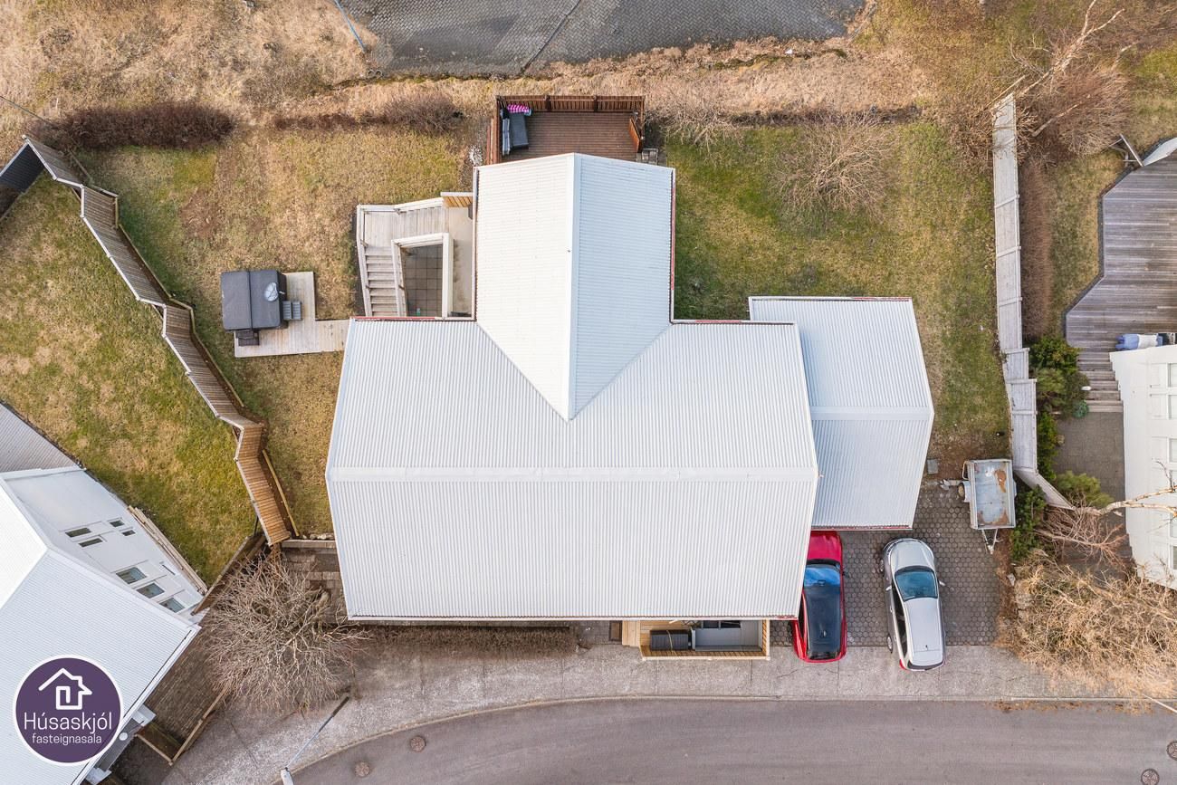 Bílskúr er rúmgóður og búið að endurnýja hann mikið. Úr skúrnum er gengið niður í óskráð rými sem er undir skúrnum og hefur verið nýtt sem geymsla.