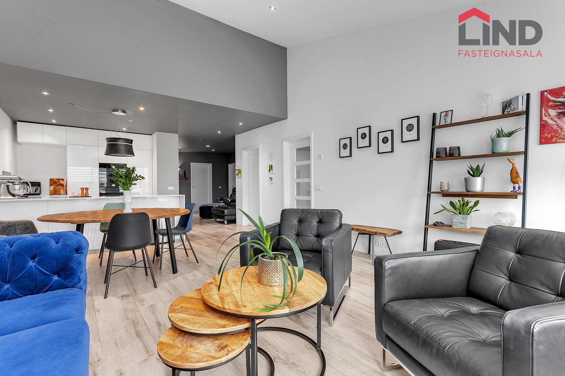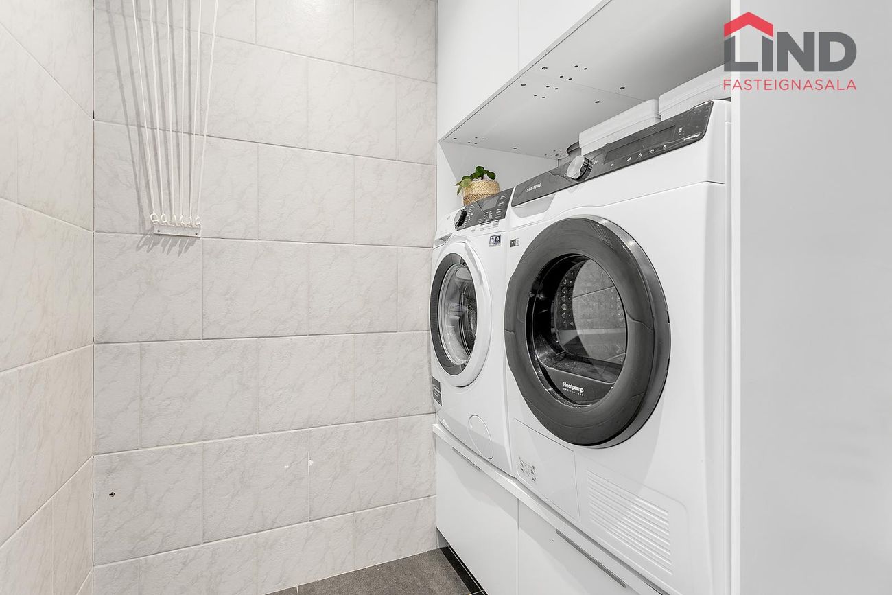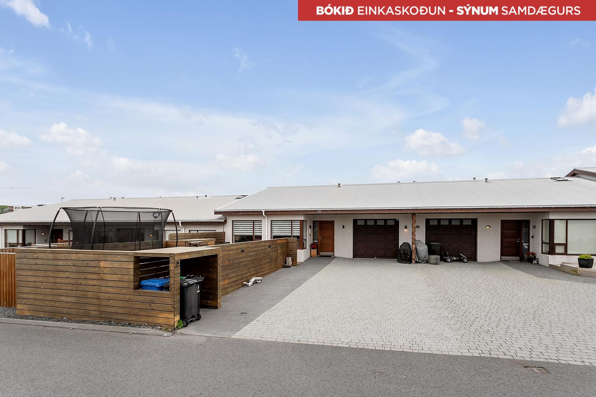 Lind fasteignasala og Elías Haraldsson löggiltur fasteignasali ( sími 777-5454), kynna : einstaklega fallegt 183,1 fermetra raðhús á einni hæð (byggt 2013). Um er að ræða mjög vel skipulagt og skemmtilegt hús með extra lofthæð. Óvenju góður flísalagður bílskúr (38 fermetrar ásamt 18,3 fermetra mill...