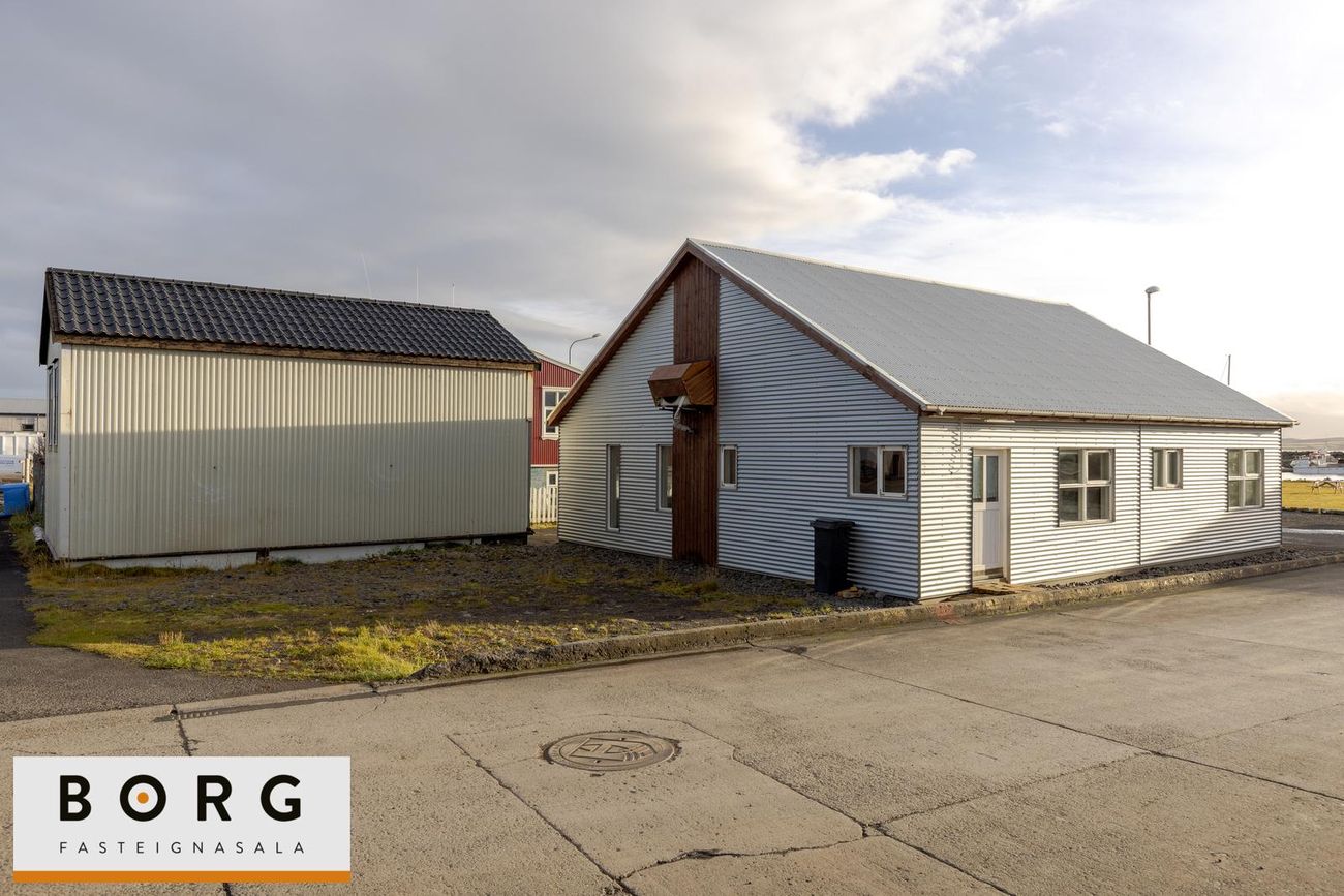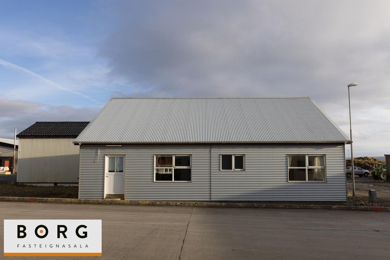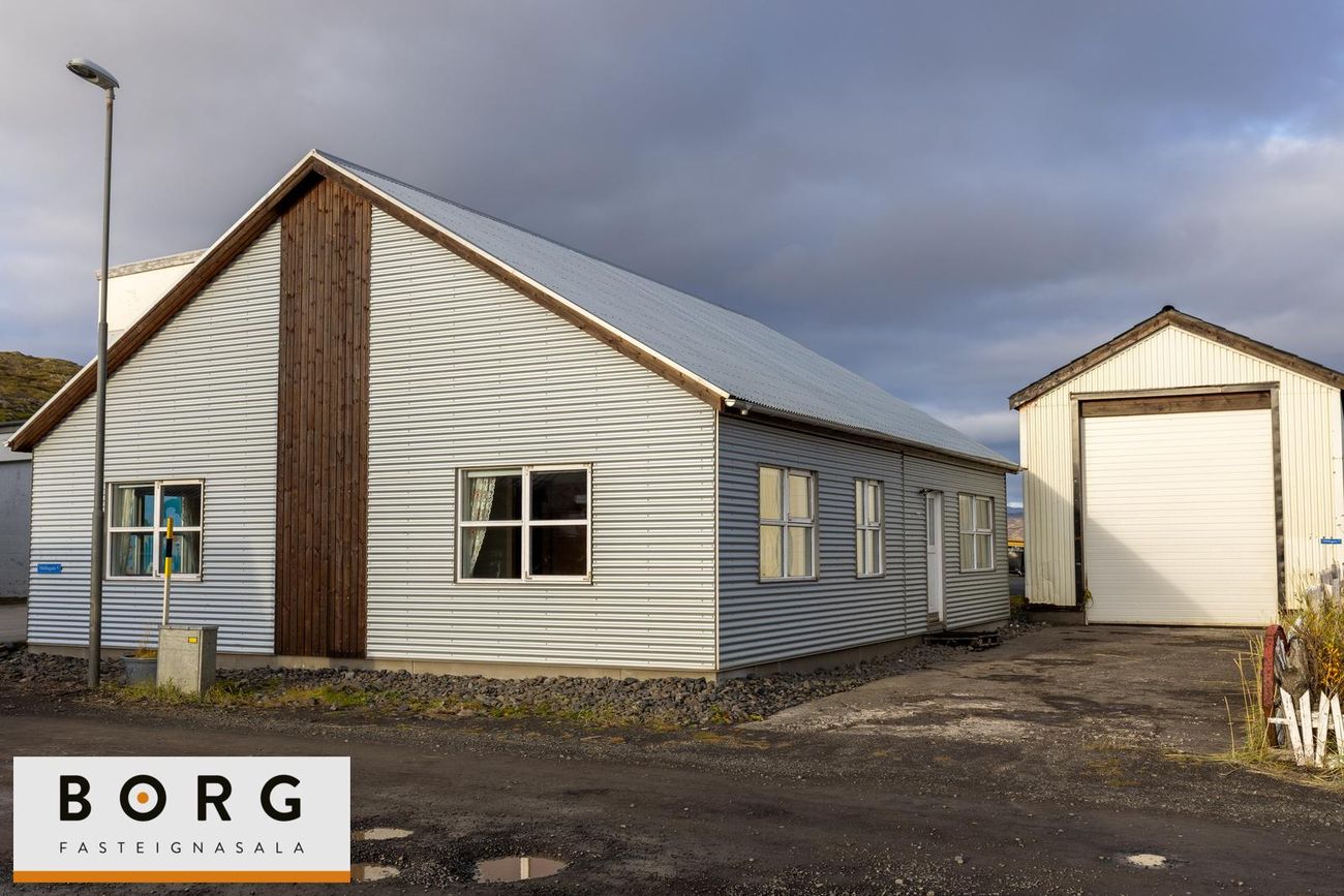 Alls um 164 fm. Nánari lýsing: Húsið er á einni hæð með góðu aðgengi. Tveir inngangar eru inn í húsið annarsvegar að norðvestan og hinn er að suðaustan frá steyptri innkeyrslunni. Báðir inngangar eru vel rúmgóðir.