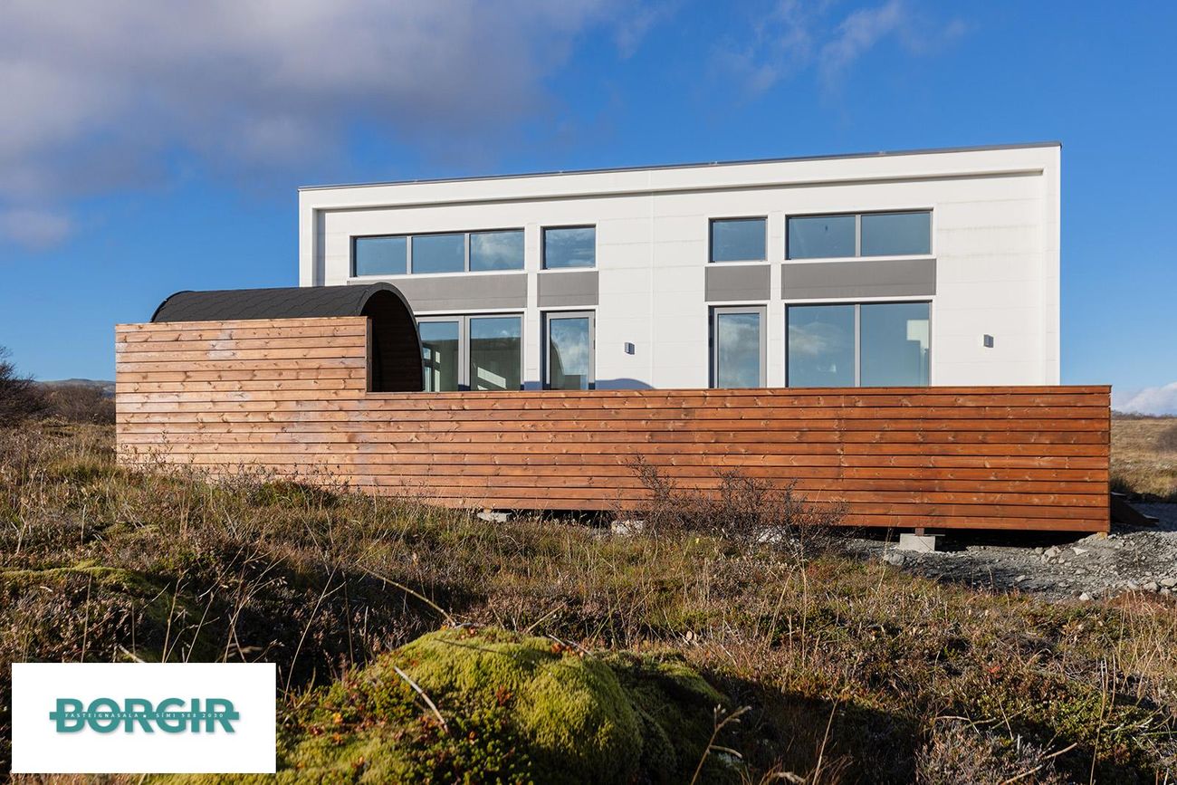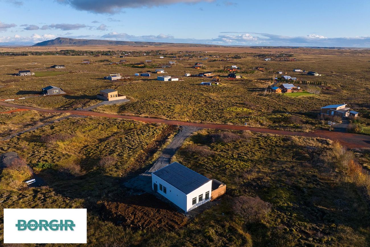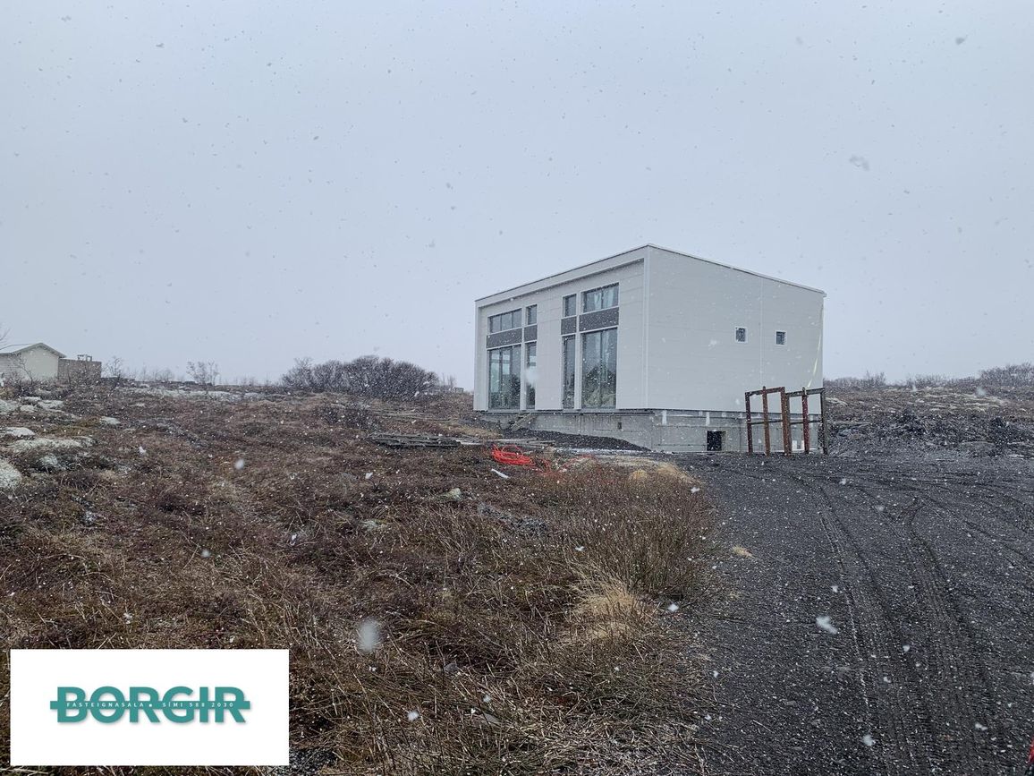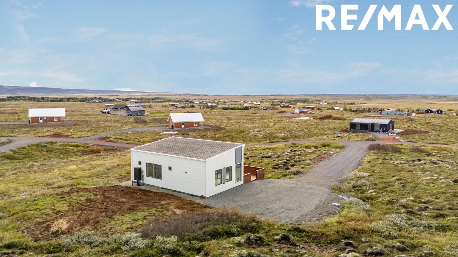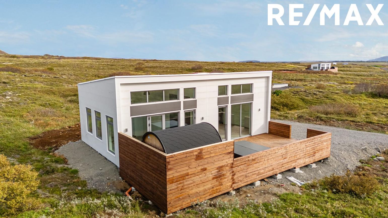Bjarný Björg Arnórsdóttir, löggiltur fasteignasali í síma 694-2526 eða á netfangið bjarny@remax.isUm er að ræða hús sem er stálgrindar einingahús með tveimur svefniherbergjum, tveimur baðherbergjum, eldhúsi/borðstofu/stofu, mikilli lofthæð og gólfsíðum gluggum og fallegu útsýni. Hiti í gólfi frá Danfoss. Hallogen ljós í loftinu. Pallur með skjólvegg. Öryggisgler er í öllu húsinu, Rafmagns heitur pottur og sauna. Húsið er sett saman af Gunnarsfell Verktakar.