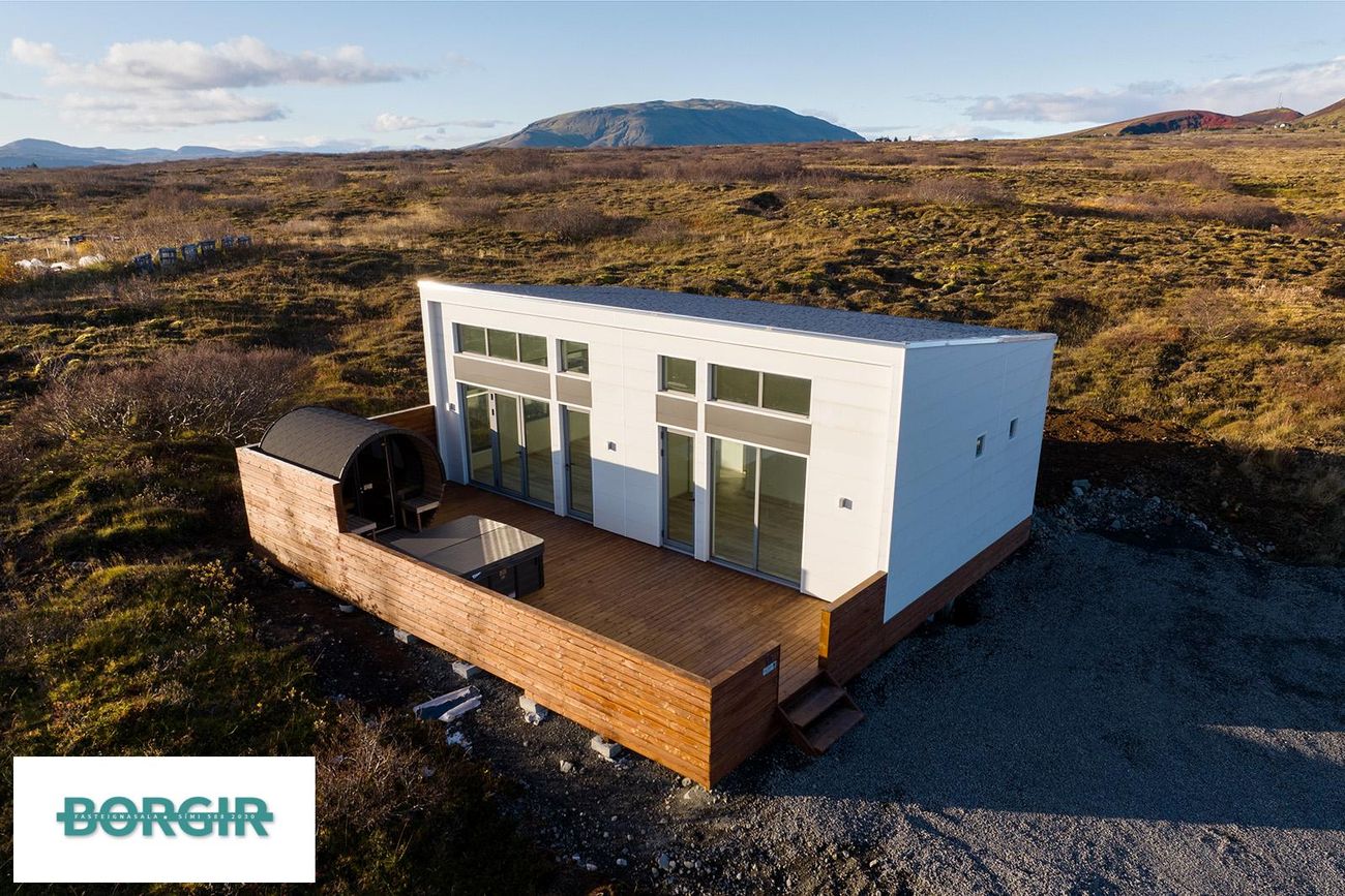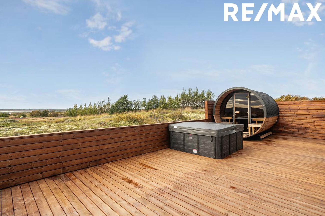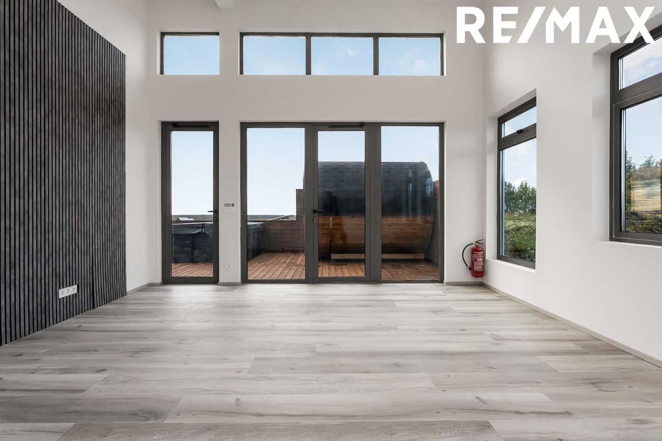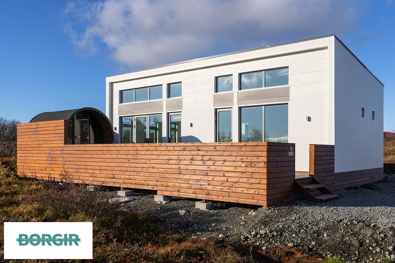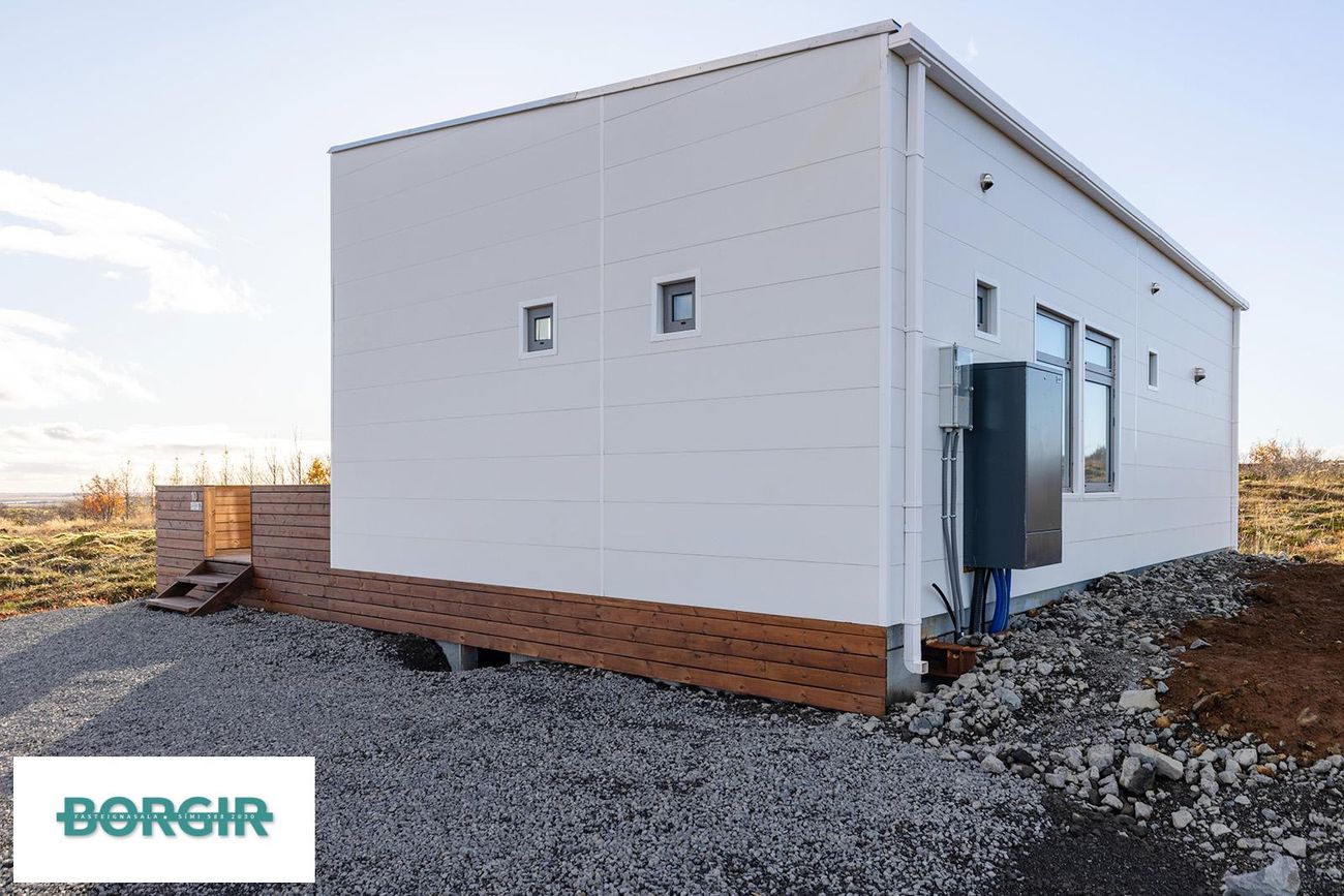 Bjarný Björg Arnórsdóttir, löggiltur fasteignasali í síma 694-2526 eða á netfangið bjarny@remax.isUm er að ræða hús sem er stálgrindar einingahús með tveimur svefniherbergjum, tveimur baðherbergjum, eldhúsi/borðstofu/stofu, mikilli lofthæð og gólfsíðum gluggum og fallegu útsýni. Hiti í gólfi frá Danfoss. Hallogen ljós í loftinu. Pallur með skjólvegg. Öryggisgler er í öllu húsinu, Rafmagns heitur pottur og sauna. Húsið er sett saman af Gunnarsfell Verktakar.