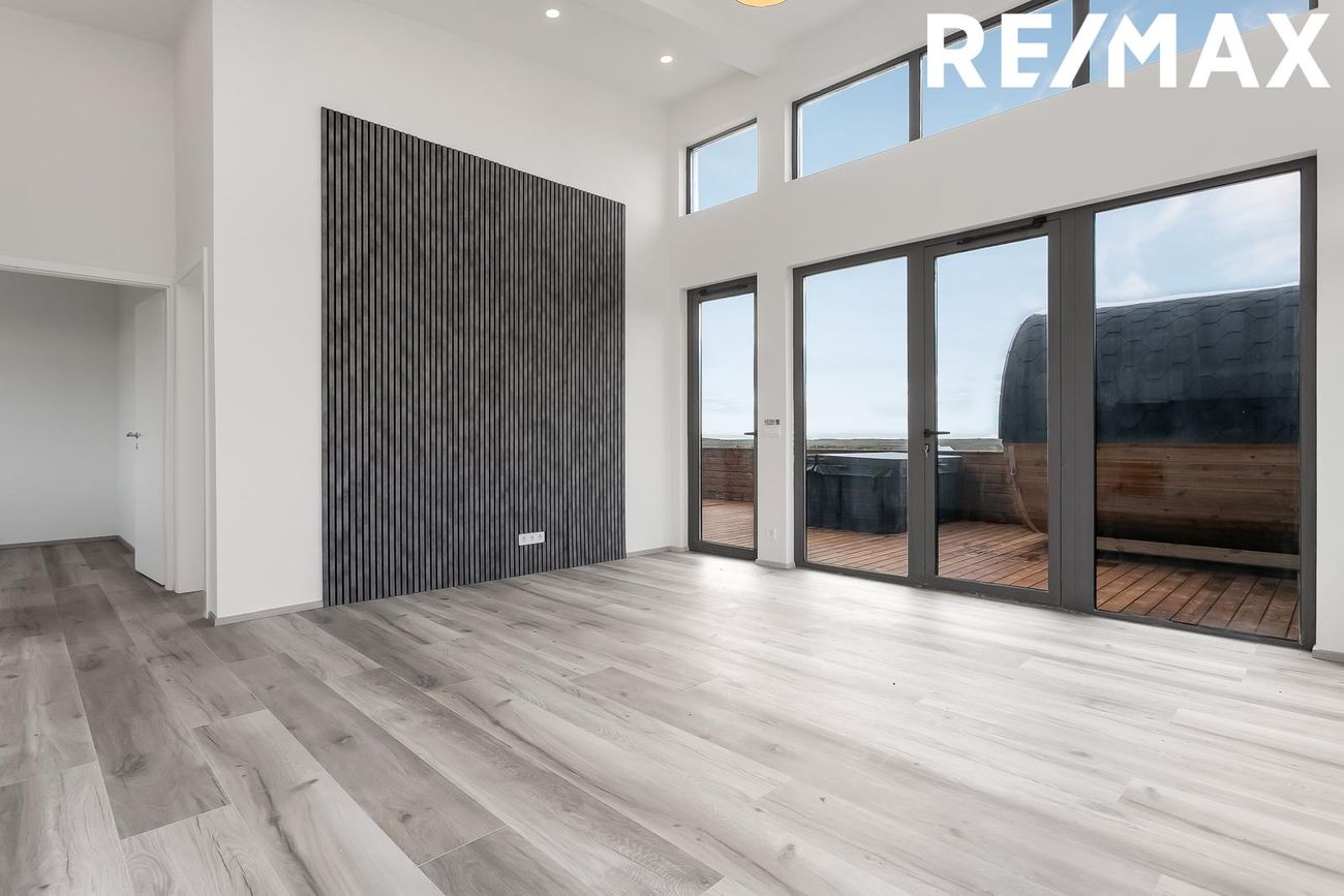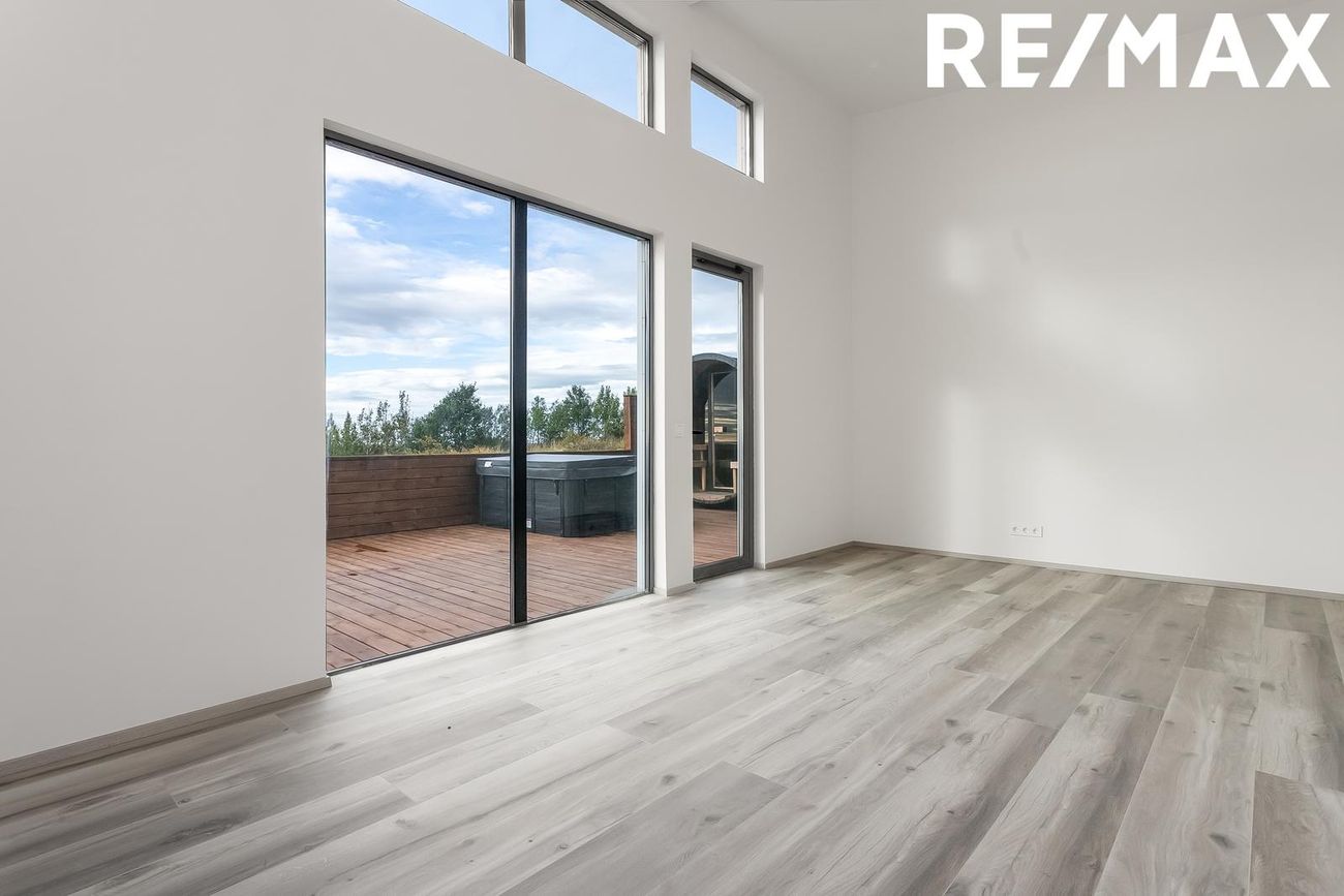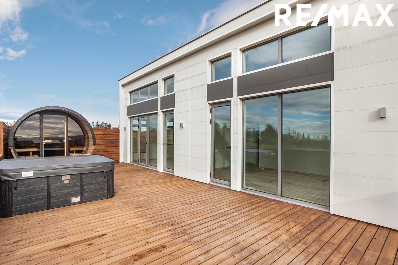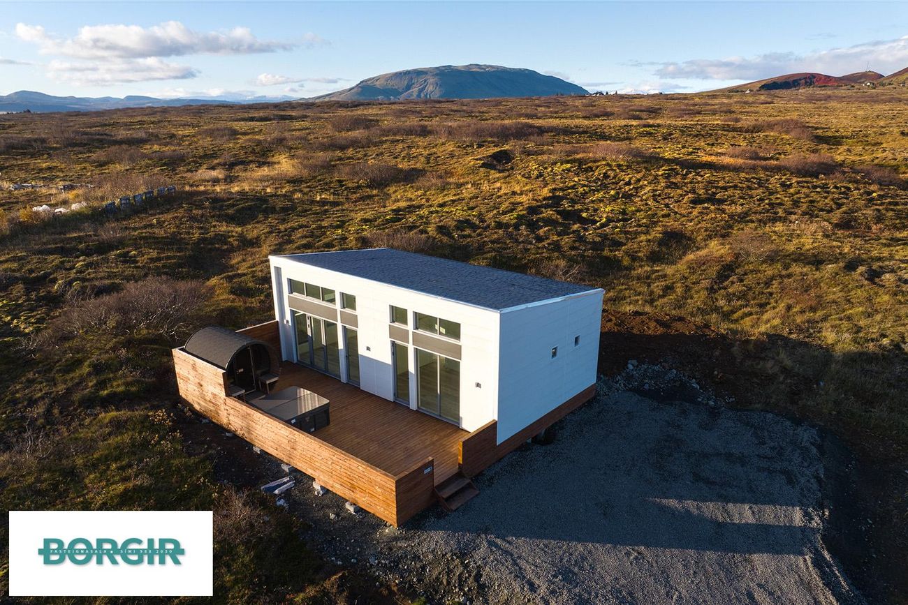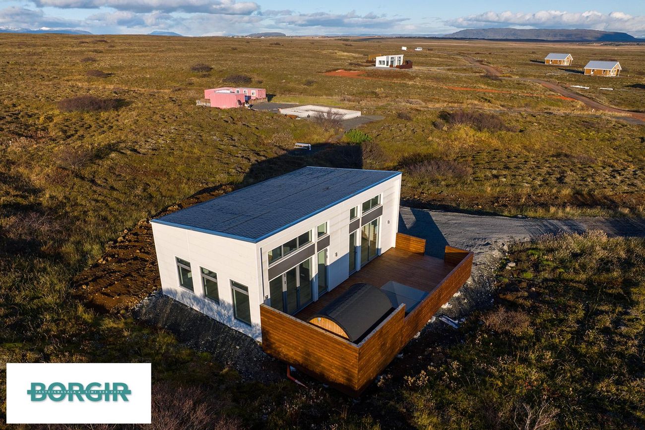 Bjarný Björg Arnórsdóttir, löggiltur fasteignasali í síma 694-2526 eða á netfangið bjarny@remax.isUm er að ræða hús sem er stálgrindar einingahús með tveimur svefniherbergjum, tveimur baðherbergjum, eldhúsi/borðstofu/stofu, mikilli lofthæð og gólfsíðum gluggum og fallegu útsýni. Hiti í gólfi frá Danfoss. Hallogen ljós í loftinu. Pallur með skjólvegg. Öryggisgler er í öllu húsinu, Rafmagns heitur pottur og sauna. Húsið er sett saman af Gunnarsfell Verktakar.