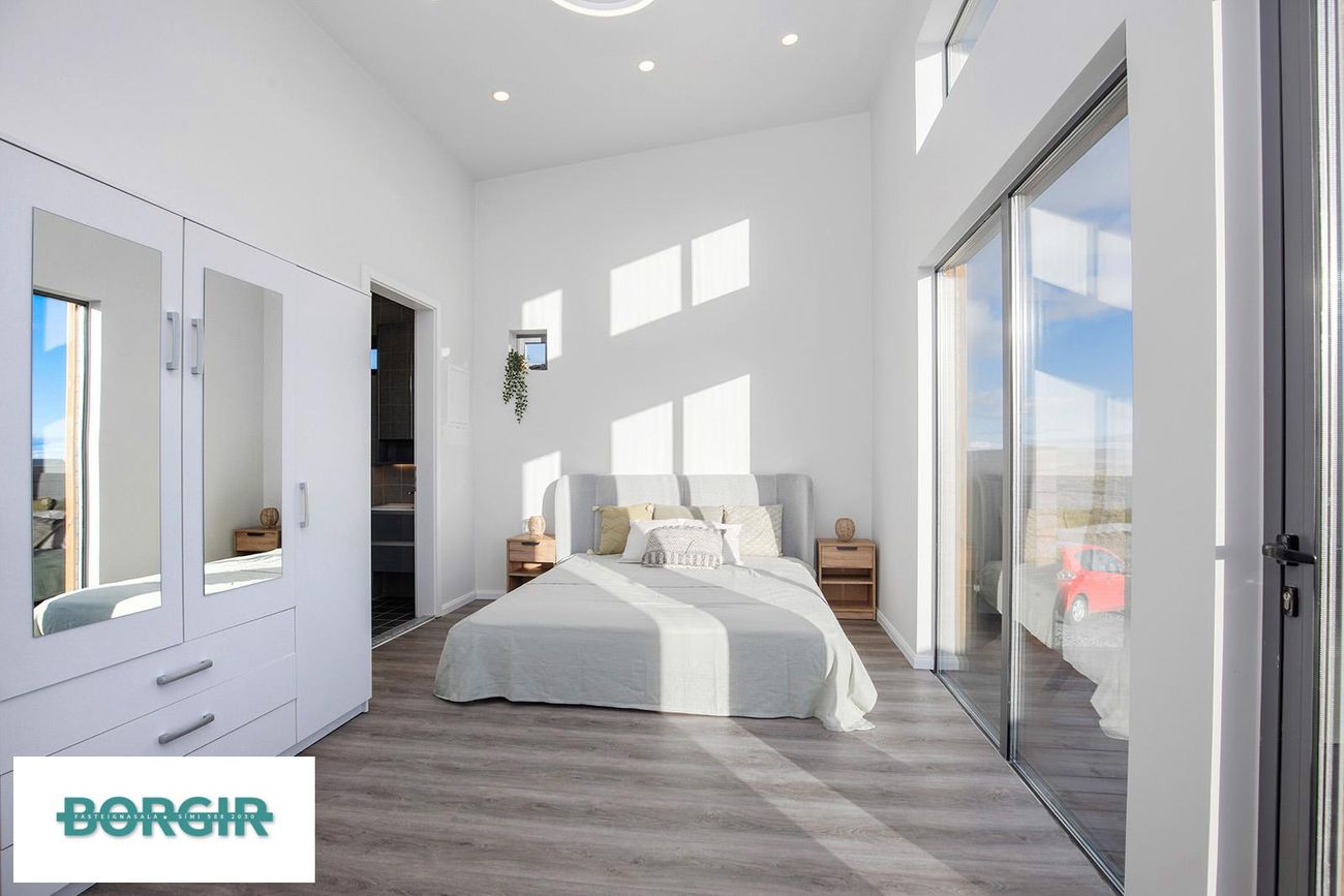 Um er að ræða samsett einingahús á steyptum sökkli sem er framleitt af Citic Construction og er stálgrindar einingahús með tveimur svefnherbergjum, tveimur baðherbergjum, eldhúsi/borðstofu/stofu, mikilli lofthæð og gólfsíðum gluggum.