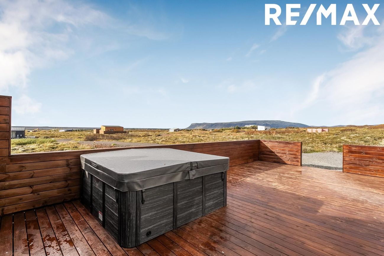 Bjarný Björg Arnórsdóttir, löggiltur fasteignasali í síma 694-2526 eða á netfangið bjarny@remax.isUm er að ræða hús sem er framleidd af Citic Construction sem er einn af stæðstu framleiðendum á húsum í heimi og er stálgrindar einingahús með tveimur svefniherbergjum, tveimur baðherbergjum, eldhúsi/borðstofu/stofu, mikilli lofthæð og gólfsíðum gluggum og fallegu útsýni. Hiti í gólfi frá Danfoss. Hallogen ljós í loftinu. Pallur með skjólvegg. Öryggisgler er í öllu húsinu, Rafmagns heitur pottur og sauna. Húsið er sett saman af Gunnarsfell Verktakar.